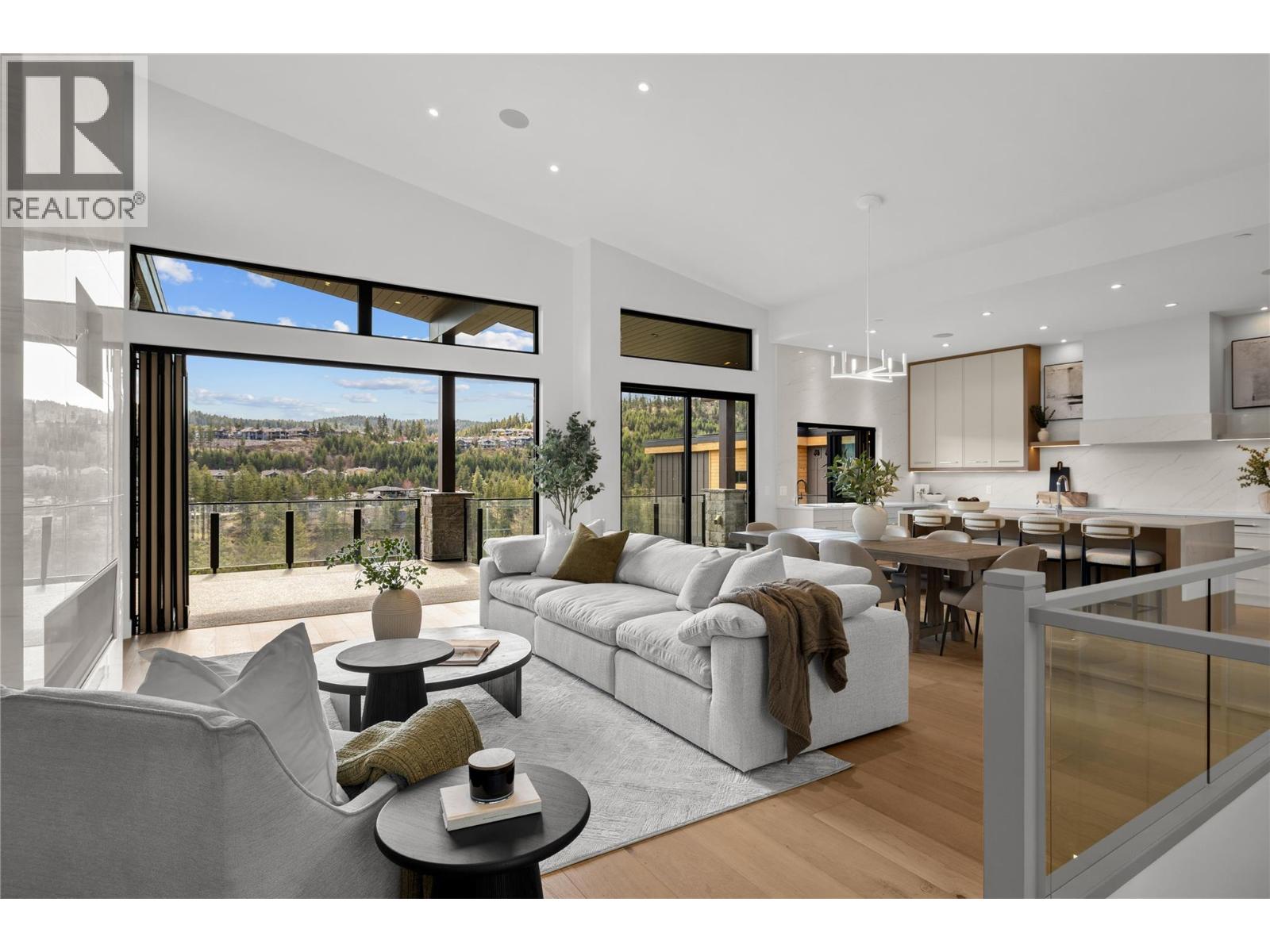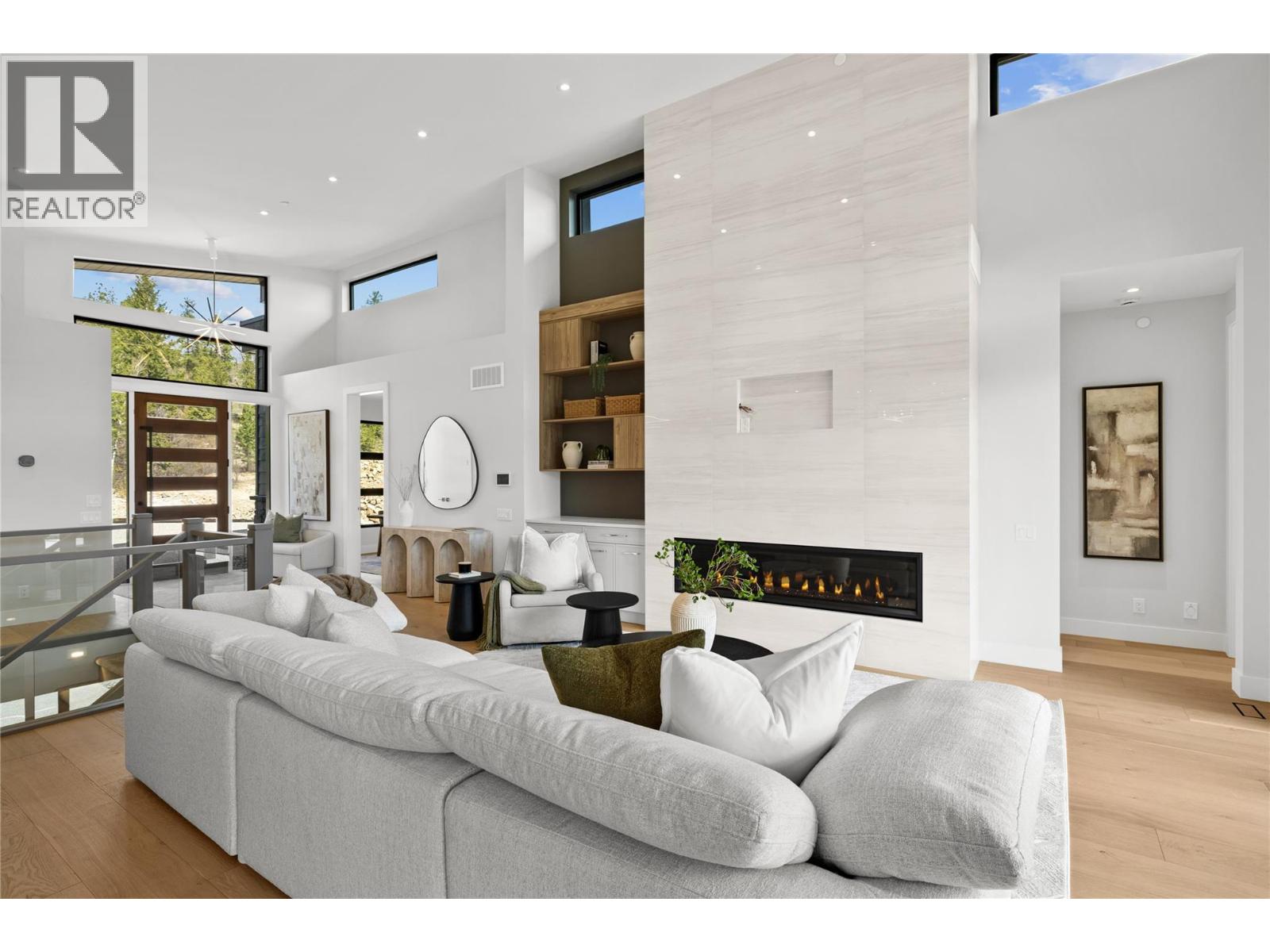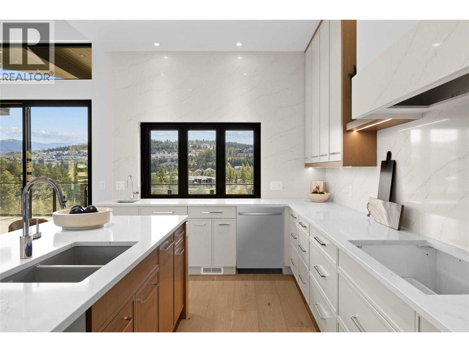 Nestled in the heart of the Okanagan, Predator Ridge Properties offers an unparalleled blend of luxury homes, breathtaking views, and resort-style amenities—perfect for those seeking an elevated lifestyle in a vibrant, master-planned community. In the prestigious Wildsong enclave this just-completed Serenity Peak build, by award-winning Carrington Homes, is a masterpiece. The 5-bed, 4-bath walkout rancher spans over 3,700 sq.ft., featuring soaring ceilings, accordion and pass-through windows, and high-end finishes. The open-concept layout highlights a designer kitchen with a massive island, floor-to-ceiling cabinets, and a walk-through pantry. The luxurious primary suite offers sweeping views, an ensuite with heated floors, and a spacious walk-in closet roughed-in for laundry. Two additional laundry areas provide added flexibility. Enjoy outdoor living with a covered deck, walkout patio with built-in speakers, low-maintenance yard, and in-ground saltwater pool with an automatic cover. A 3-car garage completes this exceptional property, located minutes from Sparkling Hill, Predator Ridge Golf Course, Silver Star, downtown Vernon, local beaches, and parks. Community residents enjoy access to championship golf, a state-of-the-art fitness centre, pool, racquet courts, hiking and biking trails, dining, a local market, community events, and a wellness-focused lifestyle. Live the luxury Okanagan lifestyle with Predator Ridge Properties. GST applicable. (id:58842)