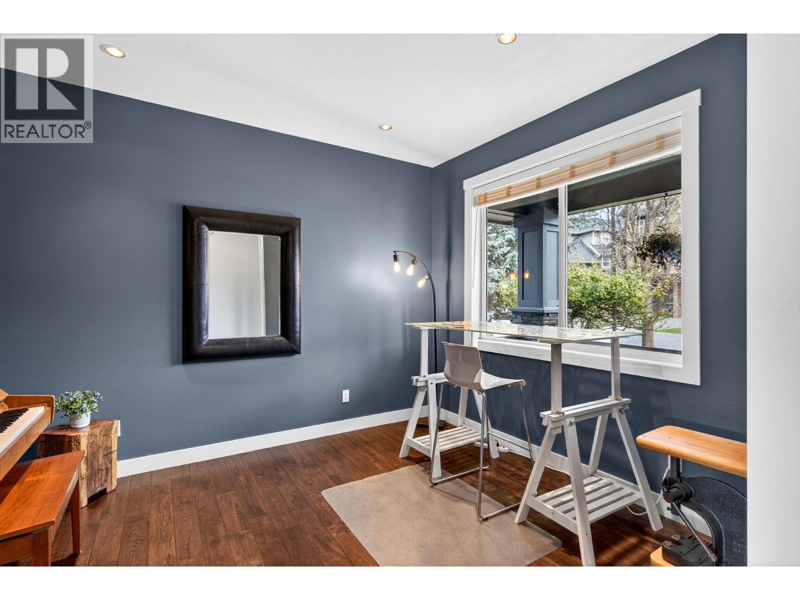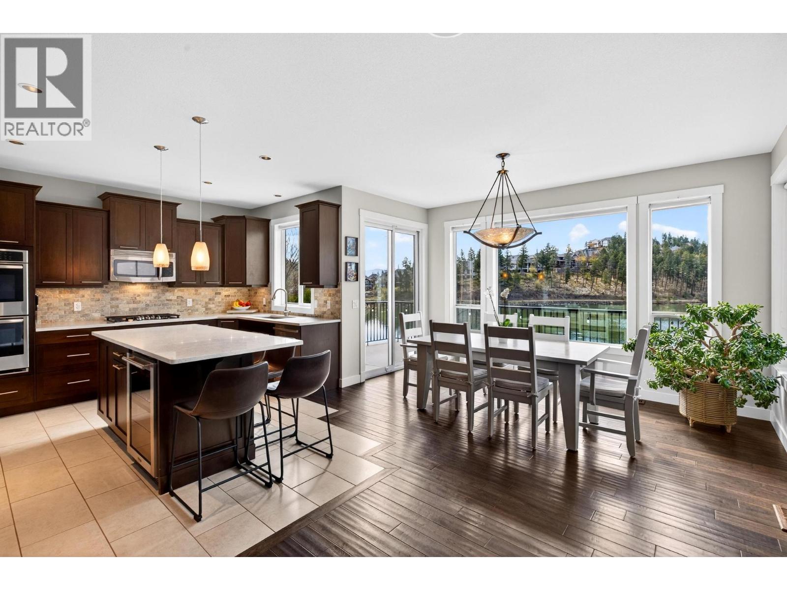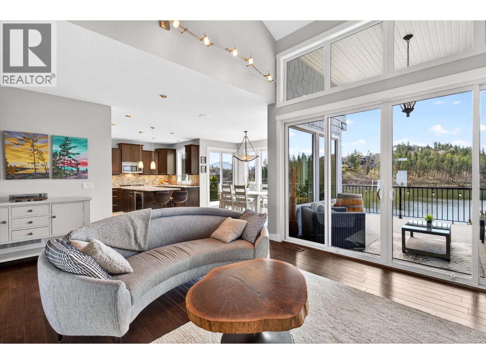 Set on a quiet cul-de-sac in Wilden, this rare two-storey lakefront home is one of a limited collection of properties backing directly onto Walroy Lake (Hidden Lake), offering a peaceful, nature-oriented setting just minutes from city amenities. Positioned on the shoreline, the south-facing backyard captures stunning lake and mountain views, creating a private backdrop seldom found in Kelowna. The 3,522 sq ft home features a bright, open-concept main floor with vaulted ceilings and large windows oriented to the water. The kitchen includes new quartz countertops and tile backsplash, gas cooktop and built-in double ovens, and a central island with seating, opening to dining and living areas. A den, laundry, and powder room complete this level. Upstairs, the primary bedroom offers a lake-view balcony, vaulted ceiling, and a spacious 5-piece ensuite, plus two additional bedrooms and a full bathroom. The walk-out basement includes a large recreation room, bedroom, a second den, and full bathroom, with potential for additional bedroom or suite. Extremely well maintained and move-in ready, with new interior/exterior paint, fireplace surround, and roof. Geothermal heating and cooling. Oversized double attached garage equipped with EV charger. The backyard features a saltwater pool, hot tub, patio, and direct shoreline access with a fire pit at the water’s edge. The non-motorized lake supports a quieter outdoor setting and offers a rare waterfront lifestyle. (id:58842)
