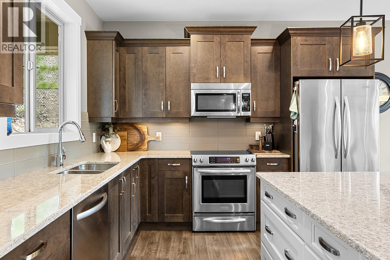 Welcome to 190 Wilden Ridge Drive — a rare Skylands gem offering extra on-site parking and surrounded by the natural landscape rather than neighbouring homes, providing a level of privacy rarely found in Wilden. Here, nature and luxury meet in perfect harmony. The main living level boasts bright open-concept spaces with three bedrooms and two bathrooms, a stylish kitchen with quartz countertops and modern two-toned cabinetry, and a living room and walkout patio pre-wired for a sound system — perfect for Okanagan entertaining. Downstairs, you’ll find a spacious legal 1-bedroom, 1-bathroom suite with a separate entrance, ideal for multigenerational living or rental income. Highlights include a double garage with built-in shelving, central vacuum system, front and back irrigation, and raised garden beds ready for your green thumb. This stunning property sits on a private, low-maintenance .598-acre end lot, offering incredible outdoor potential. Bring your ideas — add a tranquil water feature, side garden, or kids’ play space! Enjoy being surrounded by scenic biking and walking trails, with endless hiking trails within a few hundred meters of your doorstep. Skylands in Wilden offers a peaceful lifestyle, only minutes from Glenmore’s shops, restaurants, schools, and a quick drive to downtown Kelowna, UBCO, and the airport. Experience the perfect balance of outdoor living and urban convenience — come discover the elevated lifestyle that Skylands in Wilden has to offer! (id:58842)