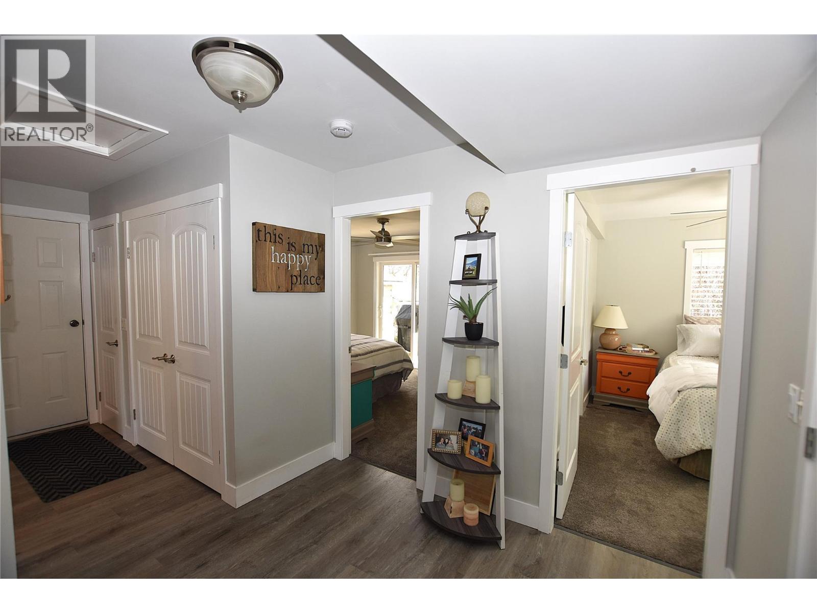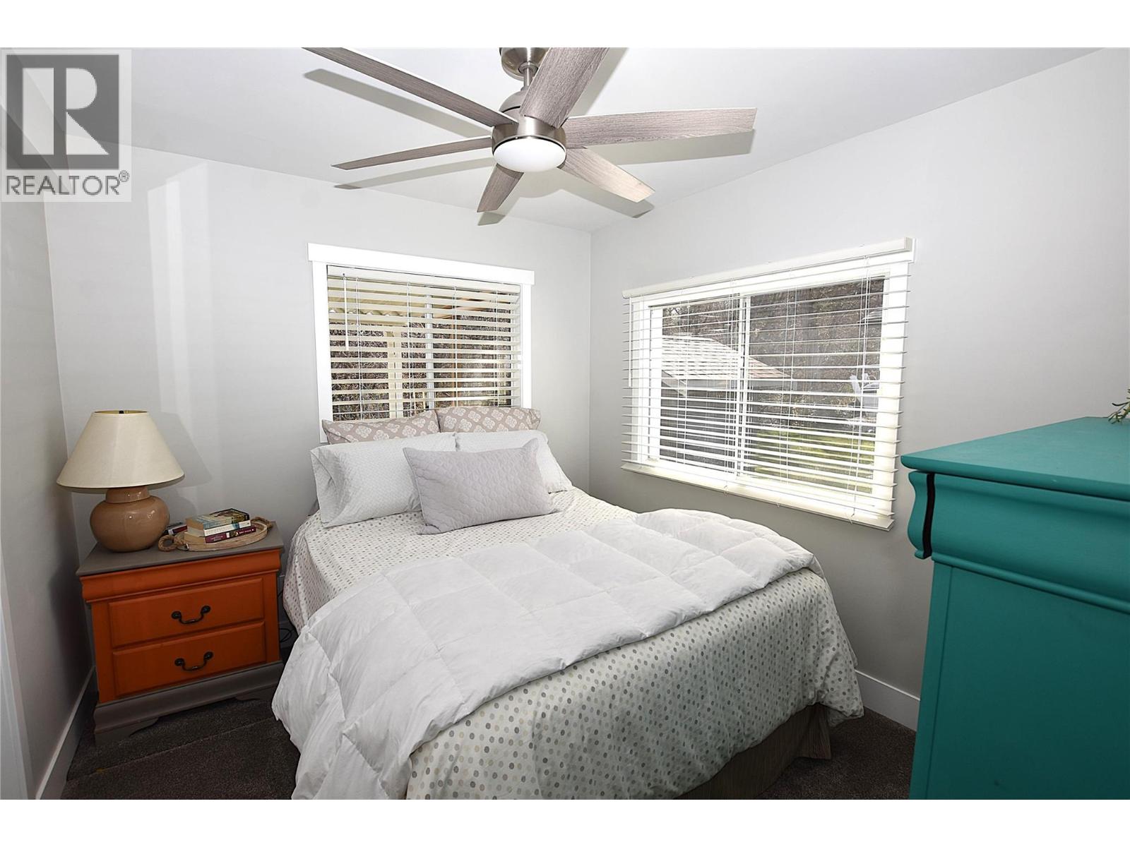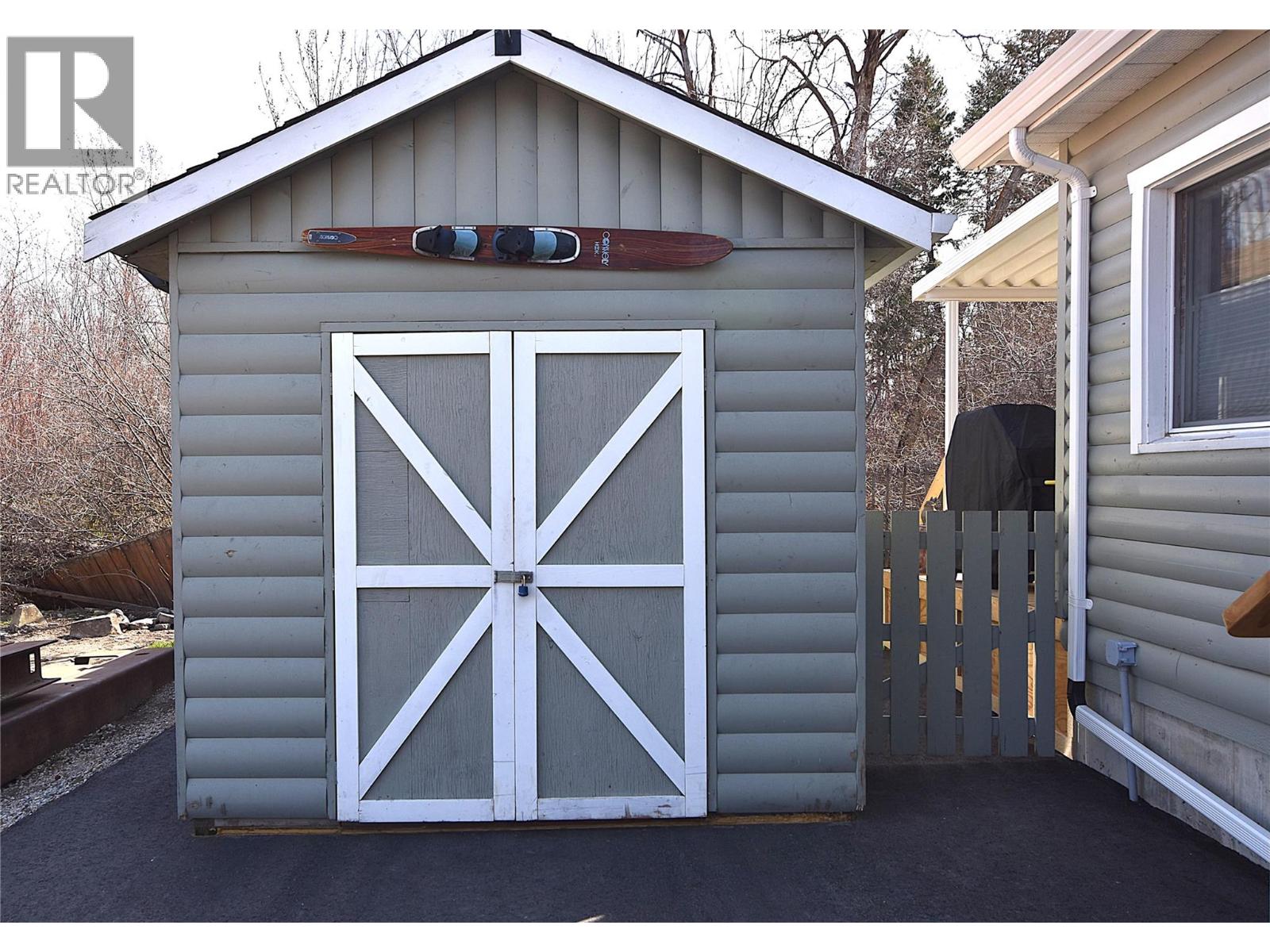 Are you dreaming of affordable living near Okanagan Lake? This beautifully renovated 2-bedroom, 1-bathroom home in Parker Cove is just a short two-minute walk to the beach and boat launch—perfect for enjoying the Okanagan lifestyle. Immaculate and move-in ready, this home has been fully updated from top to bottom. The bright, open-concept living and dining area features vaulted ceilings, new vinyl plank flooring, and large windows that flood the space with natural light. A cozy pellet stove adds warmth and charm for cooler days. Located at the back of the home, both bedrooms offer privacy, with the primary bedroom featuring brand new sliding doors that open onto a spacious covered deck—ideal for relaxing or entertaining. The functional kitchen includes stainless steel appliances, while additional features include a full 4-piece bathroom, in-home laundry, and a convenient storage room. Enjoy a private backyard with no homes behind, plus a covered front deck overlooking the nearby dog park—perfect for soaking up the peaceful surroundings. The driveway offers ample space, including room for your boat. Prepaid lease until 2043 and a low annual utility fee of $980 make this an exceptional value in a sought-after lakeside community. (id:58842)