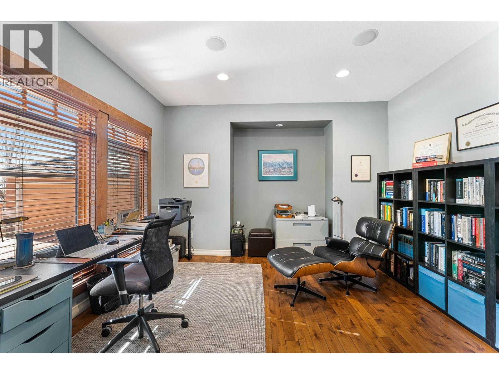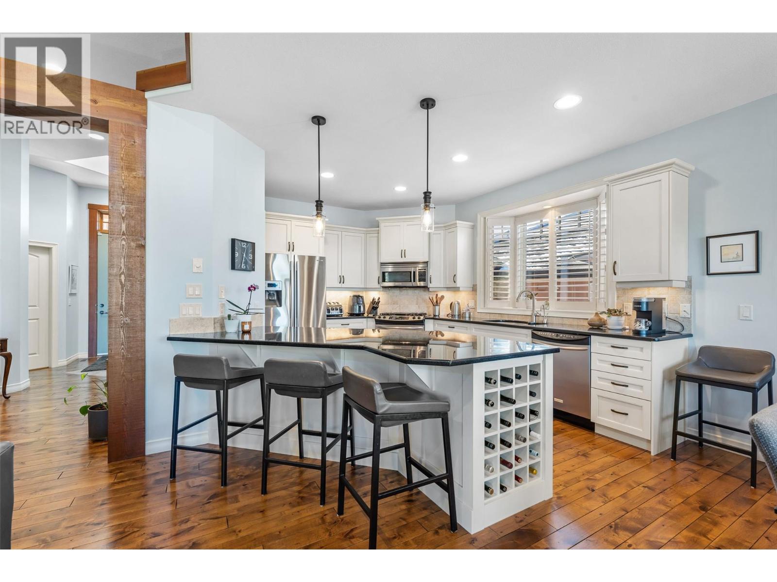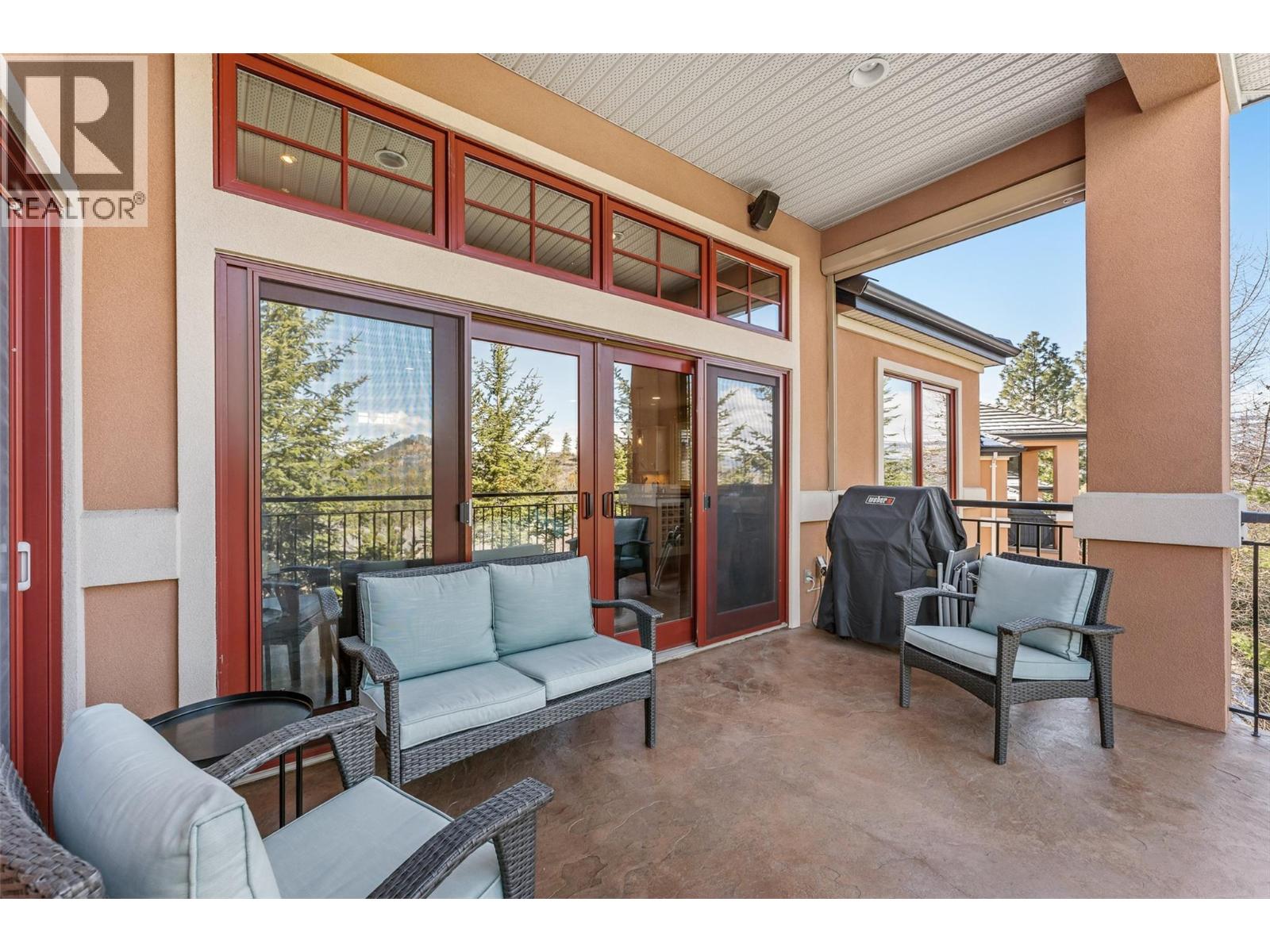 Nestled in the prestigious Quail Ridge golf community, this executive townhome offers stunning views, fine finishes, and a turn-key lifestyle just minutes from UBCO, Aberdeen Hall, and Kelowna International Airport. Designed for both comfort and entertaining, the great room features high ceilings, a beautiful stone fireplace, and custom built-ins, while the chef’s kitchen boasts granite countertops, premium appliances, and soft-close cabinetry. Step onto the patio to take in the serene surroundings, complete with BBQ hookups. The primary suite is a private retreat with balcony access, a spa-inspired ensuite, and a walk-in closet. A spacious main floor den/office provides the perfect work-from-home space. The walkout lower level is designed for entertaining, featuring a full wet bar, media wall, and cozy fireplace, leading to a covered patio for year-round enjoyment. This level offers an additional 2 bedrooms and a 3 piece bath. Additional highlights include a double garage, and central vac. This is your opportunity to live in one of Kelowna’s most sought-after communities, surrounded by nature, golf courses, and countless amenities. (id:58842)