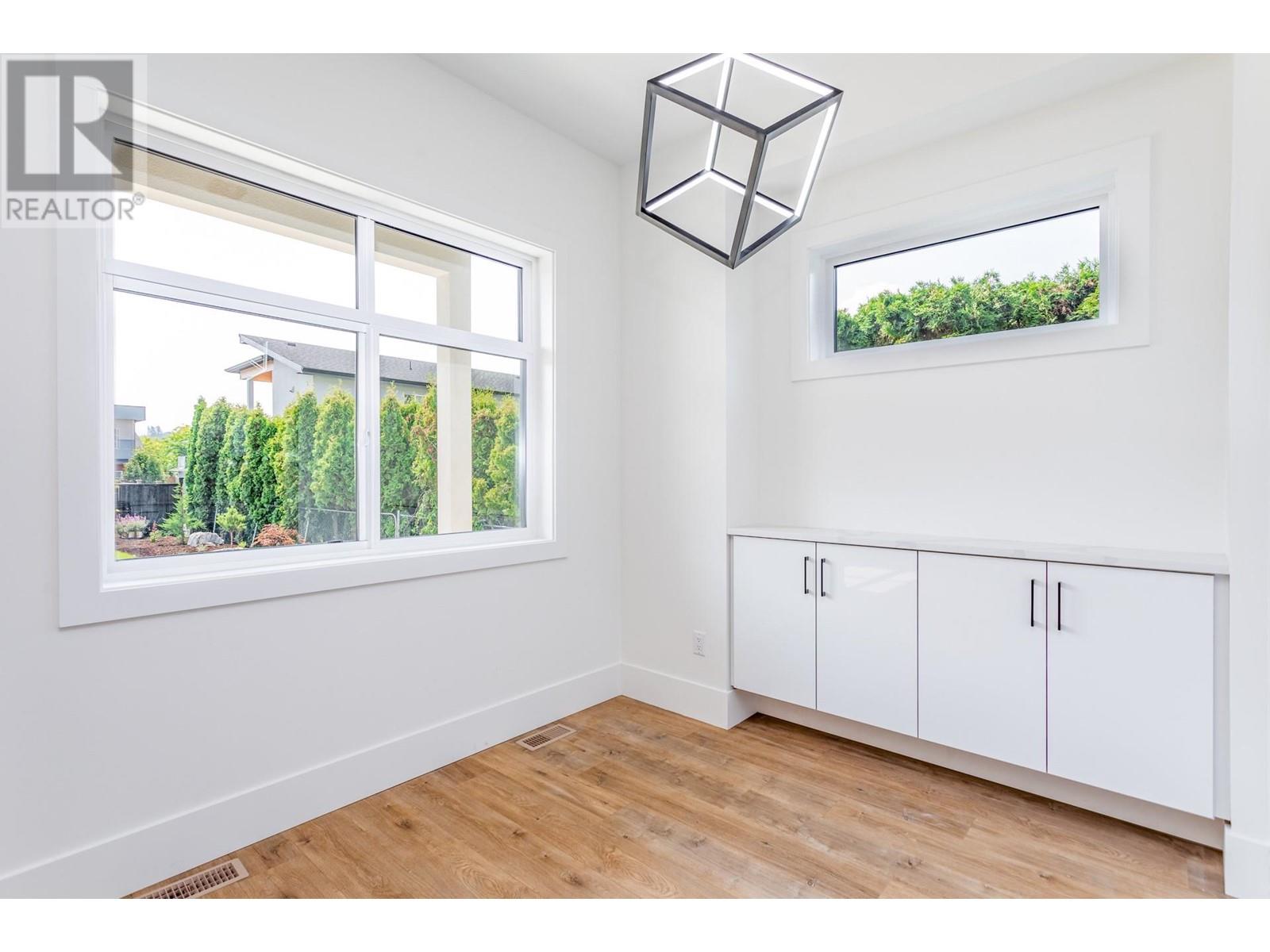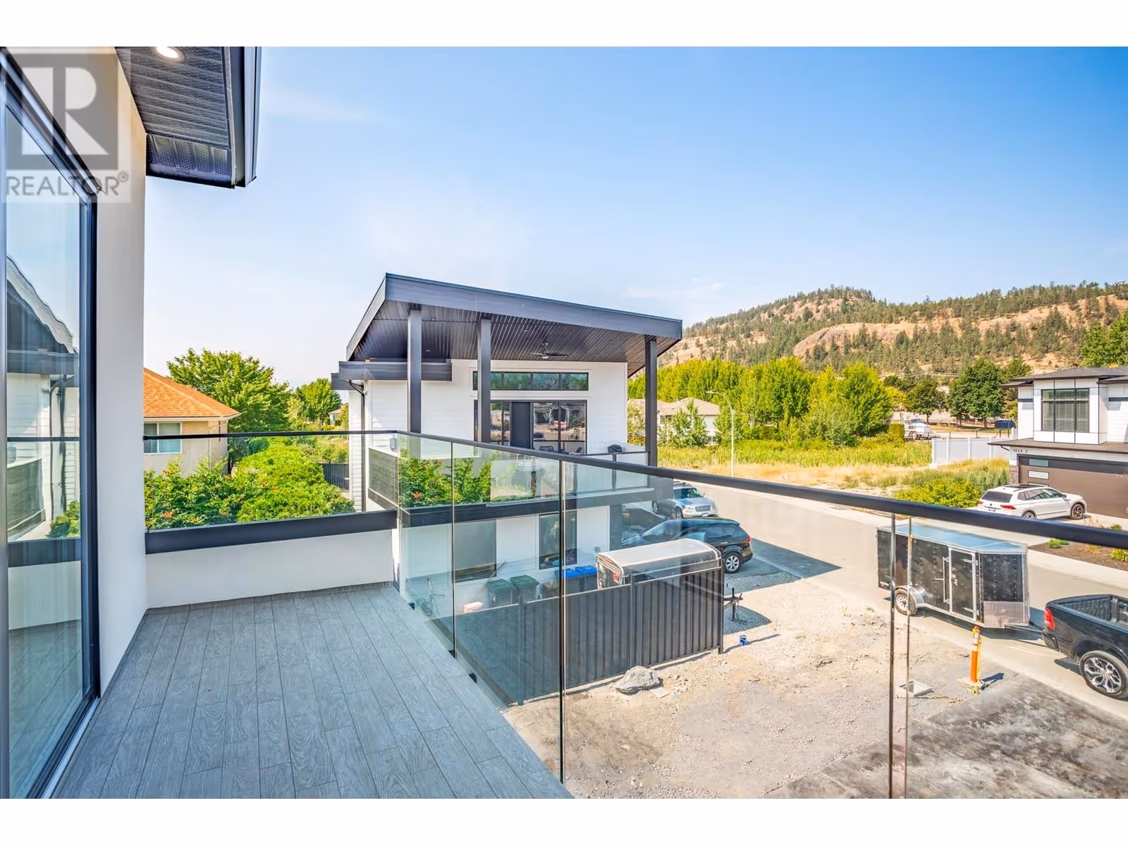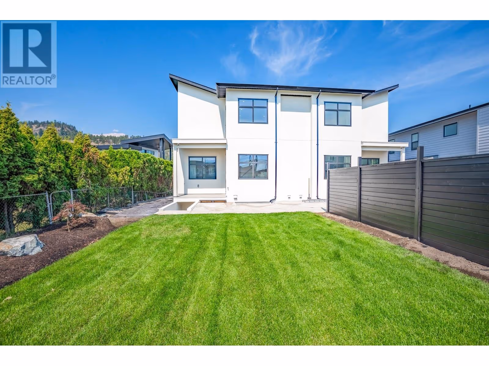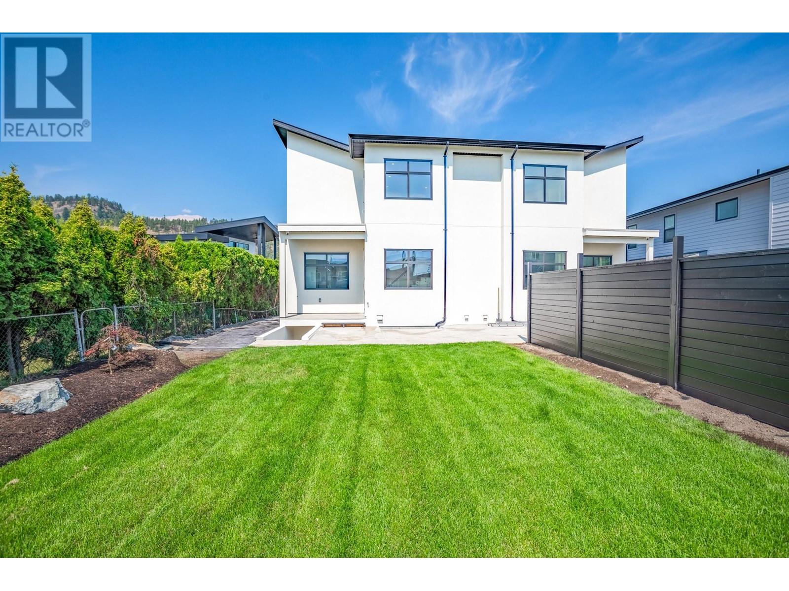 Welcome to this stunning modern new built half duplex located in the sought-after neighborhood of North Glenmore. This quality-build move in ready home features five bedrooms, five bathrooms, and includes 1 bedroom legal suite, offering rental income. The main home boasts of 4 bedrooms on the top floor, 2 of the bedrooms with ensuites and walk in closets. Enjoy the modern and sleek design with quartz counters, laminate flooring and a spacious kitchen with large island, perfect for entertaining! The attention to detail shows thru feature walls and quality finishes throughout the home. Beautiful professionally manicured fenced backyard and irrigated. Attached double garage with enough parking for at least four more vehicles in the driveway. This centrally located property is close to schools, shopping, the airport, UBC and an array of amenities. Additional features include built in vacuum system and comes with 2-5-10 year warranty. NO GST Payable. (id:58842)