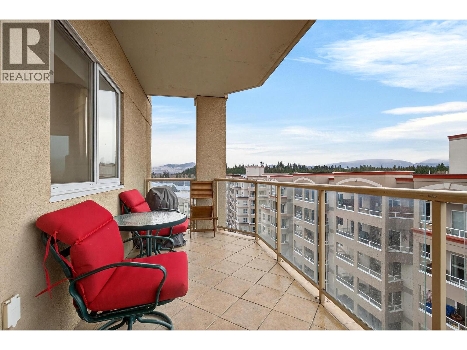 Elevated above it all, this exceptional corner residence at Park Place offers a level of space, light, and views that is rarely found in Kelowna condo living. Perched on the 10th floor south east corner of Park Place, this 1,335 sq ft 2 bed 2 bath plus den suite captures sweeping lake and valley views through walls of windows that flood the home with natural light, while staying cool and comfortable through Kelowna’s long summers with central heating and cooling throughout. 2 side by side underground parking stalls and 3 oversized storage lockers, including one conveniently located on the same floor. Inside, the open concept layout is finished with maple hardwood, a granite island, stainless steel appliances, upgraded lighting, and a gas fireplace that anchors the living space. The spacious primary bedroom features a walk in closet and a well appointed ensuite with a double vanity and soaker tub, offering a comfortable retreat at the end of the day. Park Place elevates the lifestyle with resort style amenities including a pool, hot tub, fitness centre, theatre room, library, pool table, woodworking shop, tennis court, car wash, and guest suite, all within a solid concrete and steel building. The location completes the package. Steps to Costco, a short walk to Mission Creek Greenway, minutes to Orchard Park Shopping Centre, and a quick drive to downtown Kelowna’s beaches, restaurants, and cultural district. (id:58842)