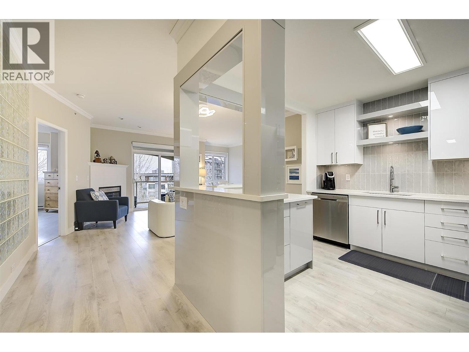 Welcome to this beautifully updated TOP FLOOR 2-bedroom, 2-bathroom condo in the highly sought-after Meadow Brook Estates, where pride of ownership is immediately evident. This home has been meticulously maintained and thoughtfully renovated, offering a truly turn-key living experience. The bright, open-concept layout is filled with natural light and overlooks Mill Creek, providing peaceful views and a serene setting. The spacious Primary bedroom features a lovely, updated ensuite, while the second bedroom includes a cabinet (Murphy) bed, making it ideal as a guest room or a perfect den or office space. The renovated kitchen showcases stainless steel appliances, quartz countertops, pull-out drawers, and ample storage. Updated flooring flows throughout, complemented by beautifully updated bathrooms with quartz counters. A functional laundry room with added cabinetry enhances everyday convenience. Additional upgrades include tile replacement around the fireplace and a newer central vacuum system. This immaculate home includes one underground heated parking stall and a storage locker conveniently located on the second floor. Meadow Brook Estates offers exceptional amenities, including a clubhouse, fitness room, craft room, guest suite, and an outdoor heated pool. Perfectly located just minutes from walking paths, shopping, restaurants, coffee shops, and everyday amenities—this central location offers both convenience and lifestyle. An outstanding opportunity to own a beautifully updated, immaculate condo in a well-managed community. (id:58842)