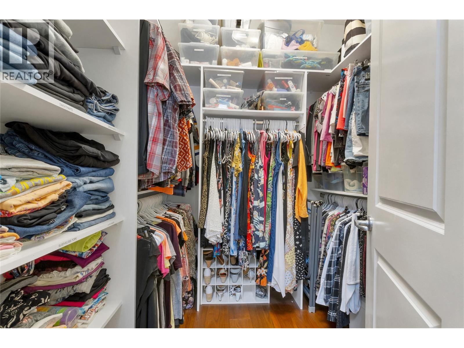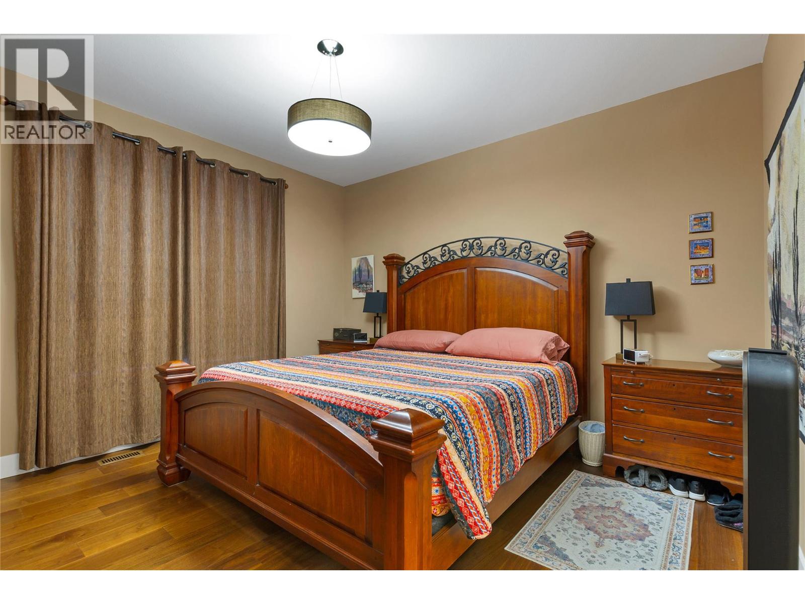 Welcome to the sought-after Gablecraft complex, just steps from Mission Creek Golf Course! This beautifully maintained 2 bed rancher offers open-concept living with high ceilings and a bright, spacious feel throughout. Nearly $78,000 in upgrades adds exceptional value, including hardwood flooring throughout, fresh paint, a stunning new fireplace with feature wall, updated light fixtures, and a larger built-in microwave. The spacious kitchen features expanded pantry and shelving for extra functionality, granite countertops and a huge island. The primary bedroom includes a spa-like ensuite and walk-in closet. Remote roll shutters and a home security system provide added comfort and peace of mind. Outdoor living shines with large, private, covered and open air patio areas, with exposed aggregate sidewalks and sitting areas, enhanced by an awning, fan, soffit outlets, bug screen, irrigation, and a hot tub — perfect for relaxing or entertaining. Complete with a 2 car garage featuring built-in shelving and Bluetooth opener, plus 2 additional parking spots on the driveway. A garden shed and gardening cabinet provide extra storage. An exceptional opportunity in a premier community! (id:58842)