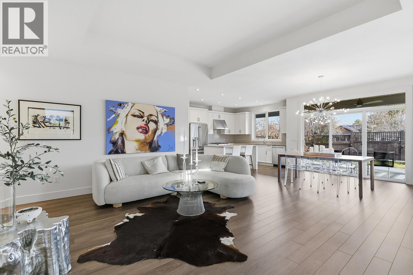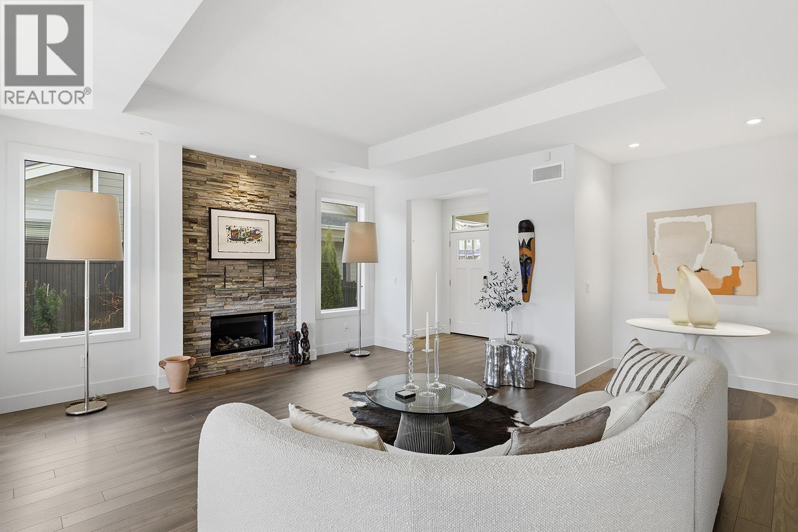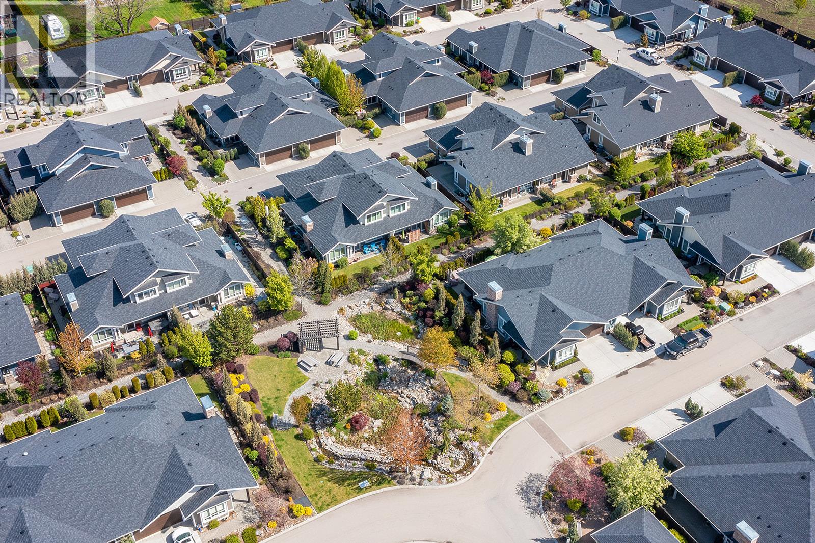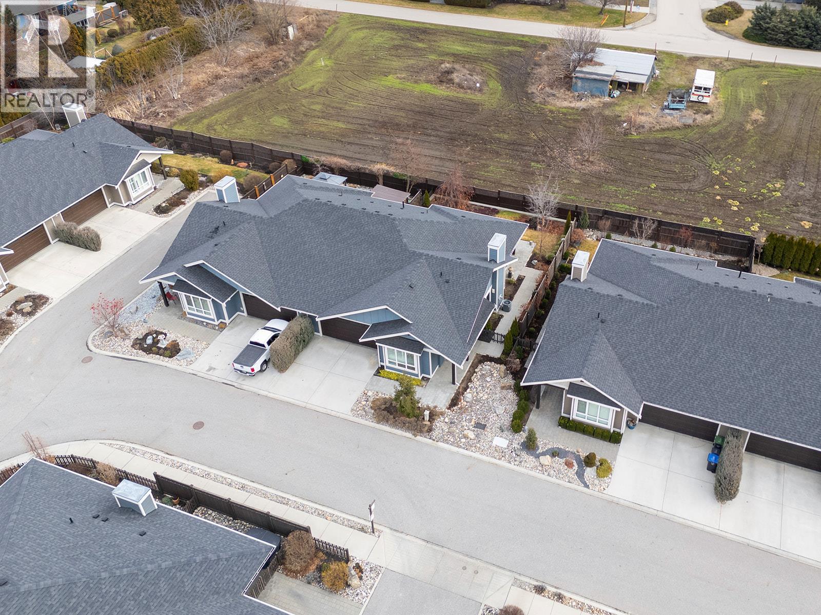 Low maintenance single-level townhome. High quality community! Fantastic opportunity to enjoy low-maintenance, stress-free, single-level living in the sought-after Gable Craft Community. Approx. 1395 sqft of single level living connects the open concept kitchen, dining and living areas with easy flow to the patio through glass sliding doors. The kitchen features granite countertops, GE stainless steel appliances, laminate flooring and in the centre of the living room is a gas fireplace set into a rock feature wall. The primary bedroom includes a 4 piece ensuite with a walk through closet, while the second bedroom sits near another full 4 piece bath. Laundry is set in its own room and a double car garage adds everyday function. Outside, enjoy a private stone block patio, fenced yard, small low maintenance lawn and space to garden along the fence line, plus a front porch, covered entry and driveway parking. Pet friendly and peaceful yet central, set across from Mission Creek Golf Course and steps to the Greenway. A smart option for first time buyers, downsizers or anyone seeking connection and easy living. (id:58842)