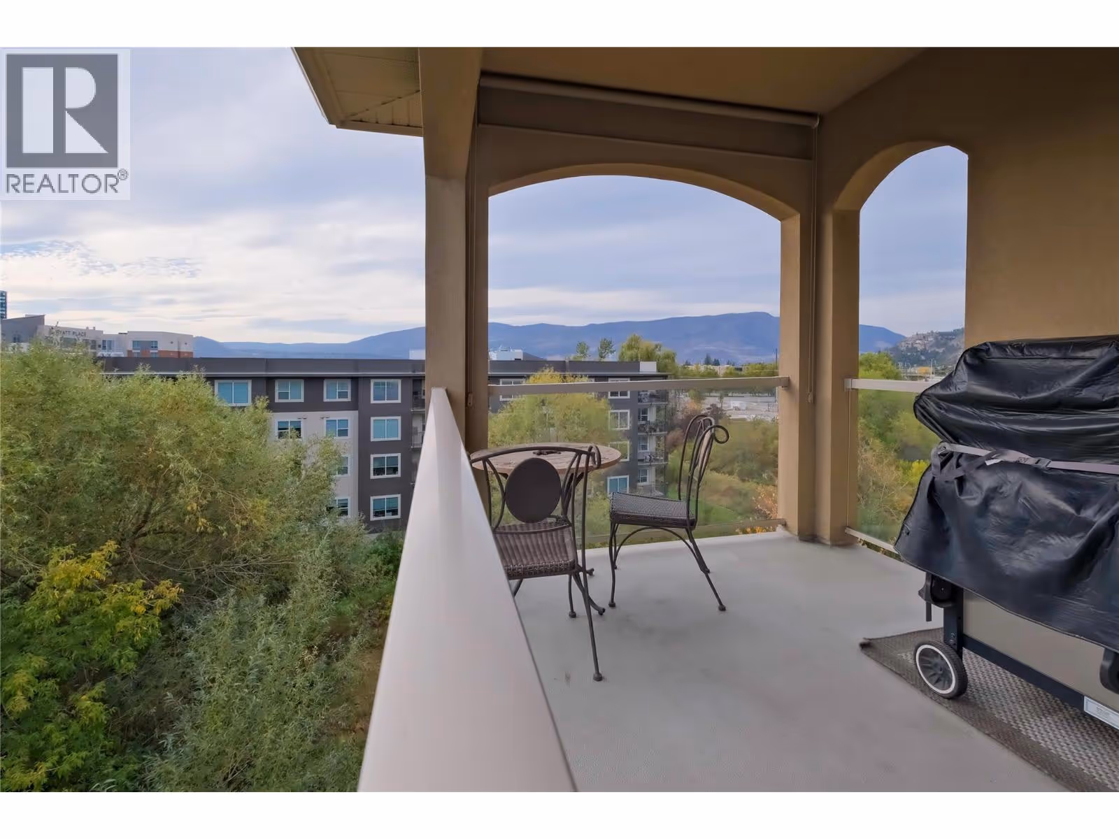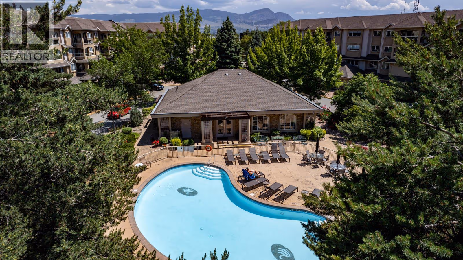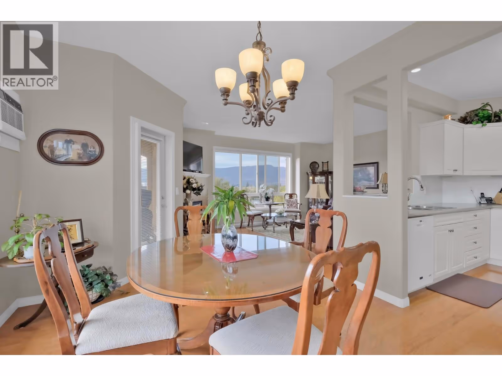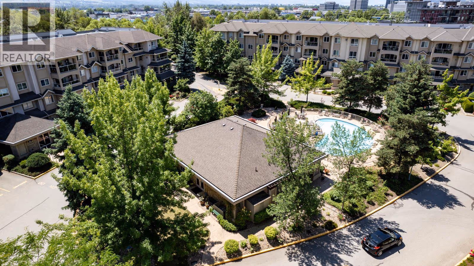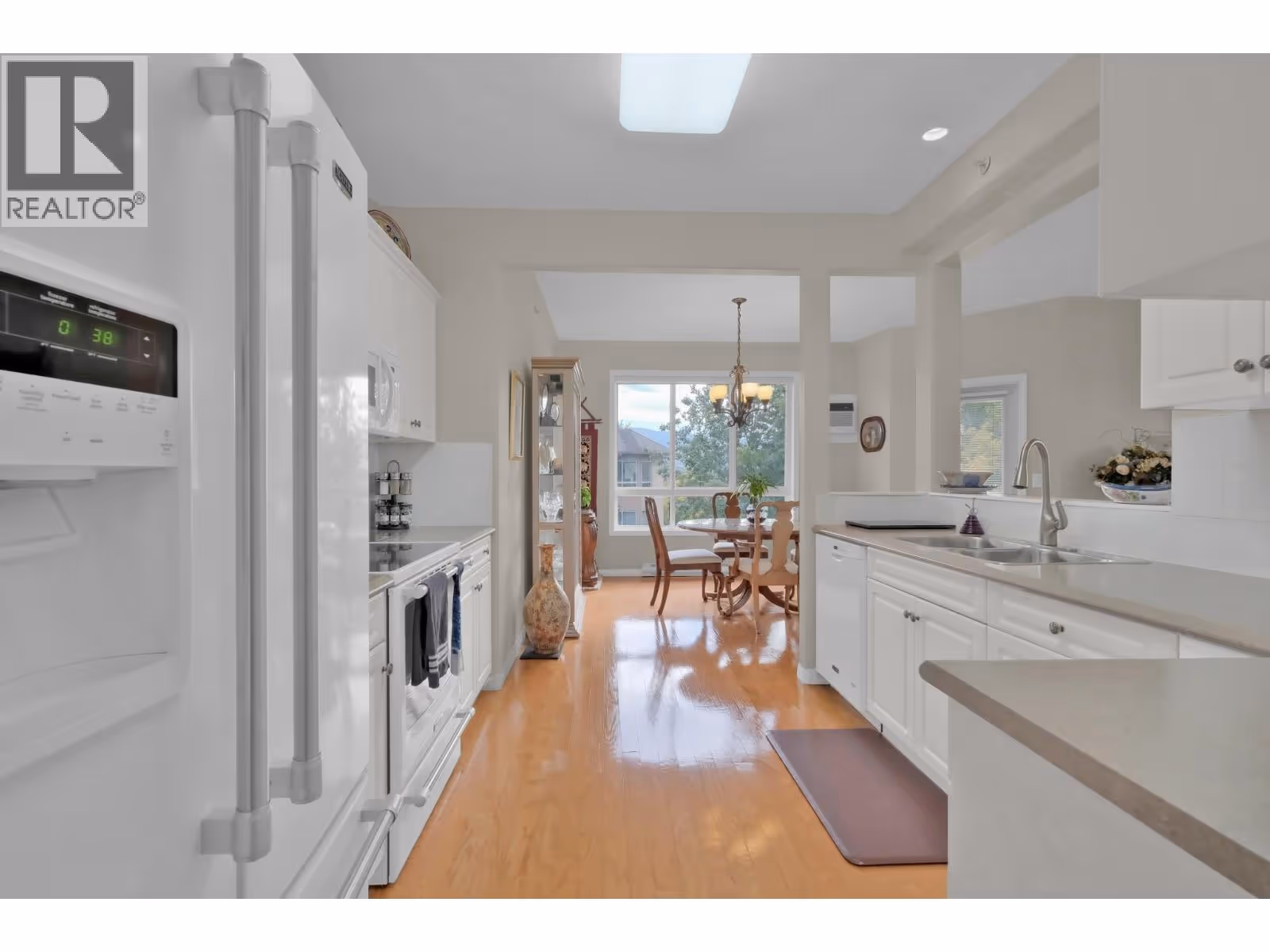 TOP FLOOR CORNER UNIT! Enjoy 1,250 sq. ft. of bright, open living space in a highly sought-after split bedroom layout. Filled with natural light from expansive windows, this home showcases real hardwood floors, mountain views, and Hunter Douglas blinds throughout—including the large covered balcony. The primary bedroom offers custom built-in closet organizers, while the second bedroom features a murphy bed, ideal for guests plus a home office. Added touches include a phantom screen door, newer A/C, updated appliances, a stand-up freezer, and gas bbq. Cozy up to the gas fireplace in winter or host summer barbecues on the balcony, with gas included in your strata fees. The storage locker is conveniently located just down the hall. Meadowbrook Estates is sought after for its resort feel. Whether you like lounging poolside in the sun or having some laughs over a game of pool with friends in the newly remodelled clubhouse, it's a perfect place to call home. Amongst the amenities are 3 guests suites with low nightly rates, bike & tire storage room and a gym. Meadowbrook is centrally located, just a stone’s throw away from transit, shopping, recreation & the rail trail. (id:58842)