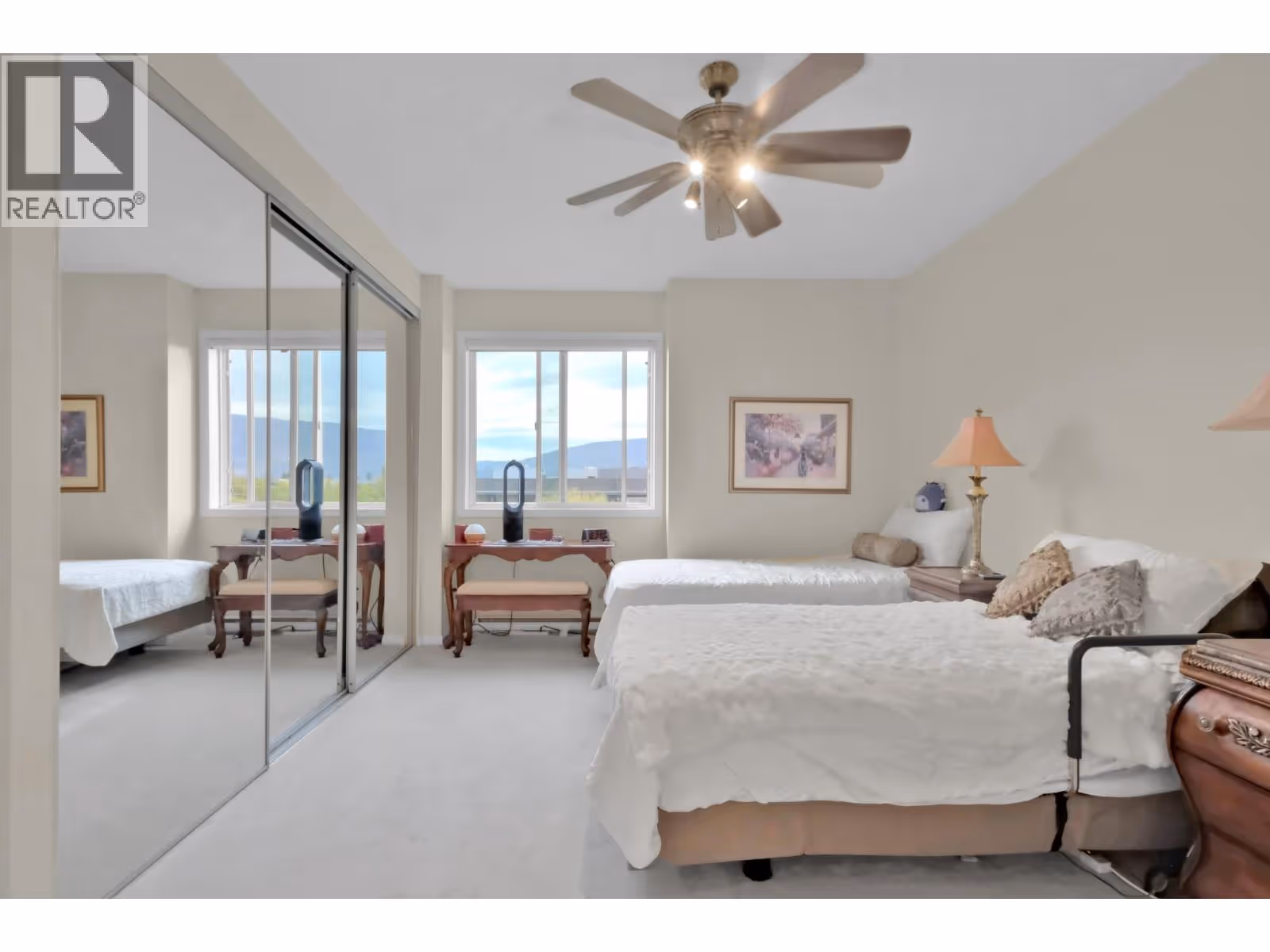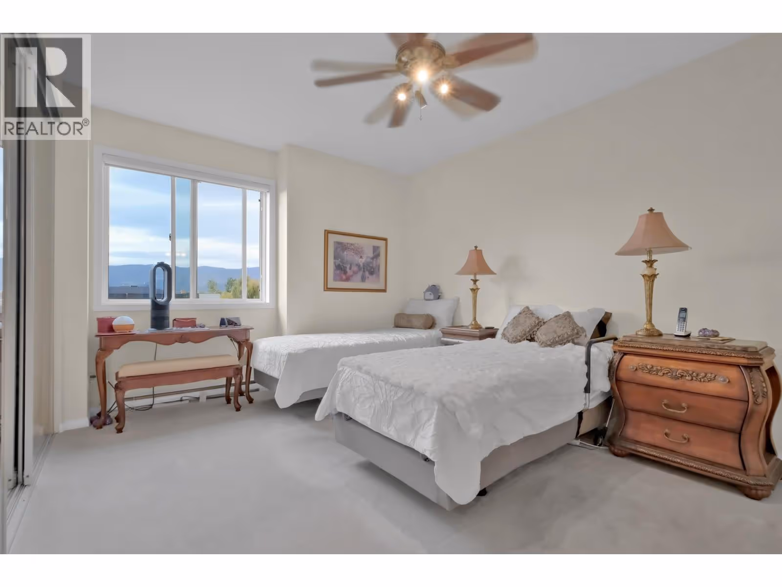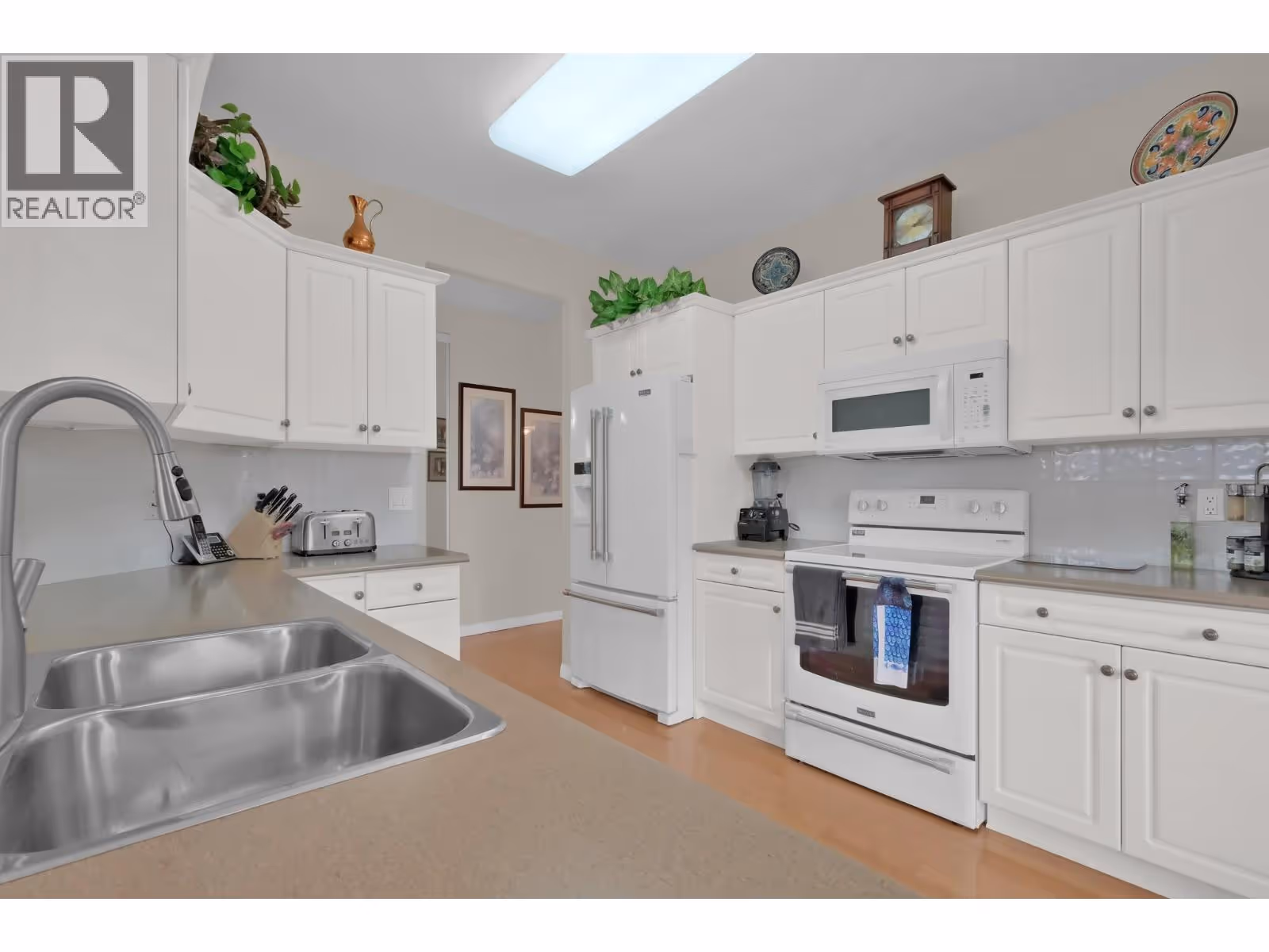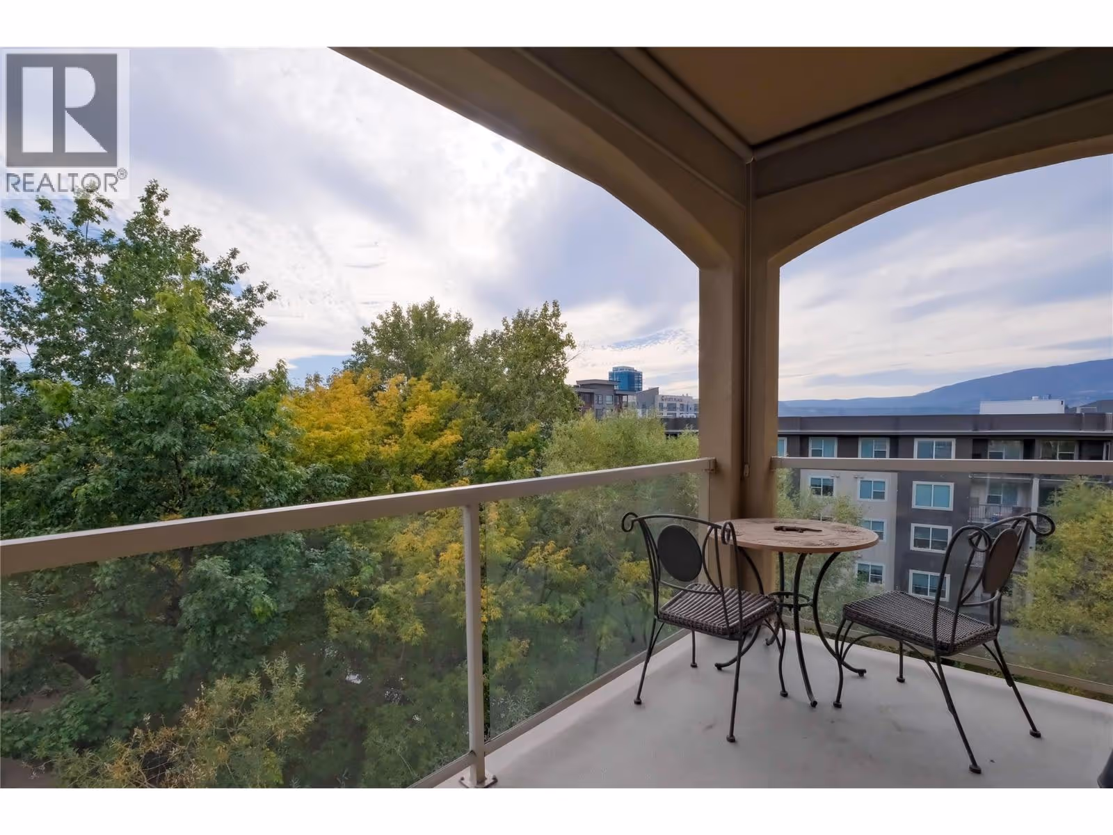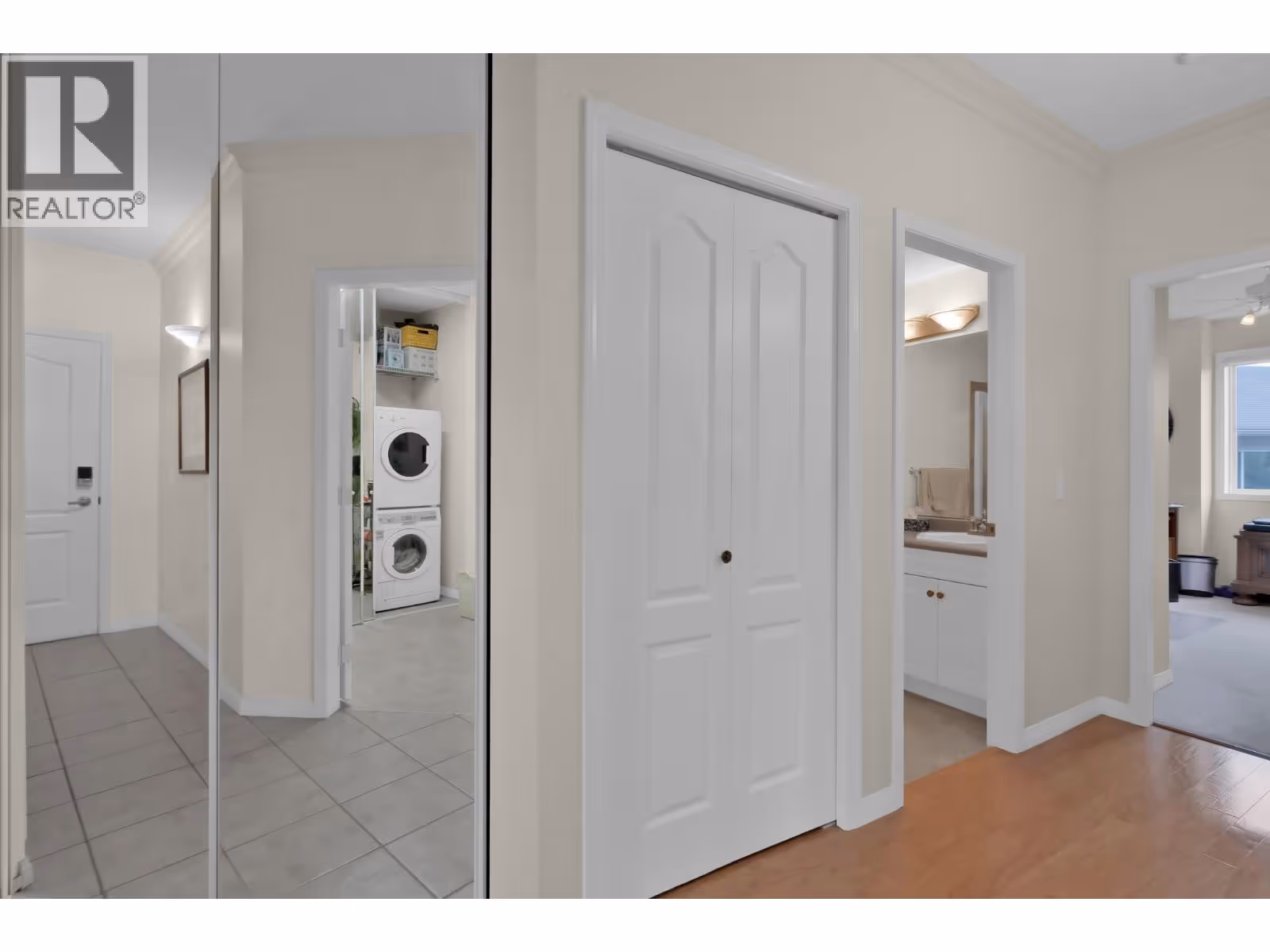 TOP FLOOR CORNER UNIT! Enjoy 1,250 sq. ft. of bright, open living space in a highly sought-after split bedroom layout. Filled with natural light from expansive windows, this home showcases real hardwood floors, mountain views, and Hunter Douglas blinds throughout—including the large covered balcony. The primary bedroom offers custom built-in closet organizers, while the second bedroom features a murphy bed, ideal for guests plus a home office. Added touches include a phantom screen door, newer A/C, updated appliances, a stand-up freezer, and gas bbq. Cozy up to the gas fireplace in winter or host summer barbecues on the balcony, with gas included in your strata fees. The storage locker is conveniently located just down the hall. Meadowbrook Estates is sought after for its resort feel. Whether you like lounging poolside in the sun or having some laughs over a game of pool with friends in the newly remodelled clubhouse, it's a perfect place to call home. Amongst the amenities are 3 guests suites with low nightly rates, bike & tire storage room and a gym. Meadowbrook is centrally located, just a stone’s throw away from transit, shopping, recreation & the rail trail. (id:58842)