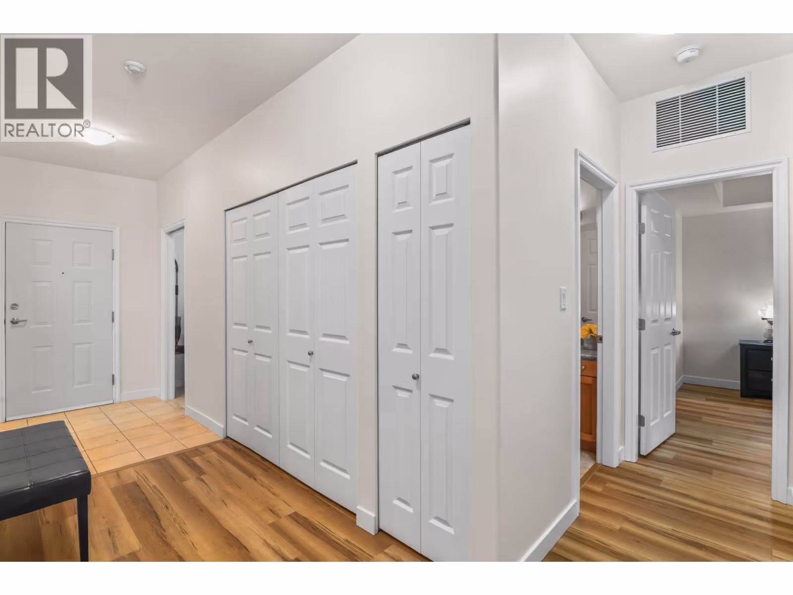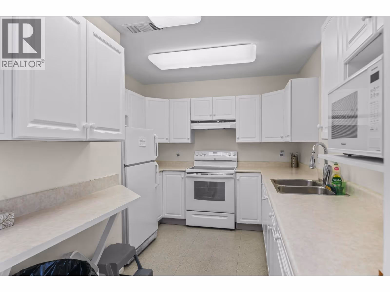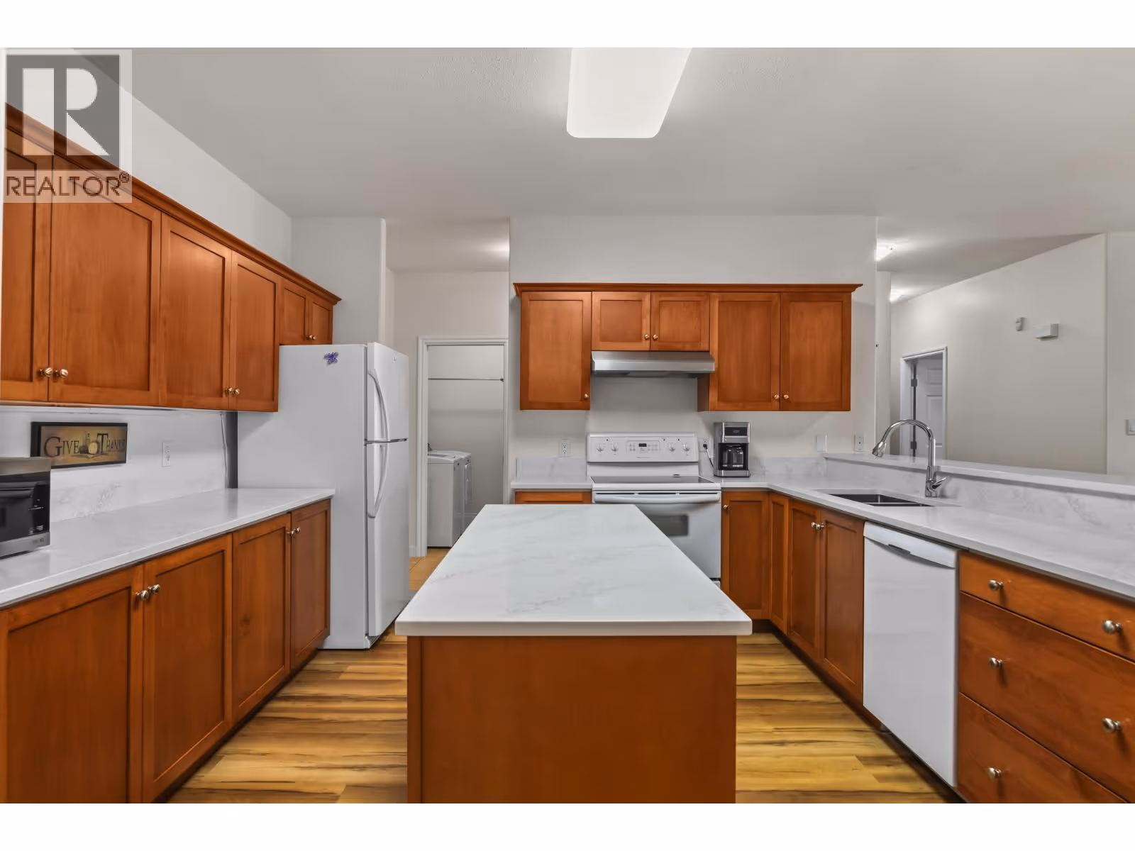• Top-Floor 2 Bedroom + Den | 1,411+SF | Bright, Spacious, Move-In Ready • Stunning renovated living space, this bright and spacious home features new windows throughout; new flooring, baseboards, quartz counters, a huge kitchen island, new dishwasher, new modern light & bathroom fixtures. Gas fireplace. The open-concept layout is perfect for entertaining, while the den provides flexibility for an office, dining or guest space. The bonus enclosed sunroom offers another 150+ sf of living area which is not included in total square footage. No age restrictions. Pet friendly - 1 cat or 1 dog (16"" max at shoulder). 1 underground parking stall with private secured storage locker + extra outside parking. Great amenities include clubhouse, BBQ plaza for outdoor entertaining, beautiful gardens, a woodworking shop & bike storage. Secure building in a quiet yet central location—walk to Mission Creek Park and shopping. Move-in ready and sure to impress! Quick possession available. Call for a showing today. (id:58842)