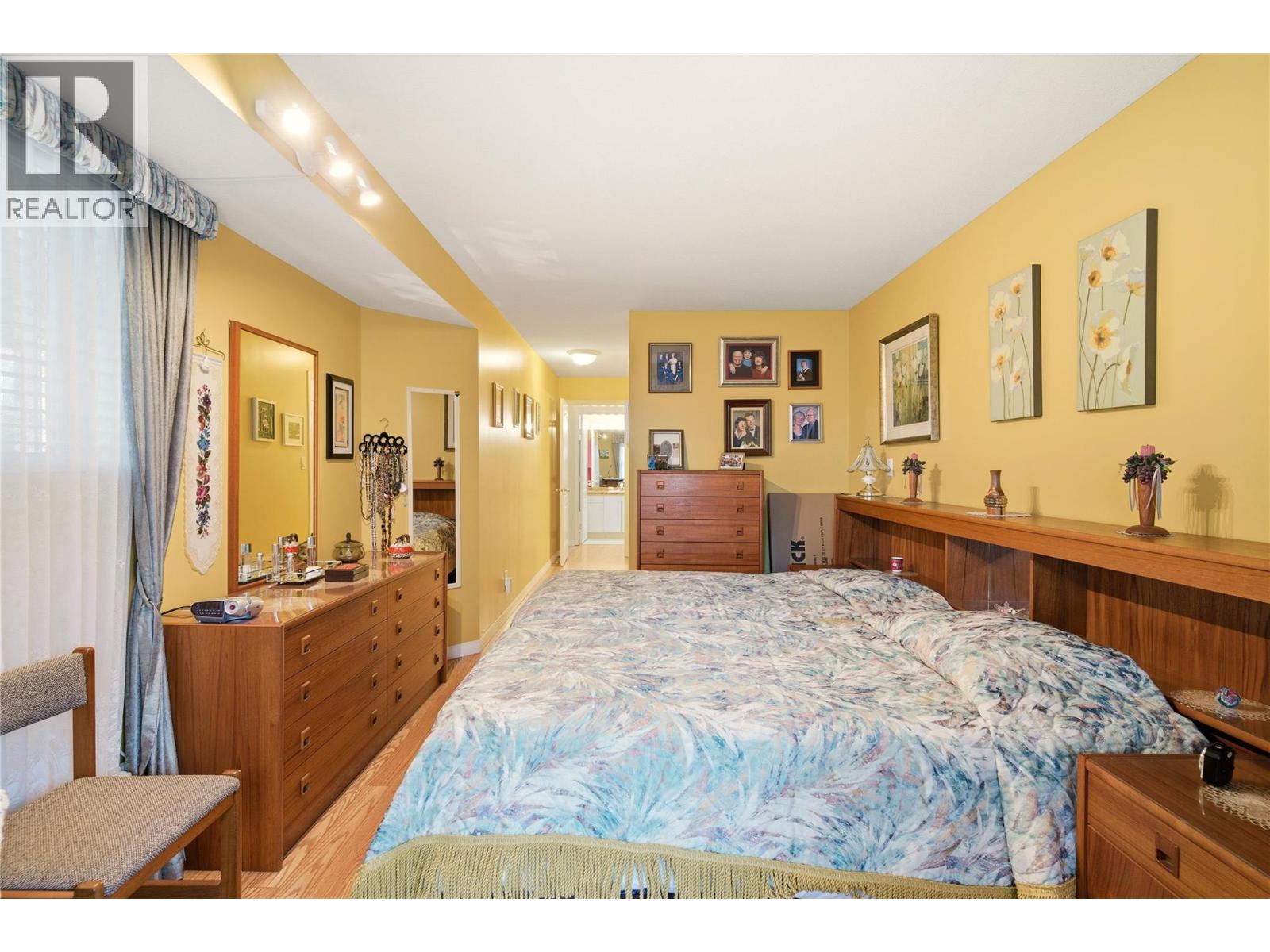 Welcome to one of the best-kept secrets in Bristol Gardens. This immaculate ground-floor 2 bedroom, 2 bathroom (original show home) offers 1,156 sq ft of comfortable, easy living in a location that puts everything at your doorstep. Lovingly cared for by the original owner, this home shows true pride of ownership the moment you walk in. You’ll love the spacious layout with oversized bedrooms and bay windows, including a primary suite with walk-in closet and beautifully updated ensuite featuring a walk-in tiled shower. The separate laundry room is a rare bonus, no squeezing past stacked machines in a closet here. Same-floor storage is just steps away for added convenience. Step outside to your walk-out patio with gas BBQ hookup, perfect for summer evenings and casual entertaining. Enjoy central heat and air conditioning for year-round comfort, with the furnace replaced in 2021. One underground parking stall included. The well-managed building offers a clubhouse, workshop, heated parkade, car wash bay, and two elevators. Walk to Orchard Park Mall, Costco, Superstore, restaurants, and the Mission Creek Greenway. Pet friendly (1 dog or 1 cat) with low strata fees. Peaceful, private, and move-in ready. This is condo living done right. (id:58842)