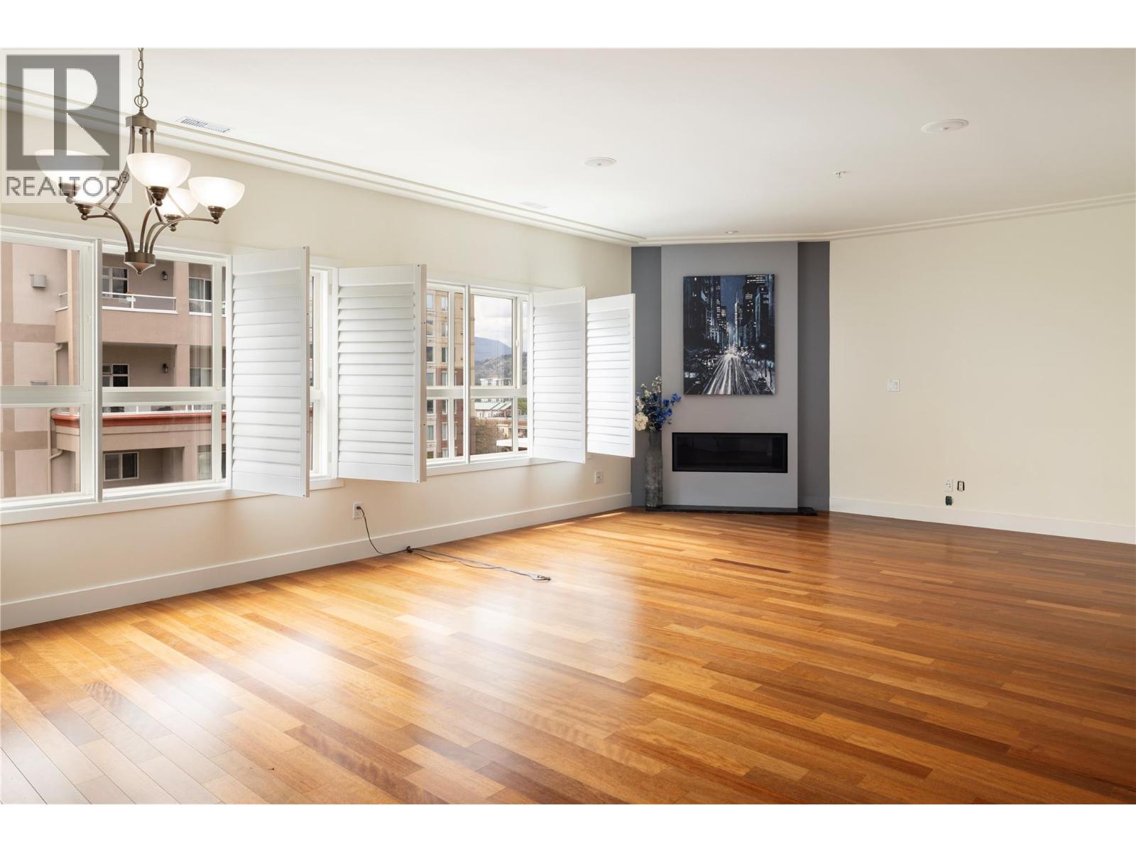 COMPARE VALUE – Spacious 1,920 sq foot Sub Penthouse. Experience timeless elegance in this 8th floor sub-penthouse suite offering luxury living in a quality concrete and steel building. Soaring 9-ft ceilings, panoramic lake and mountain views, and 600+ sq ft of private decks and balconies make this home truly one of a kind. Featuring two spacious master suites, each with walk-in closets and full ensuites, plus a generous den/flex room ideal for a home office or guest space. The open-concept great room showcases hardwood floors, custom wood shutters, updated gas fireplace, and a coffered ceiling for added charm. The chef’s kitchen is outfitted with stainless steel appliances, granite countertops, a pantry, and elegant finishes throughout. Includes three full bathrooms and two premium parkade stalls in a quiet, secure building. Enjoy resort-style amenities: indoor pool & hot tub, rec room, putting green, community garden plots, secured bike room, and plenty of underground visitor parking. Fast elevator access and recent building upgrades throughout. Unbeatable location across from Mission Creek Park & Greenway, Orchard Park Mall—walk to shops, banks and restaurants. Well-managed strata. Excellent pricing for a concrete building. Vacant and easy to view—don’t miss out! (id:58842)