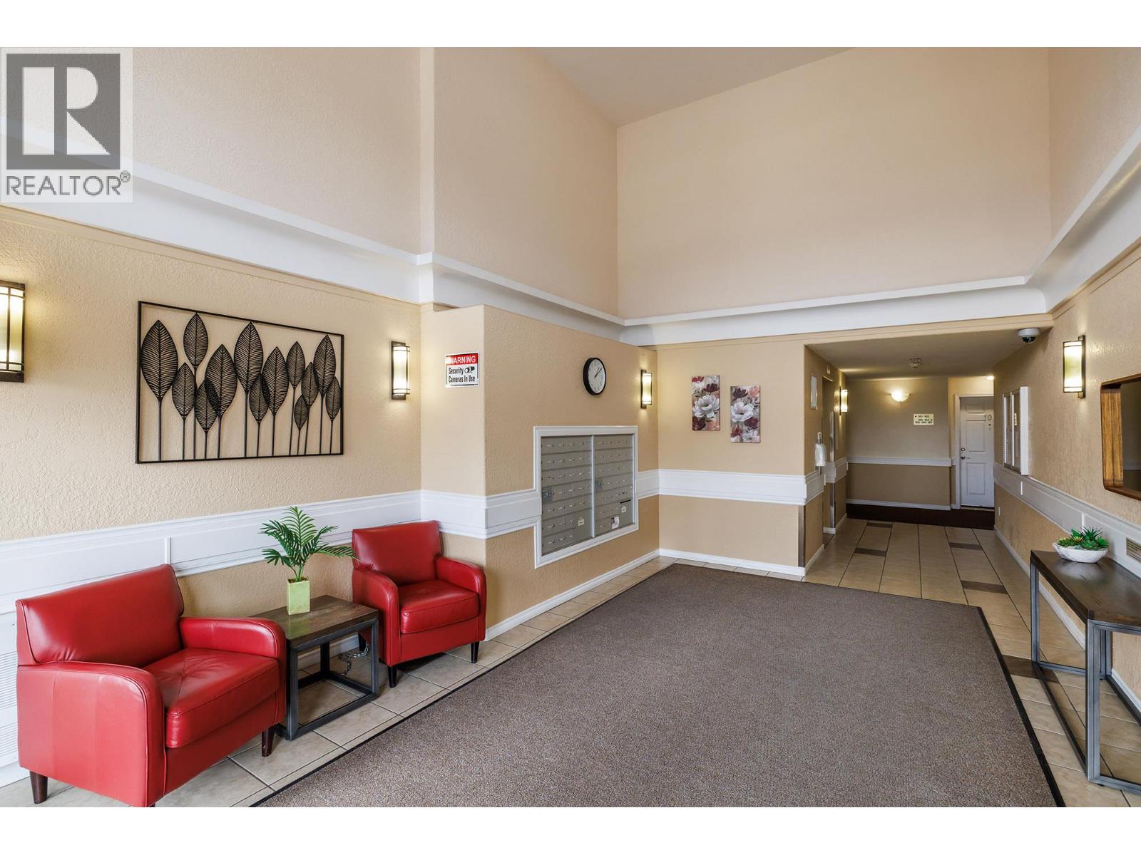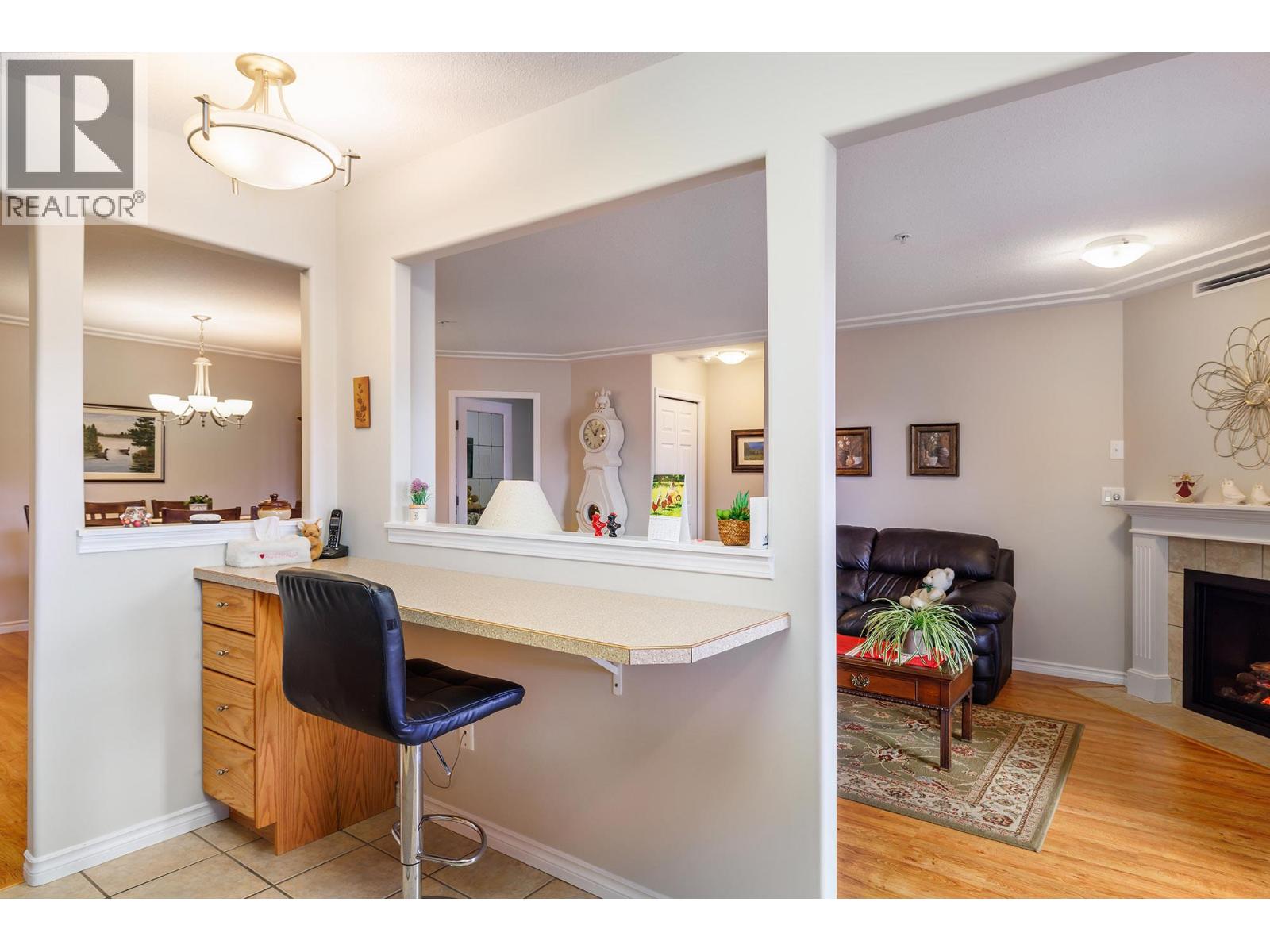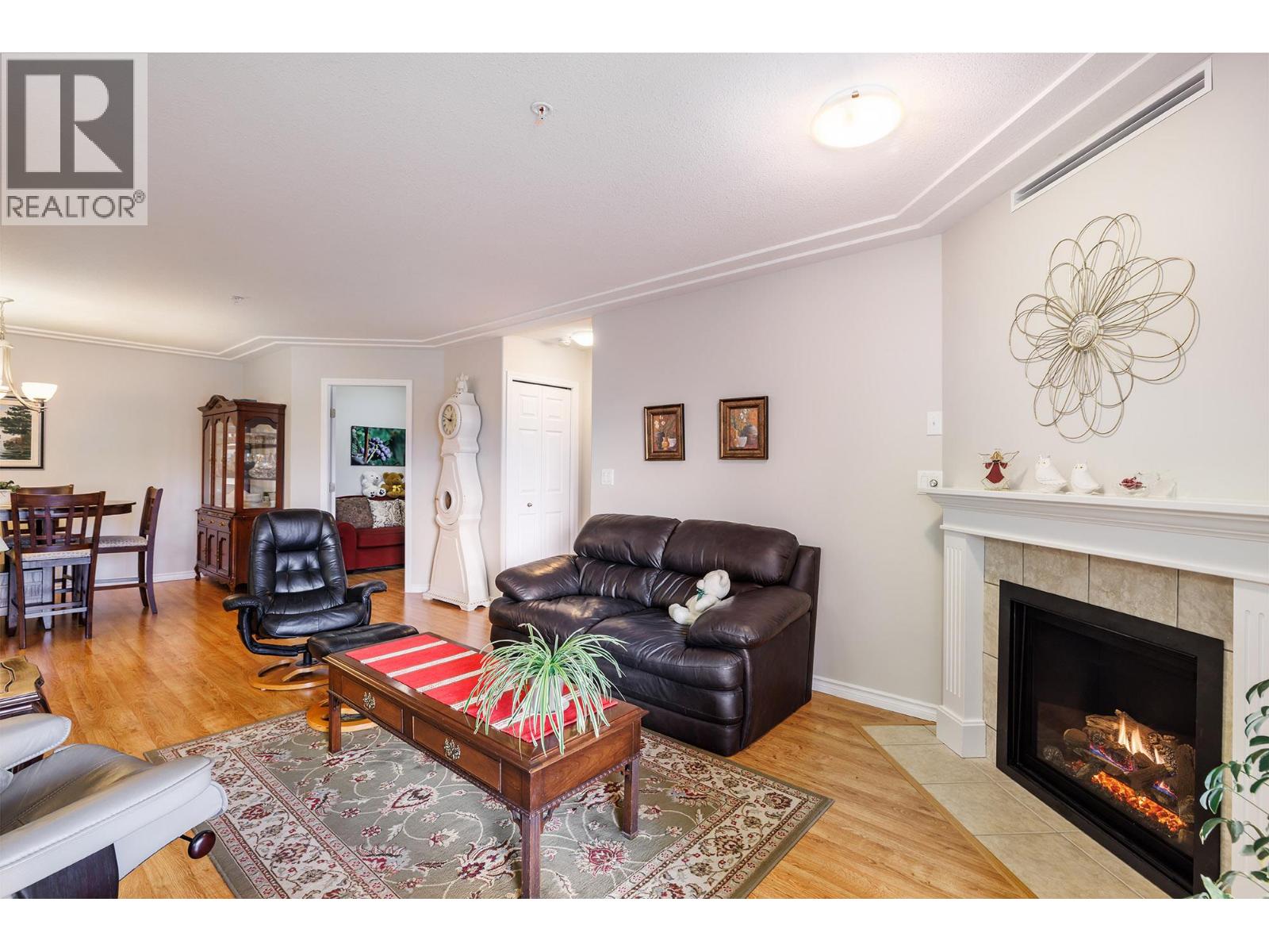Spacious and contemporary 2 bed + den, 2 bath condo at Mission Creek Towers! Bedrooms strategically placed for privacy and an open kitchen with shaker-style cabinets, stainless steel appliances, ample storage, and a breakfast counter flowing into the dining area. Large windows fill the space with natural light, while a corner gas fireplace adds cozy charm. A convenient laundry room with side-by-side washer and dryer completes the home. Relax on the covered deck overlooking Mission Creek Park. Concrete construction ensures quiet, durable living. Enjoy amenities including a heated indoor pool, hot tub, and a kitchen-equipped event room. Includes 1 secure underground parking space and a storage unit on your floor. Forced air heating and A/C keep you comfortable year-round. Steps from hiking trails, parks, shopping, Costco, and the Farmers Market. One pet allowed, up to 14""! THIS ONE IS AVAILABLE AND EASY TO SHOW! (id:58842)