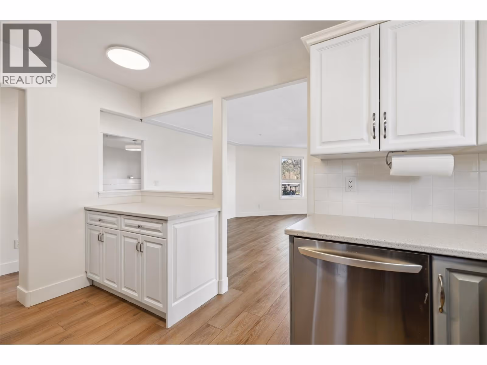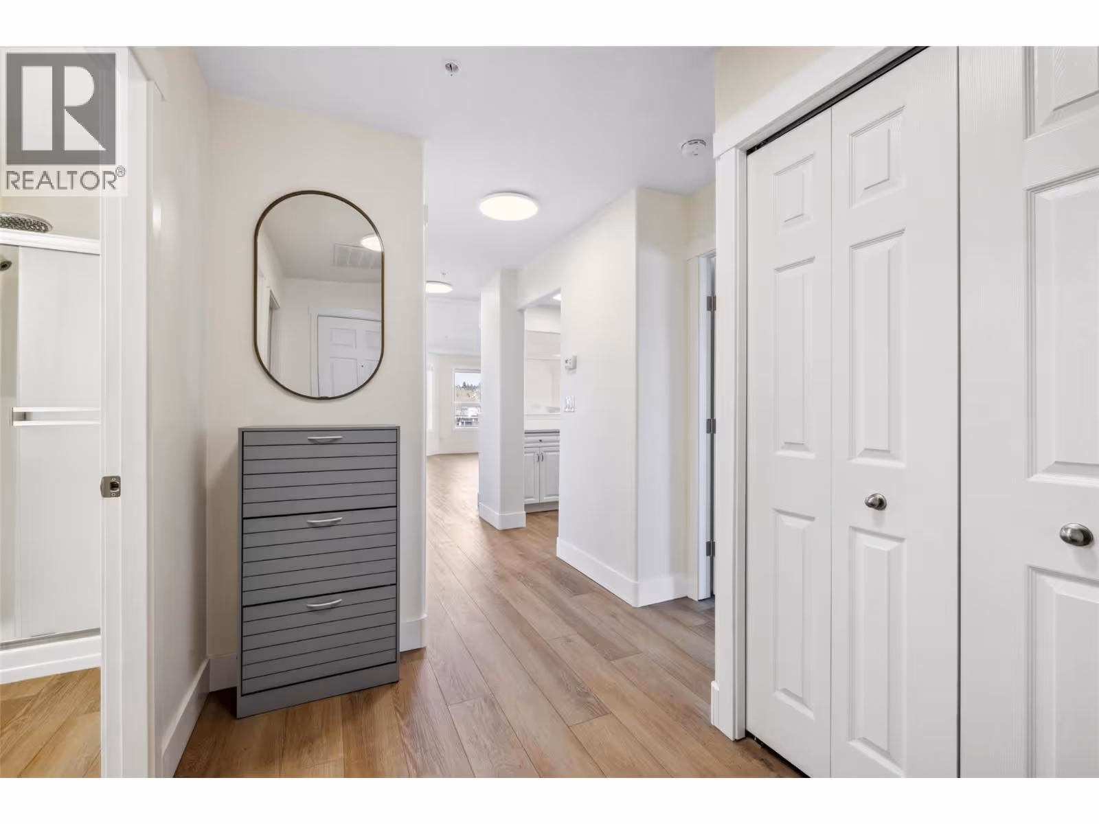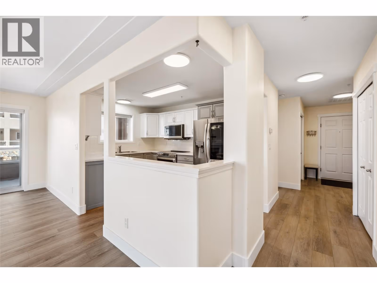 Immediate Possession Available! Experience upscale living in this beautifully updated corner unit condo at the prestigious Mission Creek Towers. This two bedroom, two bathroom residence impresses with its modern elegance and timeless design. Enjoy the richness of luxury vinyl plank flooring, brand-new moldings, designer lighting, fresh paint throughout, and sleek hardware and fixtures that elevate every room. The sophisticated dual-tone kitchen is a showpiece, featuring stainless steel appliances, expansive countertops, and ample cabinetry, ideal for both everyday indulgence and entertaining guests. Flooded with natural light from multiple exposures, the spacious living area flows effortlessly onto two oversized patios, offering seamless indoor-outdoor living. The thoughtfully designed split floor plan ensures ultimate privacy, with a serene primary suite that includes a large walk-in closet with built-in organizers and a spa-inspired four piece ensuite. This home includes one secure, heated underground parking stall, with the option to rent an additional stall, plus a generously sized storage locker conveniently located on the same floor. Residents of this well maintained, quiet concrete building, enjoy access to resort-style amenities including an indoor swimming pool, hot tub, owner's lounge with full kitchen, putting green, and a beautifully landscaped courtyard. All of this is just a short stroll from Orchard Park Mall, the Mission Creek Greenway, top restaurants, grocery stores, and a major transit hub. (id:58842)
