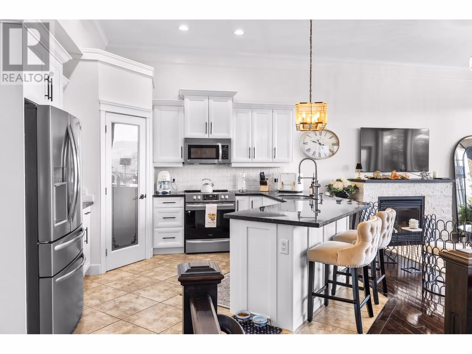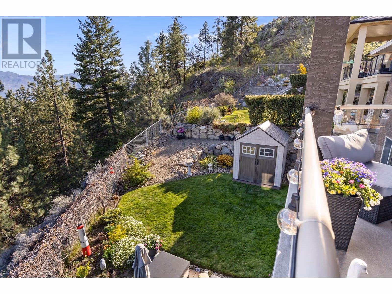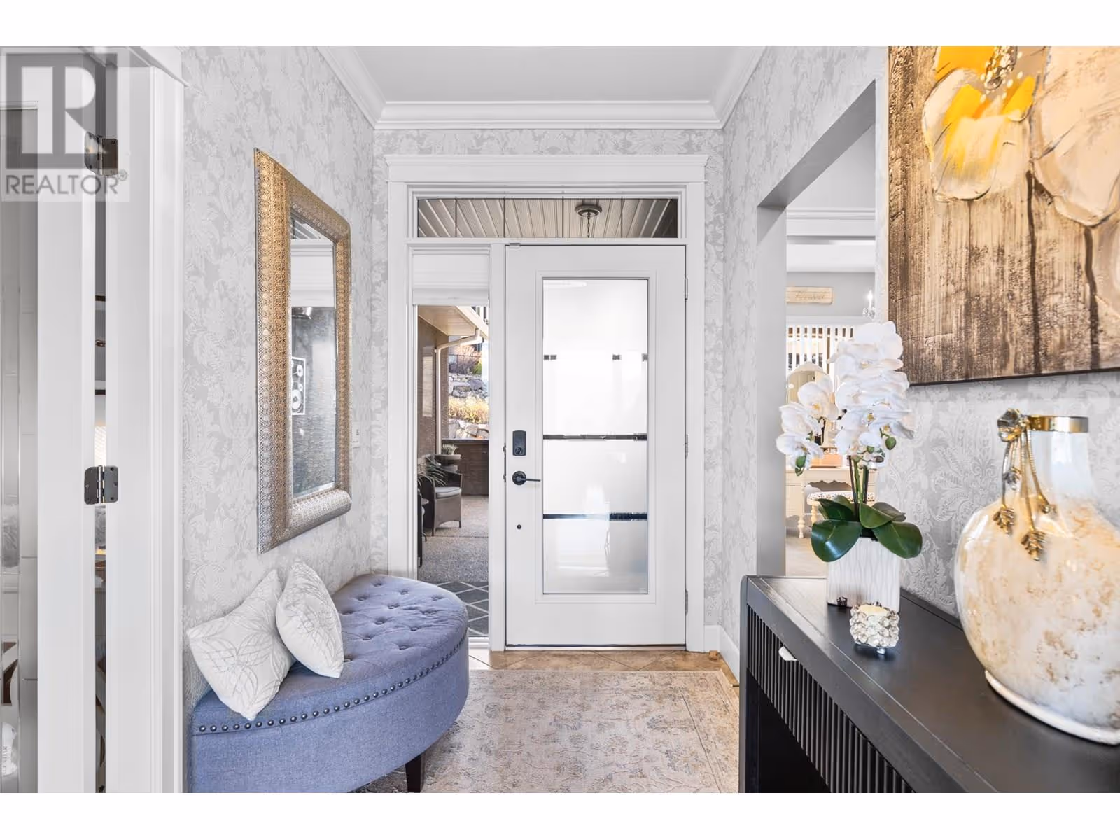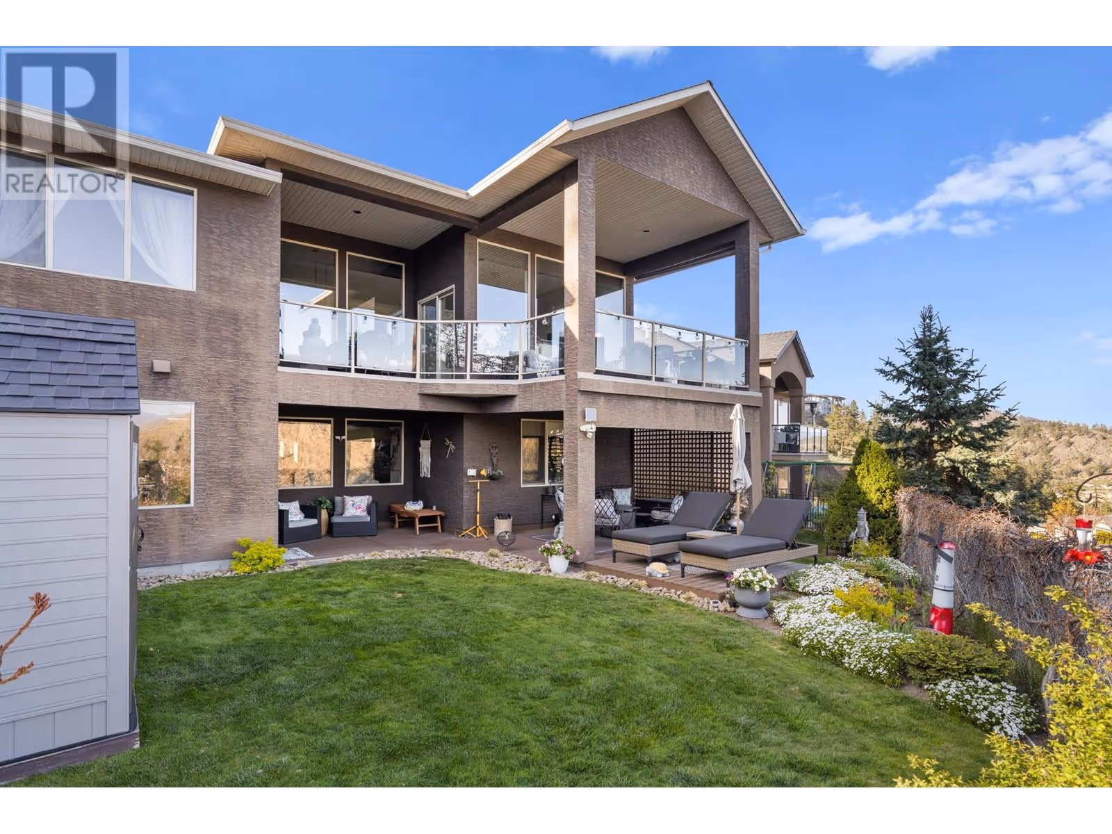 Welcome to refined living in The Highlands one of West Kelowna’s most exclusive gated communities. This immaculate 3300+ sq ft walkout rancher offers 4 bedrooms, 3 bathrooms, a den, and show-stopping views of the mountains, lake, and valley. Step into an open-concept layout featuring soaring windows that allows a ton of natural light into the home, rich crown moulding, and gleaming hardwood floors. The chef- inspired kitchen is equipped with newer stainless steel appliances, a convection stove with built-in air fryer, granite island, and walk-in pantry. Off the living room, a spacious covered balcony with gas hookup is perfect for summer nights and year-round entertaining. The spacious primary bedroom is a peaceful haven where the moonlight shines in through the windows each night . The luxurious ensuite features a double granite vanity, soaker tub, and separate shower. A bright front-facing den and second bedroom with nearby 4-piece bath complete the main level. Downstairs features two additional bedrooms separated by a full bathroom, a large family room with oversized windows, and direct access to a covered patio with hot tub hookup and a beautifully landscaped, fenced backyard. Bonus: the media/rec room is ideal for entertaining — complete with a built-in bar, beverage fridge, and wine cooler. Prime Location tucked away in a quiet, secure community, yet just minutes to schools, golf, shopping, and restaurants — this home is move-in ready and checks all the boxes. (id:58842)