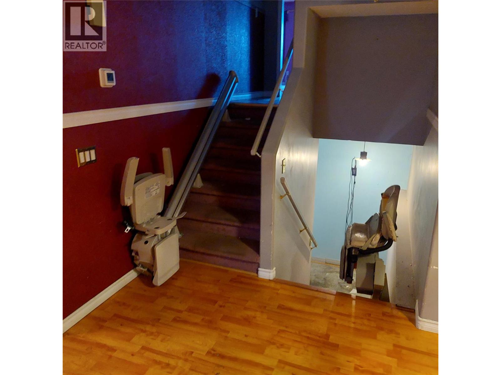 Unique opportunity, ideal for someone with mobility issues! Located in convenient North Glenmore, this custom designed front-back slit-level home was specifically designed with wheel-chair access in mind. The main level features a spacious open plan with bright kitchen with abundant cabinets, 2 piece bath, and an oversized living room. The upstairs is one massive primary bedroom with a full wall of closets, access to sundeck, and a huge ensuite with shower and jetted tub. The basement is partially developed with an additional bedroom and full bath with separate access to the outside. Lots of room left for your own ideas. Home features central air, built in vac system, an lots of additional storage. Stair lifts for access up and down as well as a wheelchair lift in carport. This is an Estate Sale so is being sold ""As-is"" and the home does require updating! (id:58842)