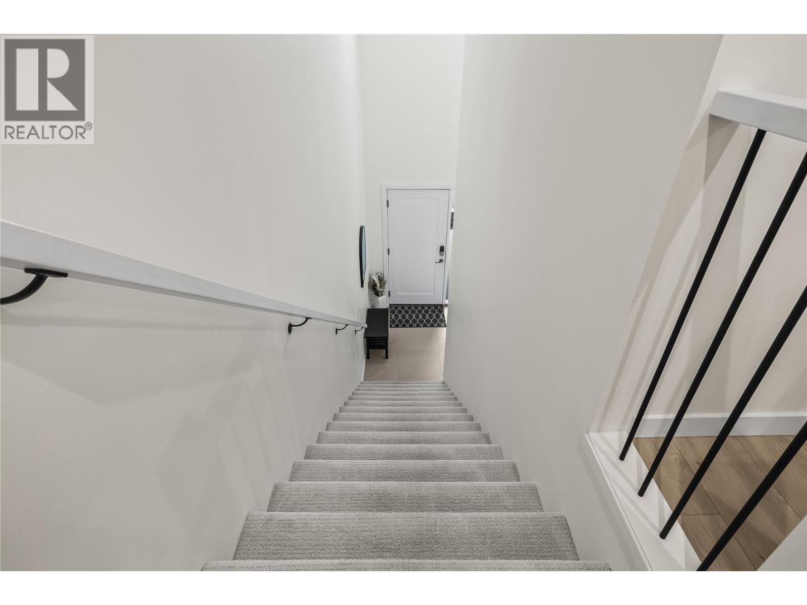Step into refined luxury at Quail Landing—an exclusive retreat set along the 18th hole of the Championship Quail Course. This impeccable residence blends sophisticated design with effortless functionality, offering a lifestyle defined by comfort, elegance, and superior craftsmanship. Every detail has been curated to perfection: bright, modern interiors by Hatch Interior Design, wide-plank German-made laminate flooring, soaring 9’ ceilings, and seamless indoor-outdoor living through expansive sliding doors. All windows are finished with privacy film for added comfort. A built-in linear stone fireplace anchors the living space with warmth and style, while smart thermostats and energy-efficient systems ensure year-round comfort. The chef-inspired KitchenAid appliance package elevates the stunning kitchen—complete with a 5-burner gas range, whisper-quiet dishwasher, French-door fridge, polished quartz surfaces, soft-close shaker cabinetry, and a custom island ideal for hosting. Upstairs, the spa-inspired ensuite offers heated tile floors, quartz counters, chrome finishes, and a custom glass shower with bench seating. A 586 sq.ft. crawl space adds incredible bonus storage with easy accessibility. Exclusive resident-only outdoor firepit, EV charging upgrades, natural gas BBQ hookups, and a private road and entry. Located minutes from the Airport, UBCO and walking trails, in a well-maintained development with community green space and a serene setting for your enjoyment. (id:58842)