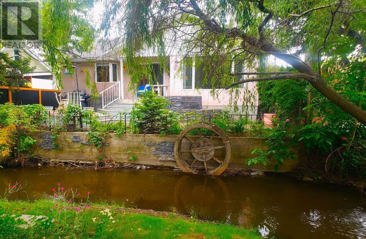 For more information, please click Brochure button. . Enjoy your morning coffee on the east facing front deck with nature at your doorstep in this picturesque home on Mill Creek. The home is set back from the street and has considerable privacy with lush greenery and your very own bridge! It was substantially renovated in 1999 and has an open floor plan with custom maple kitchen cabinetry. There are 2 large bedrooms upstairs with the main bathroom situated between them. The master bedroom boosts an incredible ensuite with a vaulted ceiling, sky lights, his and her sinks, a corner jacuzzi tub, and an extra closet. The basement has a nice sized rec room, one bedroom, and a massive workshop for the handyman. For parking you have an oversized single car garage with an attached carport, and room for 3 additional cars in the driveway (located at the end of a no-thru alley). The west facing backyard has a nice compact garden and raspberry bushes. You can't beat the central location of this home and its accessibility to bike lanes. It is situated across from the Bennett Estate and Hospice House (and the creekside walking trails to Millbridge Park) and is only a short walk to KGH for the health professional. This home is truly one of a kind and has been owned by the same family since it was originally built. Don't let this hidden gem pass you by. All measurements are approximate. (id:58842)