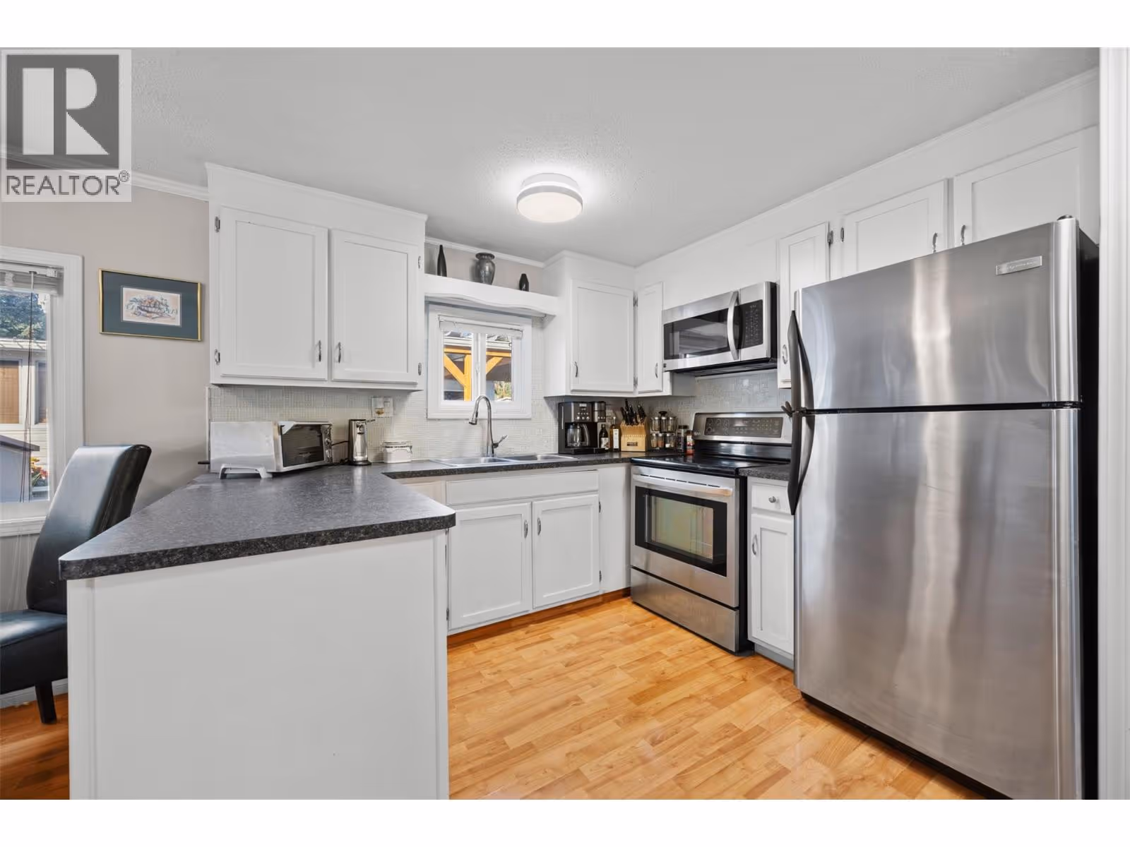 Looking to escape the rental game? Or downsize into a comfortable, well kept home nestled in the middle of one of West Kelowna’s most sought-after parks? Then be sure to take a closer look at this priced-to-sell gem of a home. The floor plan optimizes living space with an oversized living room at the front of the house that gets plenty of natural light. The kitchen is well laid out, has a large double sink and is finished with stainless steel appliances. Laminate flooring throughout makes cleaning a breeze. And to add to the excitement, the furnace/AC was switched to a Heat Pump (15k value) less than 6 months ago! The bathroom was also updated in the last 6 months with a new toilet, sink and mirror. Multiple sheds on the property provide plenty of extra storage and pets (including dogs!) are allowed. (id:58842)