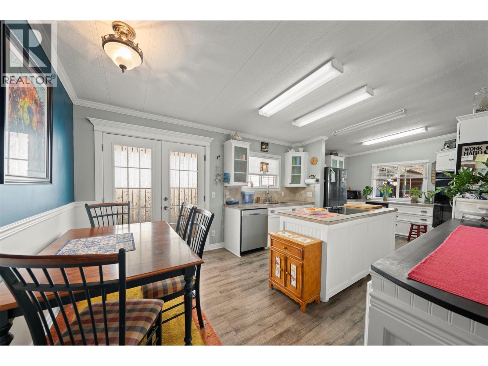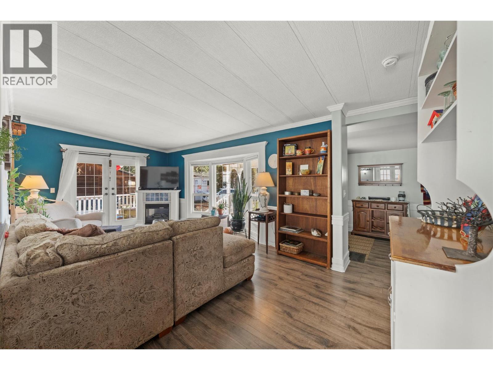 Newly renovated home in a desirable park BEAUTIFUL double wide home boasts 2 bed 2 bath and 1650 sq ft. Step onto your private front veranda thru the french doors and relax with morning coffee and soak up the sun all while enjoying the unparalleled view of Mount Boucherie, and mountains along OK lake. Freshly painted, totally updated with drywall throughout. Living room is large with plenty of light and lovely views from the bay windows and french double door leading to the side deck to the back yard. Appliances are SS and fairly new, fridge (2021), DW (2023), washer/dryer (2020). Both bathrooms have a walk-in glass shower, and the spa like ensuite has a double jetted tub. Master bed has large windows with plenty of light, a large bright office and walk in closer with built in shelves and drawers. The 2nd bedroom is bright and spacious with plenty of light and room for king bed and dressers. A gardeners dream with raised beds along the entire length of the mobile, the front has a beautiful garden bed and side bed alongside a large brick driveway. Newly landscaped private back yard including patio area. Both front and back yards are fenced. Roof is 5 years old, furnace was replaced in 2020 with a high efficiency and windows are new. House is located on a very quiet road in a well managed park. It is in the adult section (19+). Close to shopping, wineries, beaches, and hiking trails. 2 Pets welcome without size limits, with park approval. (id:58842)