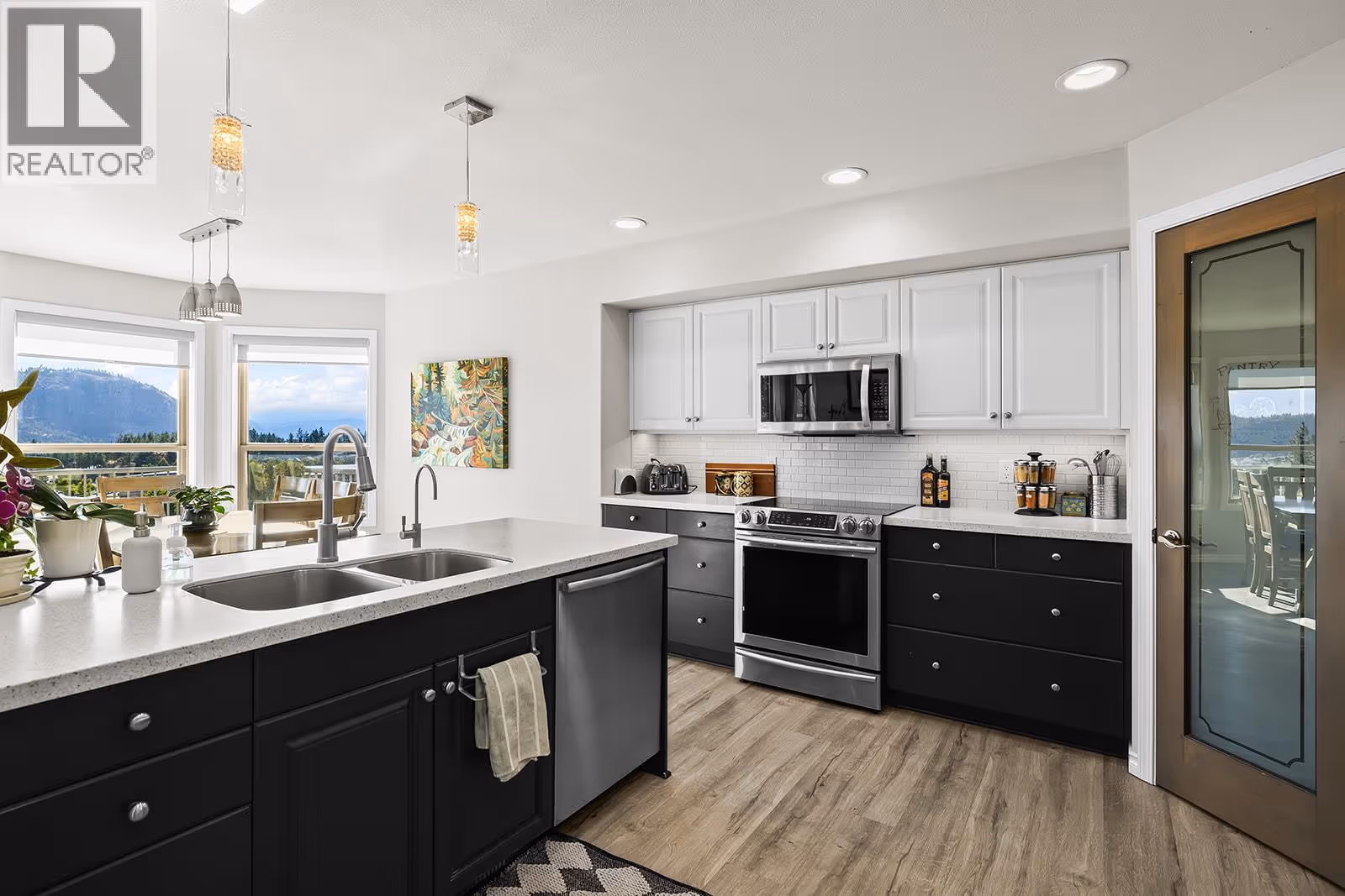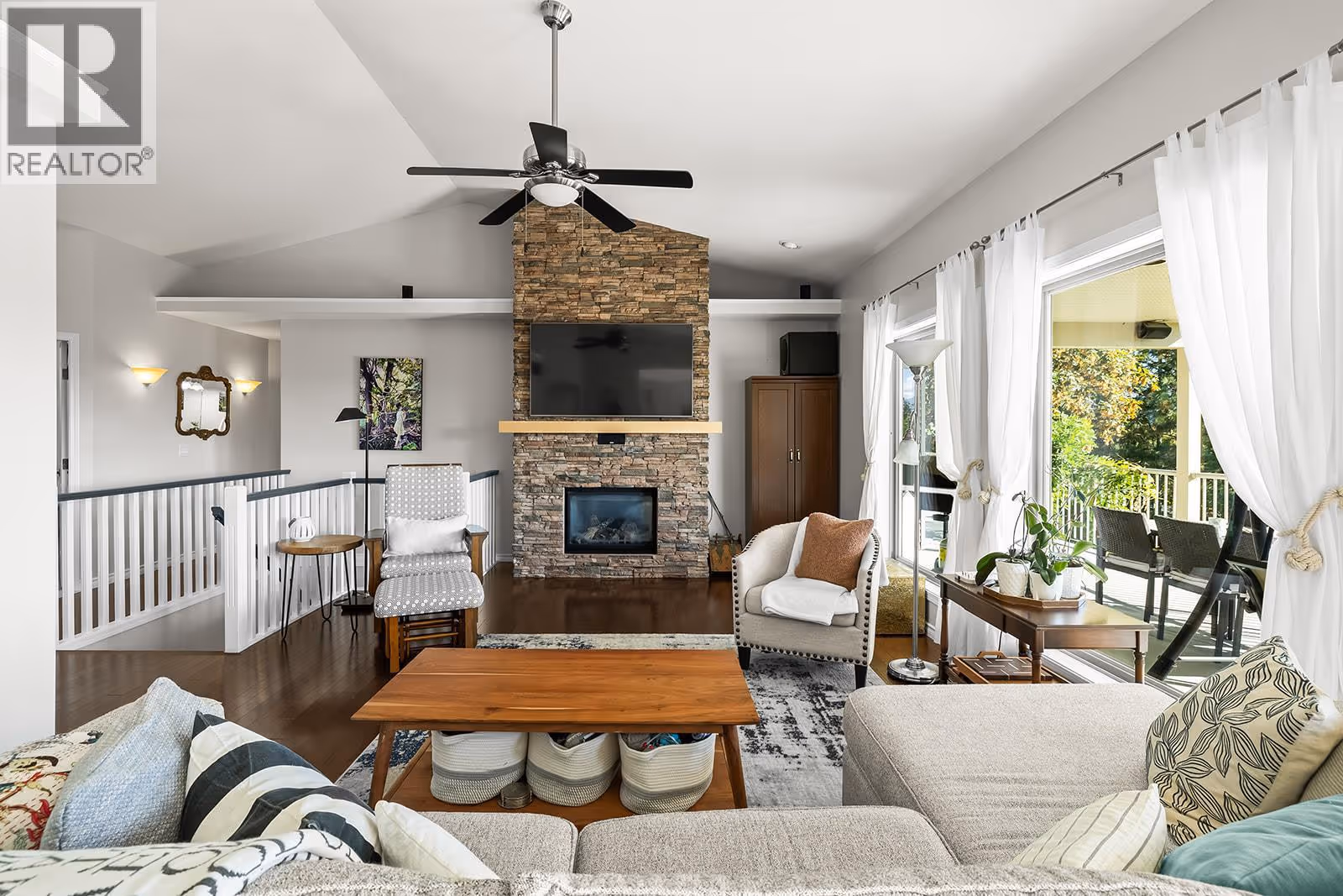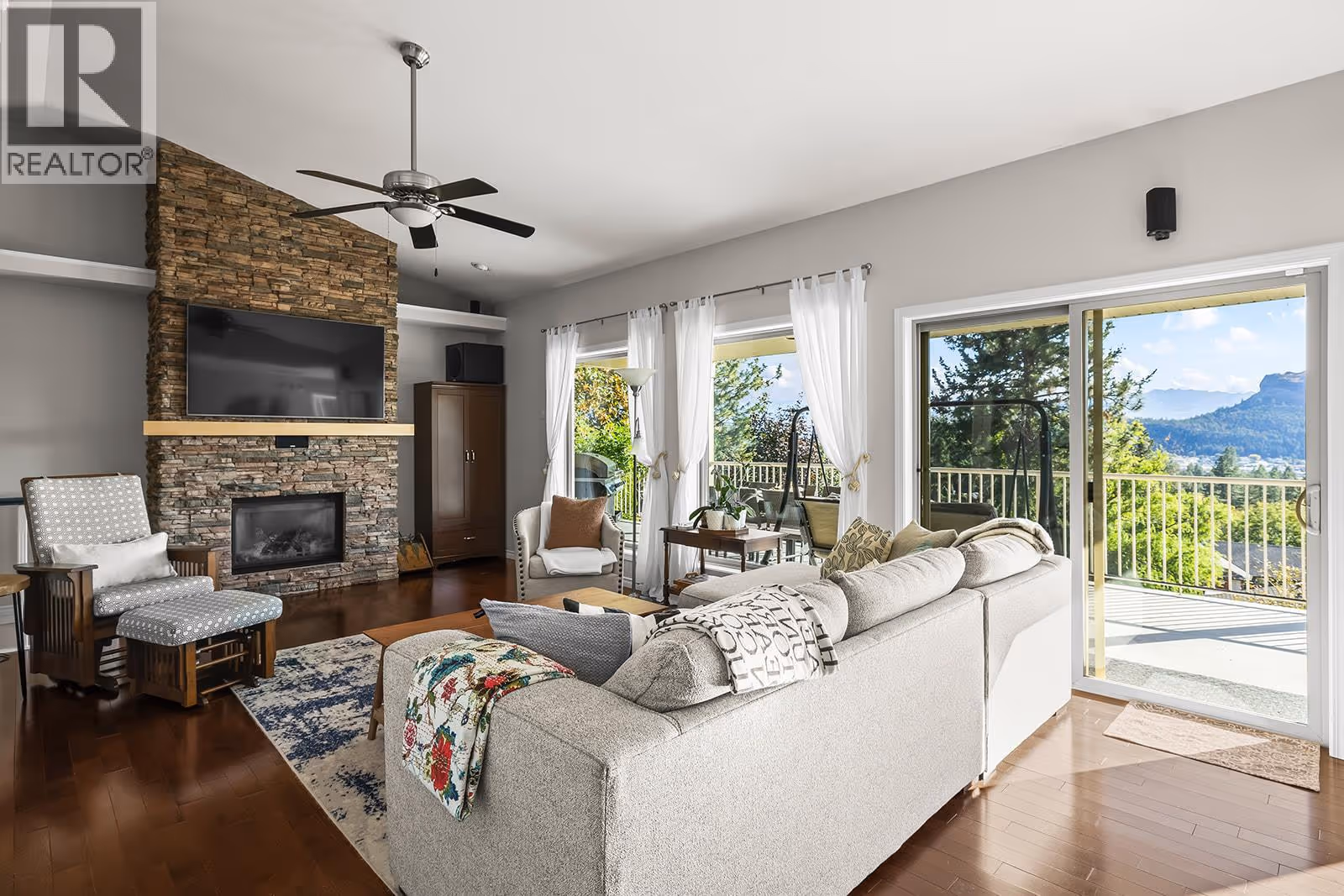Welcome to 2031 Rosealee Lane, a bright and inviting walkout rancher nestled in West Kelowna’s coveted Rose Valley community. From the moment you step inside, you are greeted by breathtaking mountain and valley views framed by a wall of windows. The heart of the home is the open-concept main floor, featuring vaulted ceilings, rich hardwood floors, and a stunning floor-to-ceiling stone fireplace that creates a warm, cozy atmosphere. The beautifully updated kitchen is a chef’s delight, with modern cabinetry, and a walk-in pantry. Enjoy seamless indoor-outdoor living with direct access to the expansive upper deck—perfect for morning coffee or evening relaxation. The main-floor primary suite offers a private retreat with its own deck access and a spacious ensuite. Downstairs, the fully finished walkout basement provides endless possibilities with a huge rec room, two additional bedrooms, and access to a covered patio and the private, landscaped backyard. For the hobbyist or adventurer, the rare triple-car garage and dedicated RV parking are a dream come true. Perfect for families seeking space to grow or anyone desiring convenient main-level living, this home offers an incredible lifestyle close to schools, parks, and trails. This well-priced gem won’t last long. Book your showing today! (id:58842)