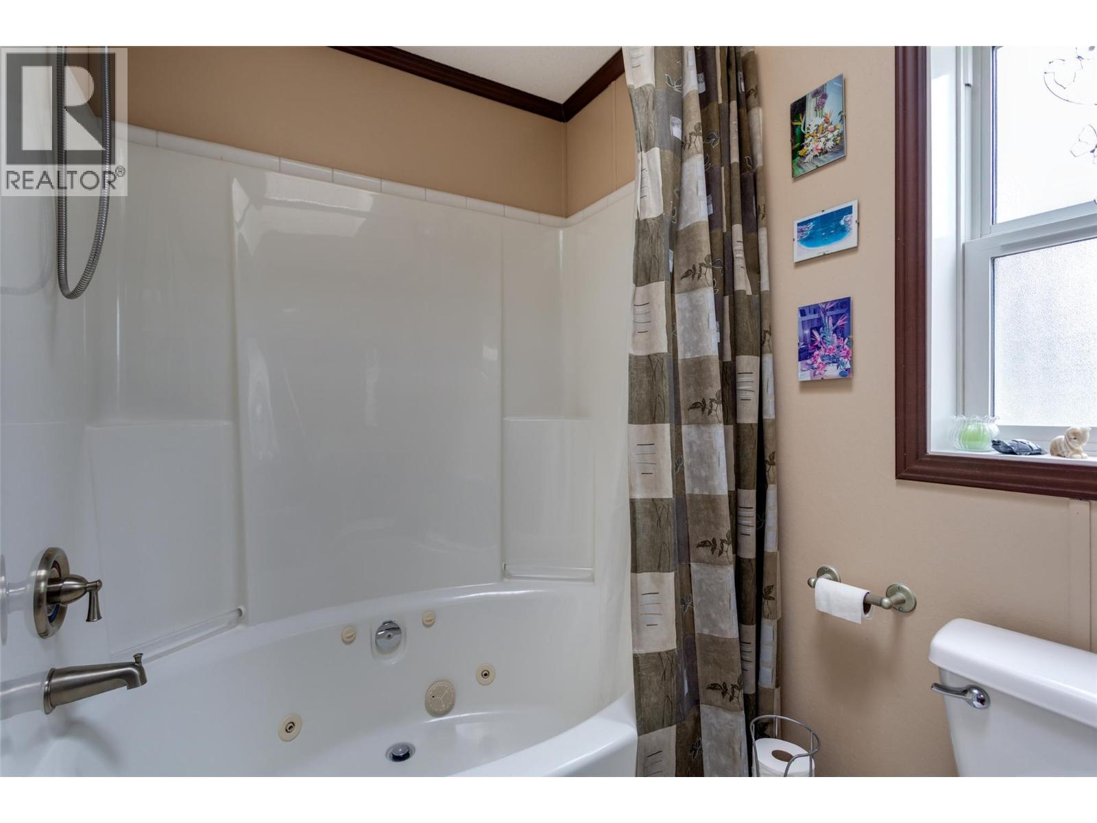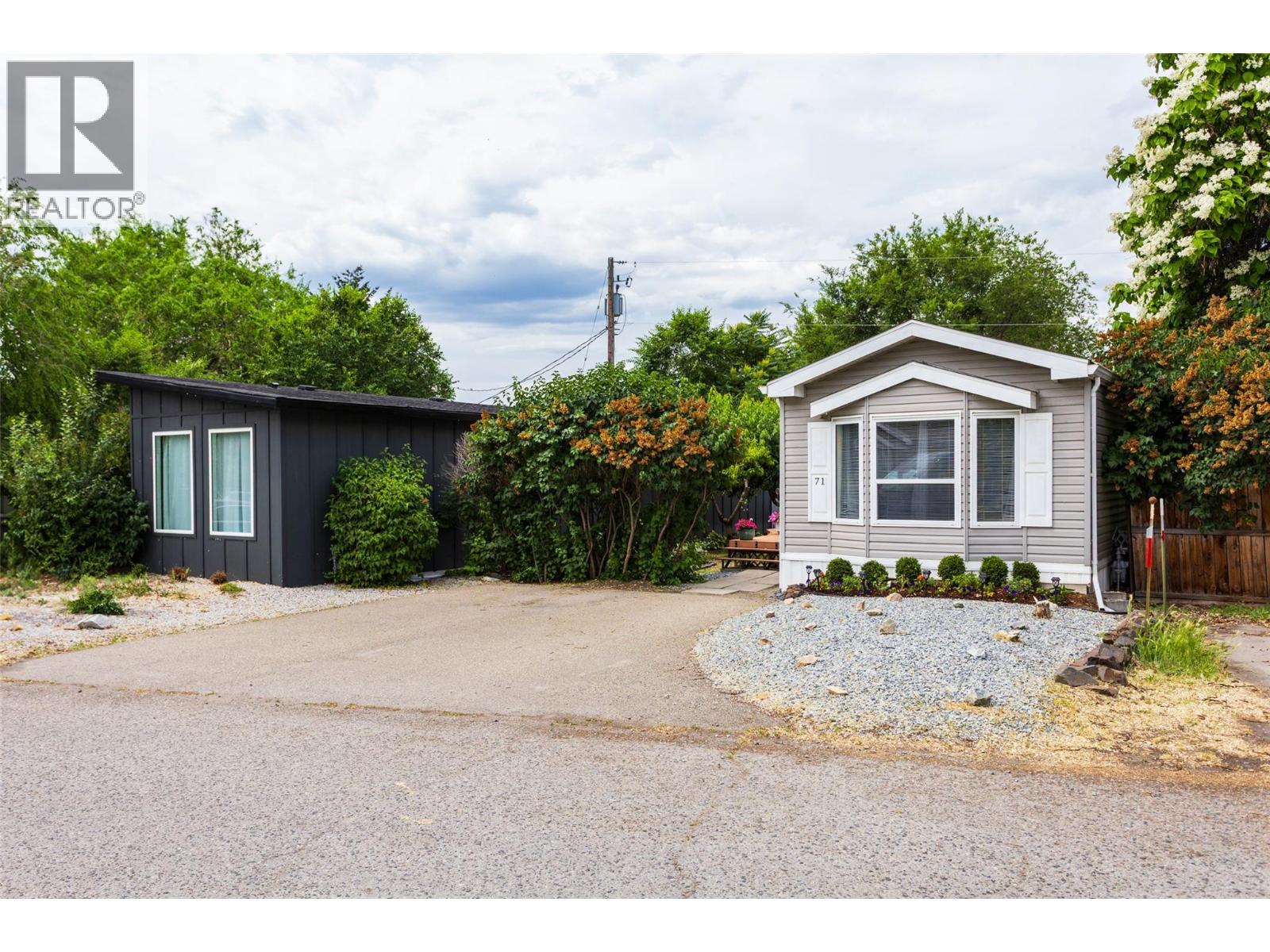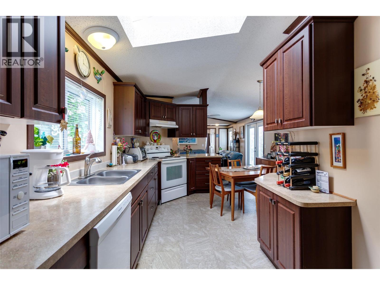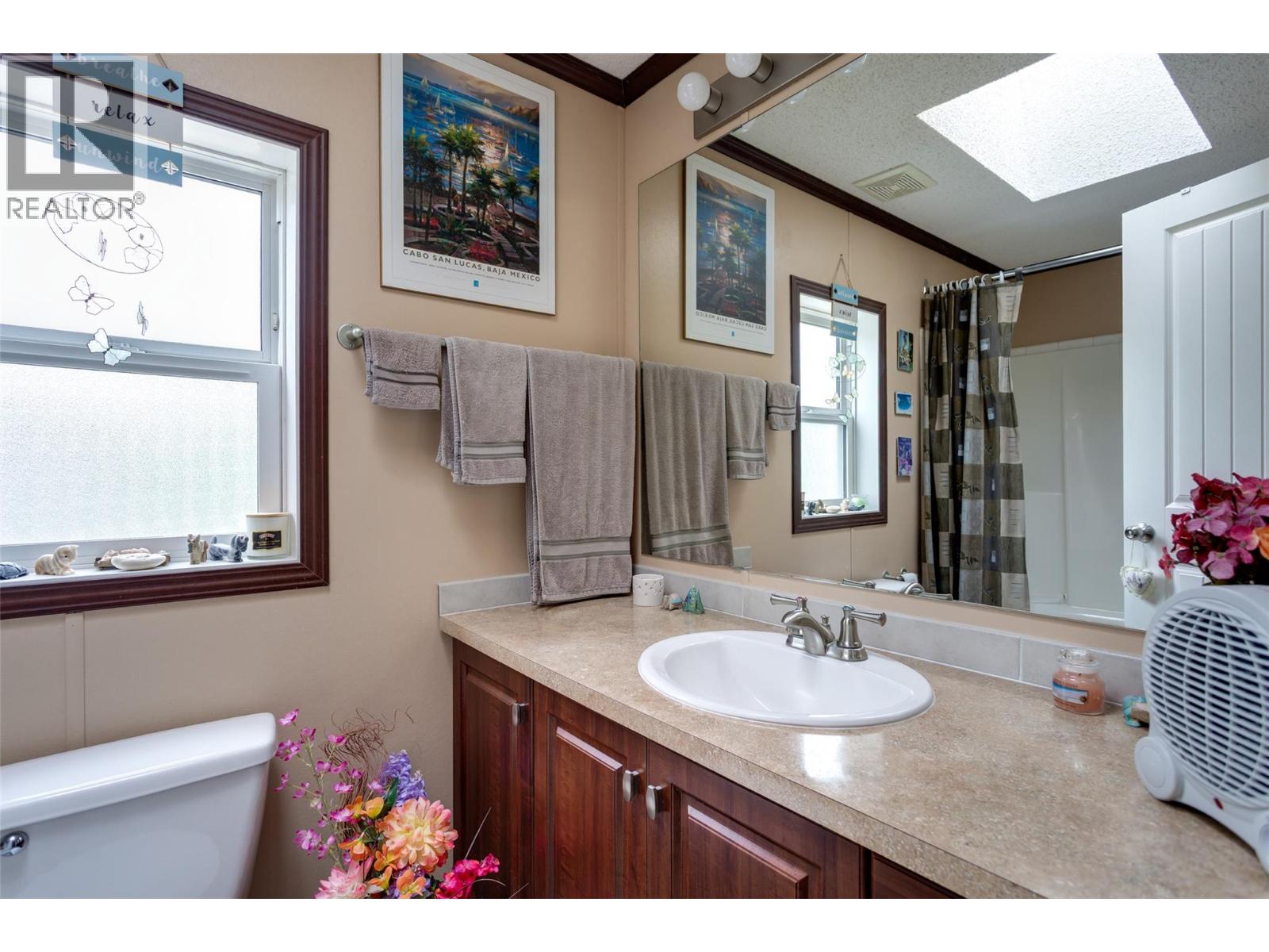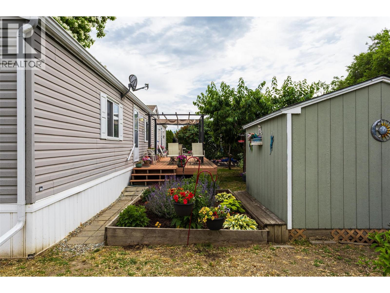 Dreaming of lakeside living without breaking the bank? Discover this spacious 2 bedroom/2 bathroom 2008 home in West Kelowna. Featuring a large living room, a well-appointed kitchen with ample storage, and an expansive outdoor deck perfect for enjoying the Okanagan lifestyle. The home offers a desirable split-bedroom layout for enhanced privacy and two skylights that fill the space with natural light and a jacuzzi bathtub located in the ensuite for ultimate relaxation. Recent upgrades include an updated hot water tank, dishwasher, superior vinyl planking flooring, installed leafguard, and fresh paint throughout. Enjoy walking proximity to beach access for those hot Okanagan days and evenings. A beautiful shed provides additional storage. The property boasts attractive landscaping with mature peach and cherry trees and a fenced yard. Gross annual taxes are $1272. Prospective buyers are encouraged to know their credit score prior to requesting a viewing (a score around 730 is typically required). Please note, while cats and small pets are welcome, dogs are not permitted. This is a must-see property. (id:58842)