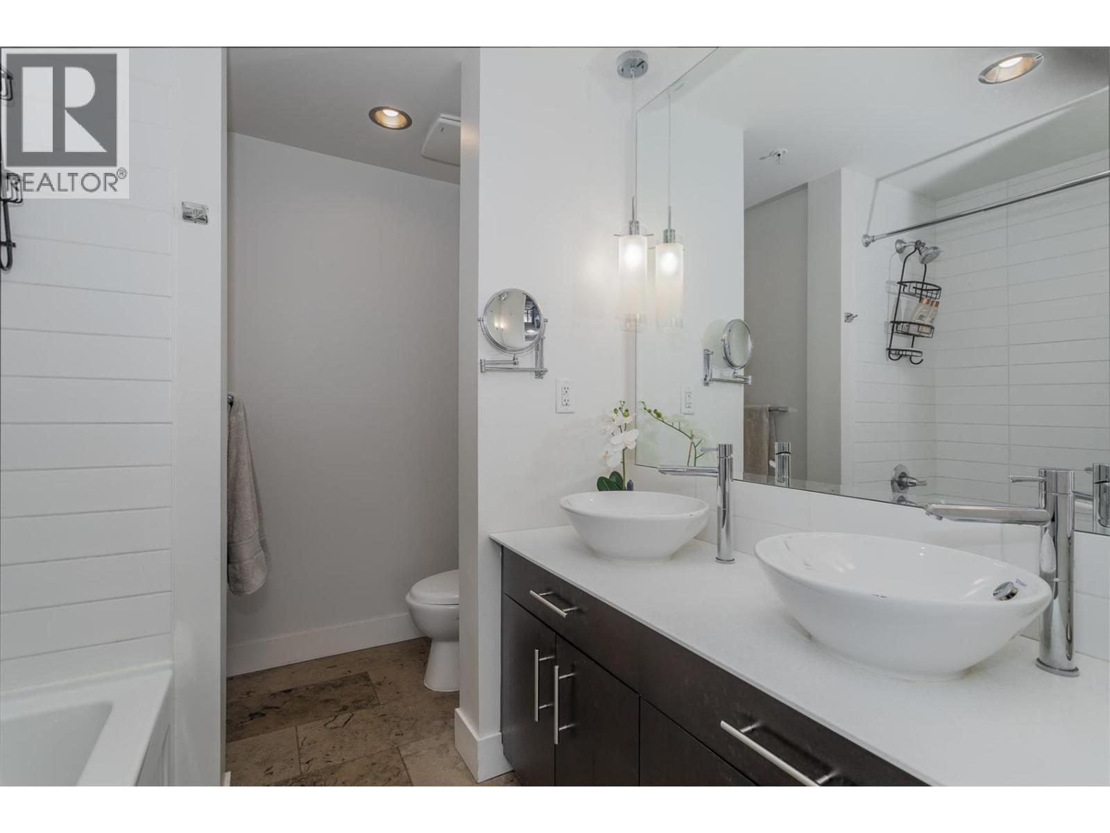 GRAND floor-to-ceiling windows with gorgeous views of Kelowna landscapes in a very convenient location! Luxurious 2 Bedrooms, 2 Baths N+E facing condo in the highly sought after concrete InVue building. Bright open concept 2 balconies with direct access from your Primary Bdrm, a perfect place to entertain and take in sunset views. The kitchen features high end stainless steel Fisher Paykel & Bosch appliances, Quartz countertops and an island, built in pantry and white tile backsplash. Master suite offers walk through closet, 5-pc ensuite, soaker tub, double sink & private deck. Classy 3-pc main bath, walk-in tile & glass shower. Health conscious? InVue offers steam rm, infrared sauna, HUGE equipped gym, yoga/pilates studio, hot tub, sun tanning deck. Amenities also include rooftop pool, BBQ area, dog wash stn, guest suites, conference & billiards rm. Steps to Orchard park mall, shops, restaurants and parks. And best of all, PRIME parking stall right in front of elevator entrance. (id:58842)