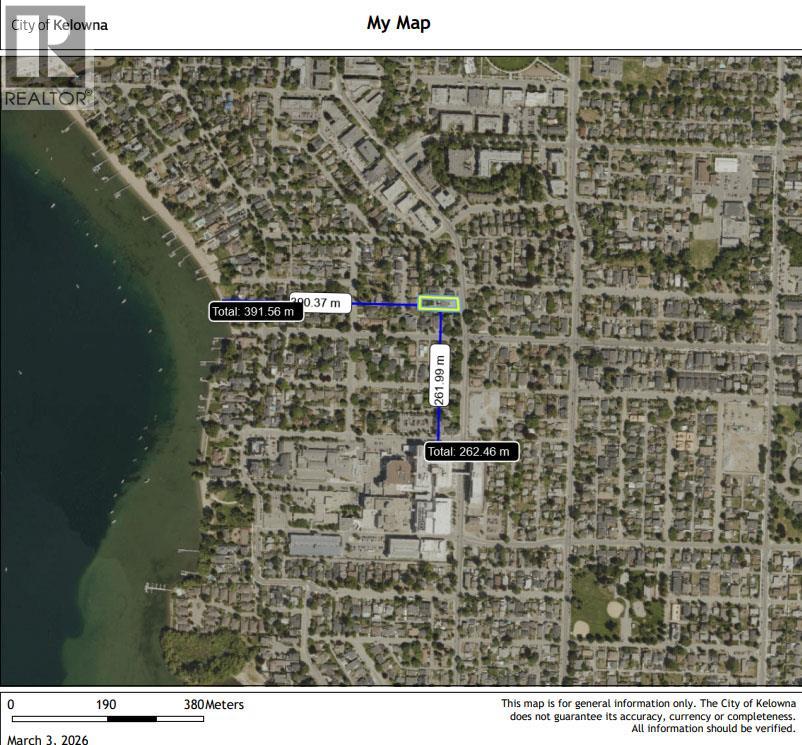 Developer and Investor Alert! Prime Transit-oriented Multi-family Development Site just 300 meters from Kelowna General Hospital. This rare 0.45-acre site is ideally located within the Hospital Transit Oriented Area, the property is zoned MF4 – Transit Oriented Areas with future land use designation Core Area – Health District (C-HTH). Zoning supports multi-unit residential development up to approximately 6 storeys with a base FAR of 2.5 and potential for bonus density, and is exempt from minimum parking requirements under the Zoning Bylaw, offering valuable flexibility for developers. Walking distance to beaches, City Park, Downtown, schools, and the Abbott Street Active Transportation Corridor, and only minutes to the South Pandosy Urban Centre, Okanagan College, major shopping centres, future UBCO Downtown Campus. This is a rare opportunity in a high-demand location with strong fundamentals and outstanding long-term growth potential! Measurements are approximate and should be independently verified. Buyers are responsible for confirming all information and conducting their own due diligence. (id:58842)