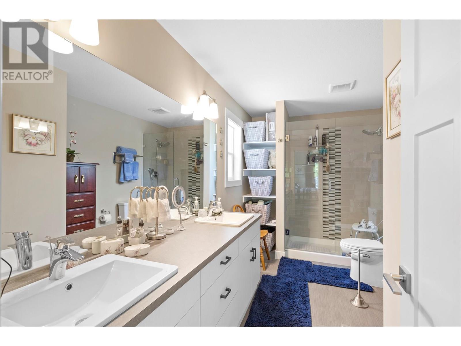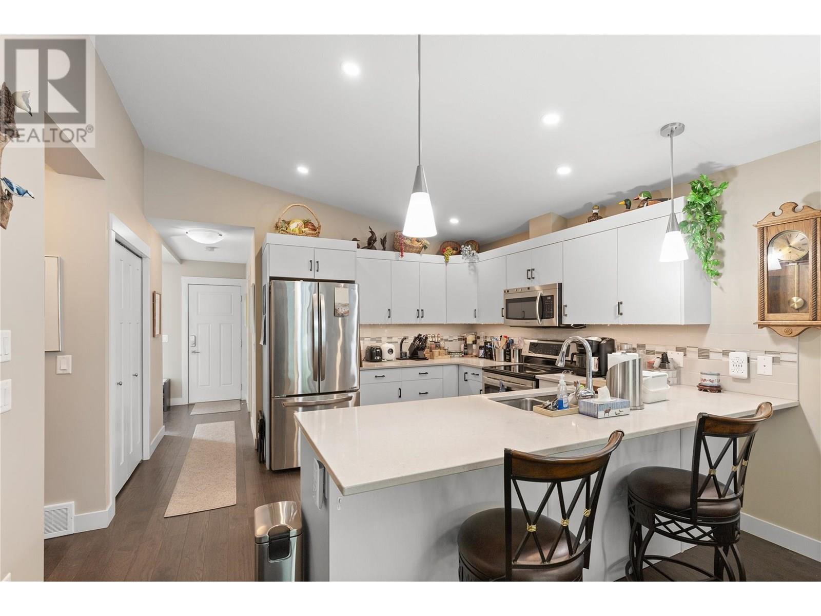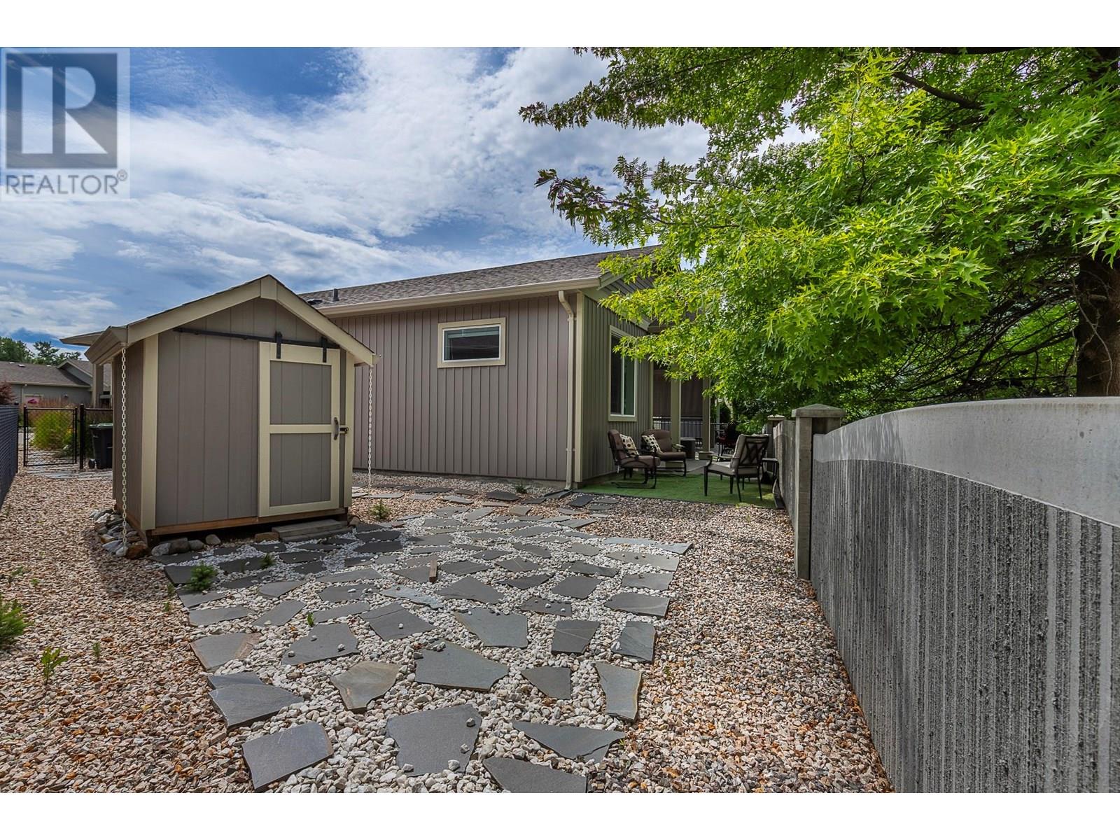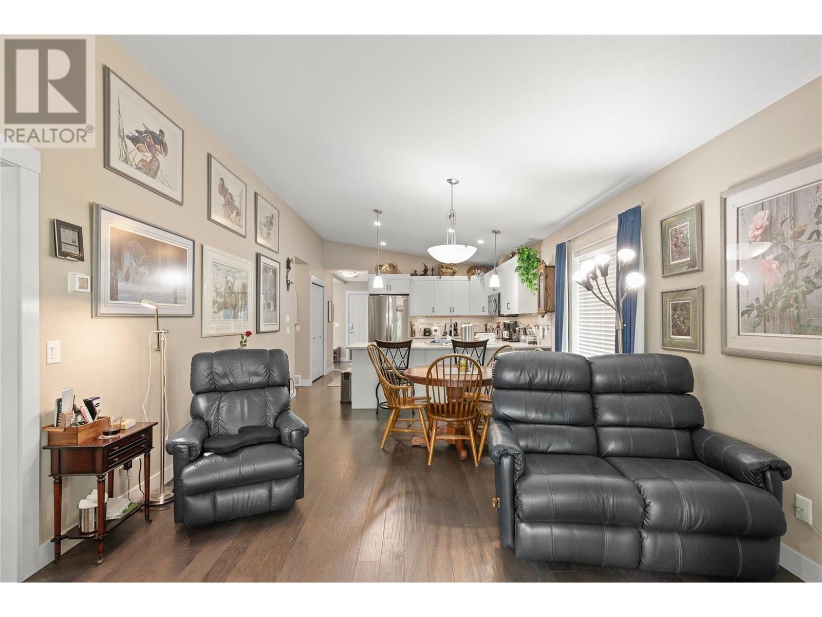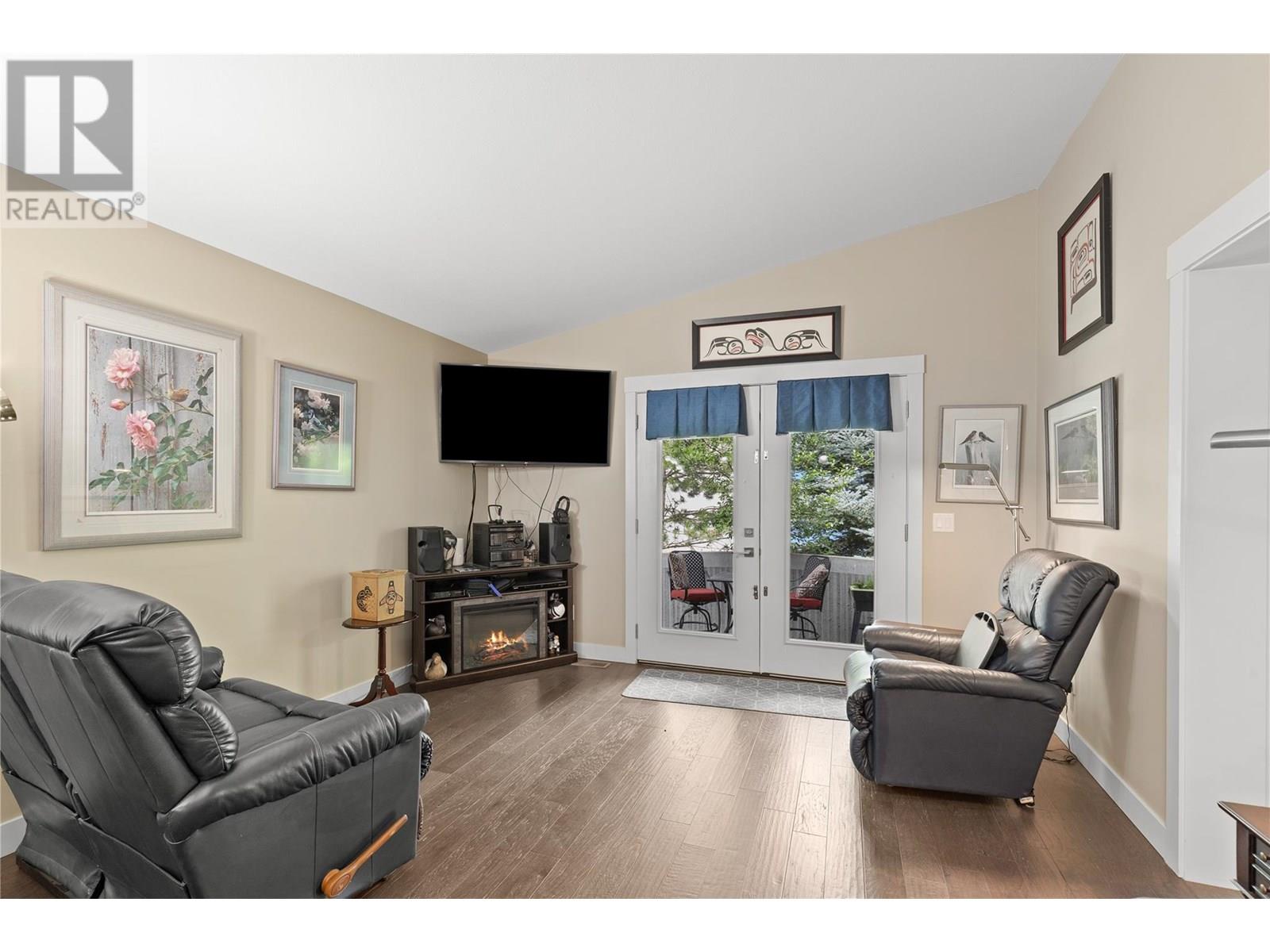 Welcome Home to Barnard’s Village. Stylish, Comfortable, and Move-In Ready! Discover modern living at its finest in this 2-bed, 2-bath manufactured home, located in the highly sought-after Barnard’s Village community. Thoughtfully designed with a blend of comfort and contemporary finishes incl. hardwood flooring, this home offers a spacious layout ideal for easy, low-maintenance living. The open-concept kitchen features upgraded cabinetry with pull-outs, quartz countertops, S/S appliances, and a convenient breakfast bar, perfect for casual dining and entertaining. The living room features a vaulted ceiling and flows seamlessly through a set of french doors to a very private north-facing patio, offering the ideal space to relax and enjoy the outdoors. The primary bedroom is a true retreat with a walk-in closet and ensuite featuring a walk-in shower and double vanity. A 2nd bedroom and full bath provide comfort and privacy for guests or family. Additional highlights include a double garage, and low-maintenance landscaping and detached garden / storage shed. The driveway and front concrete surfaces have all been refinished with a visually appealing and practical Polyguard finish. Located just steps away from north end shopping, restaurants, and amenities, this home offers the perfect balance of lifestyle and location. Whether downsizing, buying your first home or seeking affordable luxury in a vibrant community, this is the one you've been waiting for. Don’t miss your chance – book a showing today! (id:58842)