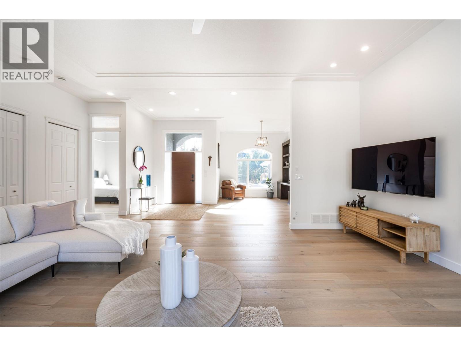 Tucked away on a private cul-de-sac backing onto protected parkland, this Dilworth Mountain Luxury Home retreat offers over 5,060 sq ft of refined living with rare privacy, elevated views, and seamless access to the heart of Kelowna. Just minutes from downtown, Mall, golf courses, Lillooet park this home delivers seclusion and central convenience. Soaring ceilings and timeless interior finishes highlight the open-concept main level, anchored by a gourmet island kitchen, and an exceptional 1,000 sq ft patio—crafted for true Okanagan living. The main-level primary suite features dramatic ceiling height and a spa-inspired ensuite, complemented by two additional bedrooms connected by a Jack-and-Jill bathroom. The walkout lower level is designed for entertaining, complete with a massive rec room, dedicated theatre, and a spacious guest bedroom. A fully self-contained SUITE with in-floor heating, private driveway, and separate garage offers outstanding flexibility for extended family or premium rental potential. TRIPLE GARAGE, shed, an electric vehicle charging station, Lennox high-efficiency furnace, on-demand hot water system, and humidifier. New engineering hardwood floor throughout the main level, designed Norelco kitchen cabinets (2025), new windows and FloorX2 Fusion+Nano garage flooring system . Over $190,000 on upgrades in the past 4 years listed. Enjoy distant city lights and peek-a-boo lake views—this home has it all as Dilworth living at its finest. (id:58842)