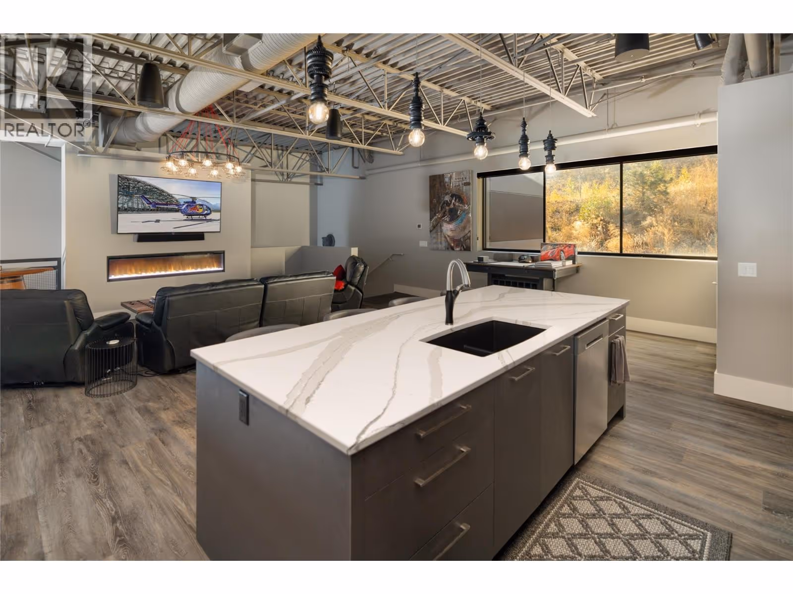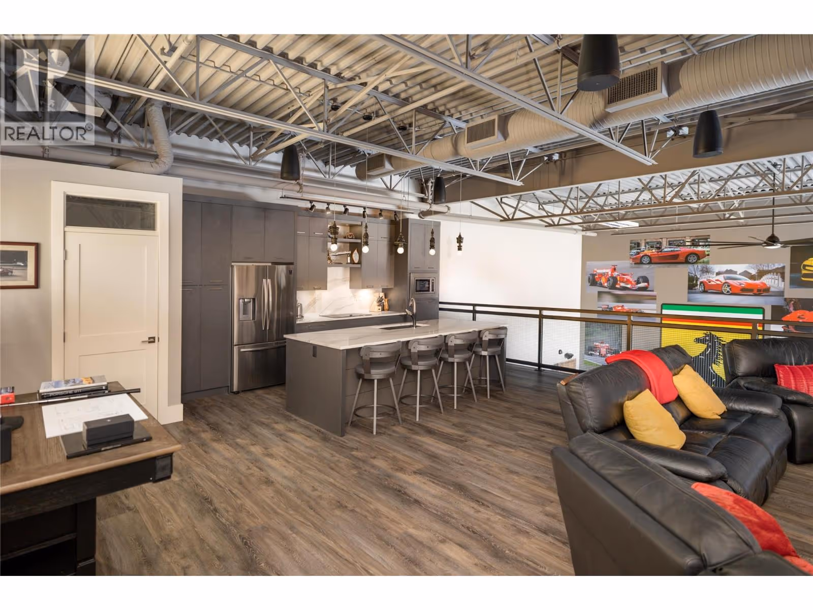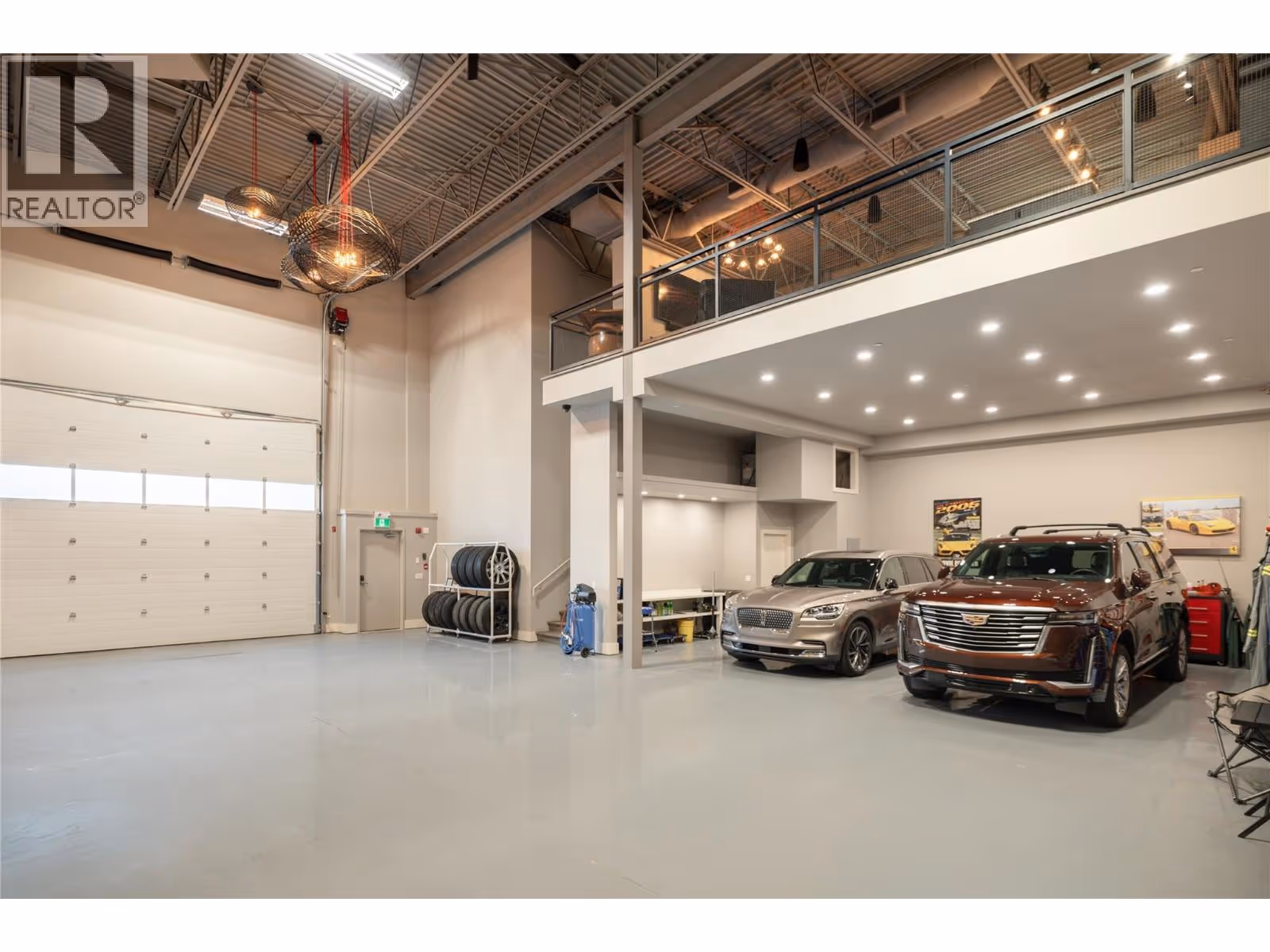 Welcome to The Vaults – Kelowna’s Premier Lifestyle Storage Condos! Here is an exceptional opportunity to own a secured, private lifestyle storage condo that redefines luxury and functionality. Designed for collectors, hobbyists, and professionals seeking a space as unique as their passions, this unit delivers an extraordinary combination of form and purpose. The massive, 2765 square foot space features an expansive main level with soaring 27-foot ceilings, a heated, fully enclosed garage with a full bathroom, and ample space for multiple vehicles—including a large RV. Concrete construction, secure entry, and 24/7 owner access ensure unmatched privacy and peace of mind. Above, a spacious mezzanine overlooks the gallery-style floor below and includes a modern kitchen, powder room, and generous lounge area with a fireplace—ideal for entertaining, relaxing, or working in complete comfort. The open design and quality finishes elevate this versatile retreat beyond expectations. Complete with a dedicated unit heater, advanced air detection system, and state-of-the-art fire suppression, every detail supports convenience and security. Located near Kelowna International Airport, The Vaults offer discerning buyers an exclusive opportunity to own more than storage—it’s a lifestyle. (id:58842)