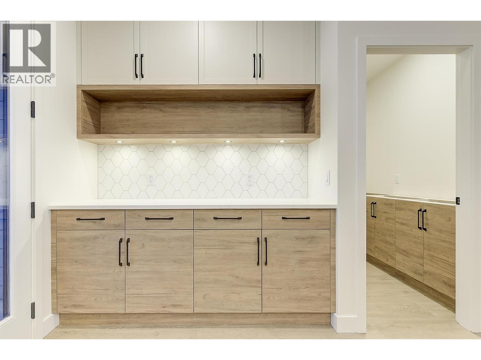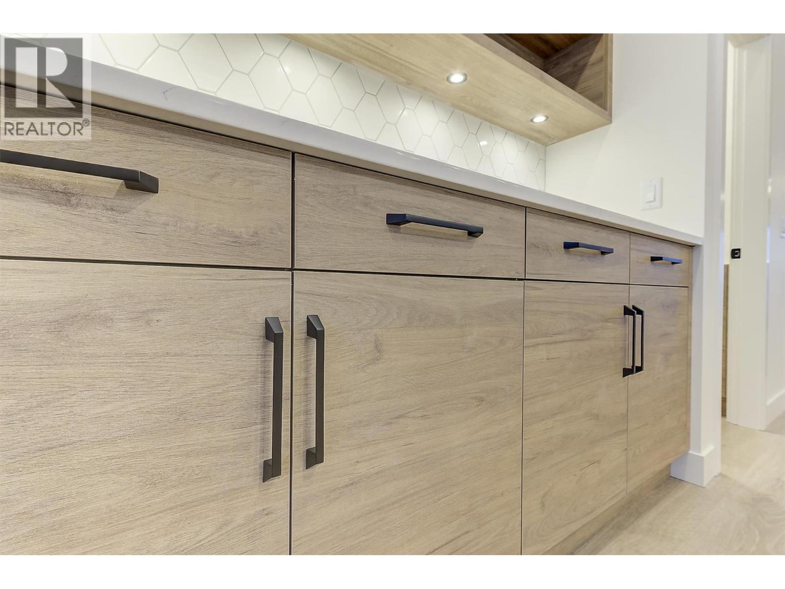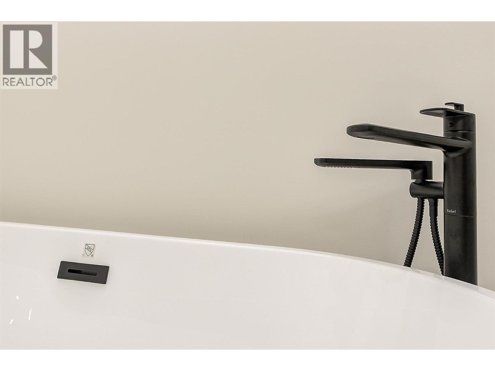 Come experience this quality Knorr Enterprises LTD. home on Kirschner Mountain with mountain & valley views. This stylish home has 5 bedrooms + den & 4 bathrooms. The covered veranda opens to an entryway & ground floor den w ensuite. A bright 2-bedroom Legal Suite w separate laundry, appliances & covered patio. The main floor offers a bright & open living/dining room w linear fireplace, ""tray"" ceiling w custom lighting & large windows/sliding door to take in the views. There is a large covered deck w wood ceiling. The kitchen offers Quartz counters, two-tone cabinets, an oversized island, a butler pantry, plus a kitchen-bar wall area + stainless appliances & gas range & a second covered deck w gas line. 2 carpeted bedrooms, linen closet & 4-piece main bathroom, a full laundry room w cupboards & sink on this level. The primary bedroom is bright & open w large windows for the views. A windowed walk-in closet & a 5-piece ensuite w custom tiled shower, heated floors, double vanity sink, quartz counter & stand-alone tub make up the primary oasis. The home offers an oversized double garage complete w utility room. The EV charger & central vacuum are both roughed-in. The home comes w Hardie board & brick exterior, landscaping, quality laminate floors throughout & carpet in the main home bedrooms & stairs. Hot water on demand, 200 amps CATT 5, lots of storage. Backs onto a park & is close to Black Mountain Elementary & BM Golf Course. Price +GST. Make this beautiful house your home. (id:58842)