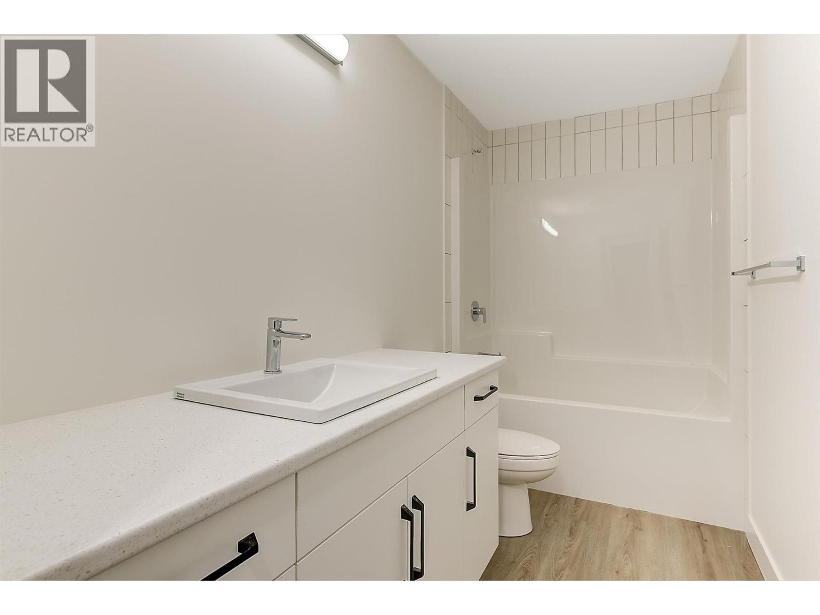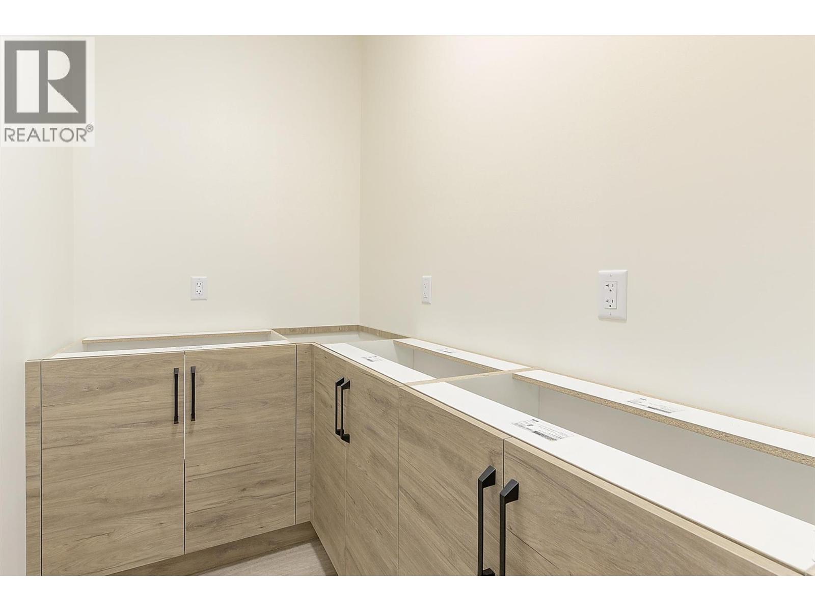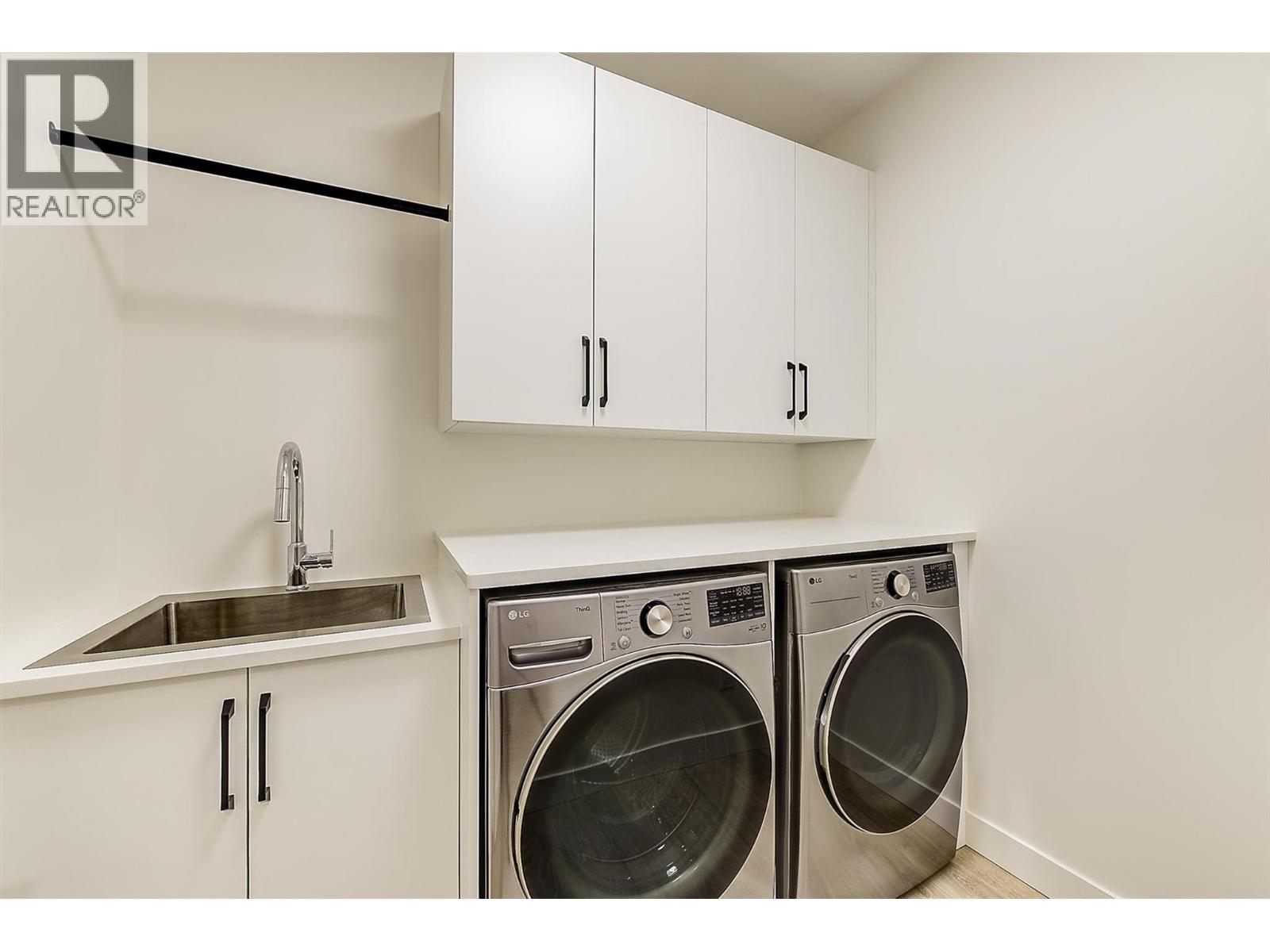 Come experience this quality Knorr Enterprises LTD. home on Kirschner Mountain with mountain & valley views. This stylish home has 5 bedrooms + den & 4 bathrooms. The covered veranda opens to an entryway & ground floor den w ensuite. A bright 2-bedroom Legal Suite w separate laundry, appliances & covered patio. The main floor offers a bright & open living/dining room w linear fireplace, ""tray"" ceiling w custom lighting & large windows/sliding door to take in the views. There is a large covered deck w wood ceiling. The kitchen offers Quartz counters, two-tone cabinets, an oversized island, a butler pantry, plus a kitchen-bar wall area + stainless appliances & gas range & a second covered deck w gas line. 2 carpeted bedrooms, linen closet & 4-piece main bathroom, a full laundry room w cupboards & sink on this level. The primary bedroom is bright & open w large windows for the views. A windowed walk-in closet & a 5-piece ensuite w custom tiled shower, heated floors, double vanity sink, quartz counter & stand-alone tub make up the primary oasis. The home offers an oversized double garage complete w utility room. The EV charger & central vacuum are both roughed-in. The home comes w Hardie board & brick exterior, landscaping, quality laminate floors throughout & carpet in the main home bedrooms & stairs. Hot water on demand, 200 amps CATT 5, lots of storage. Backs onto a park & is close to Black Mountain Elementary & BM Golf Course. Price +GST. Make this beautiful house your home. (id:58842)
