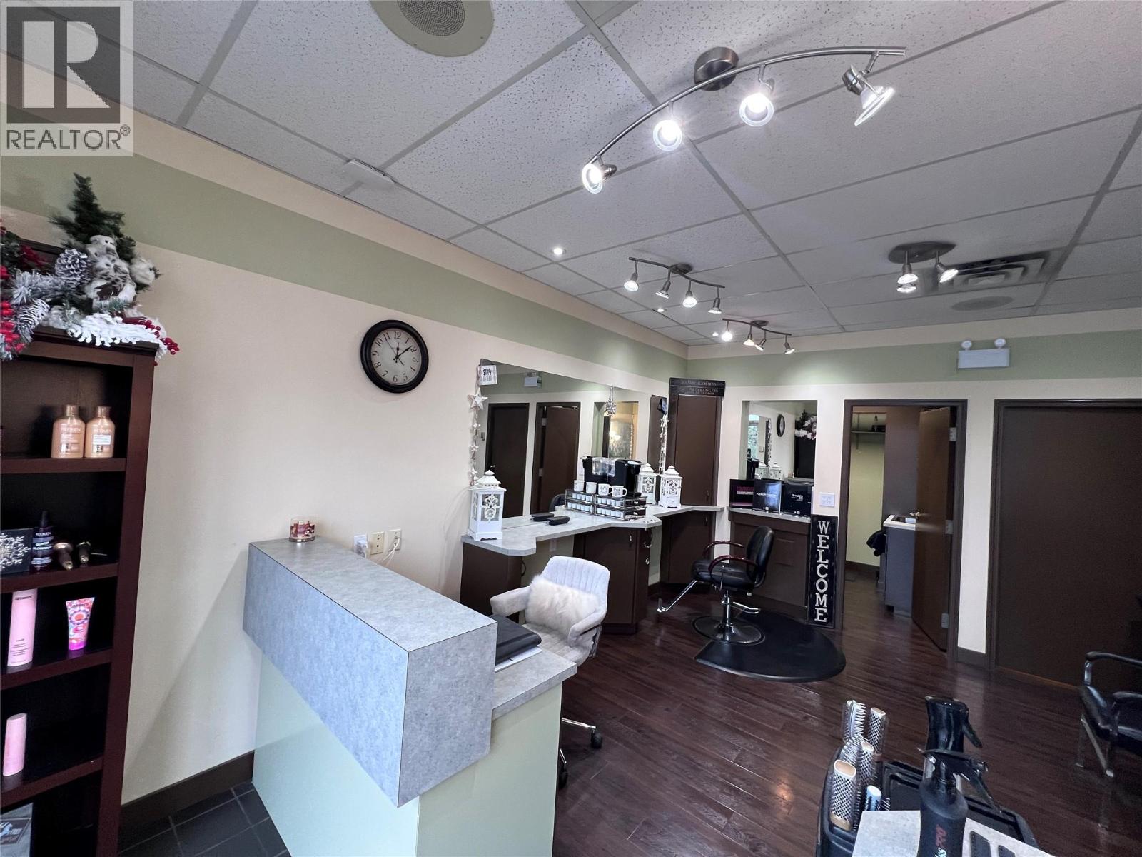 Situated in the well-known Shaughnessy Corner building, this corner unit offers exceptional visibility along one of Kelowna’s busiest stretches. Large street-level windows provide steady natural light throughout the day and showcase the space to both vehicle and pedestrian traffic on Springfield Road. Currently set up as a hair studio, the unit features approximately 442 square feet of well-kept, functional space. The existing improvements create an easy transition for salon or wellness uses, while also offering flexibility for a variety of small business concepts. With strong exposure, convenient access, and a professional presence on a prominent corner, this is an opportunity you won’t want to miss. *Marketed List Price is estimated Gross Monthly Total. Lease will be defined as a NNN Lease. (id:58842)