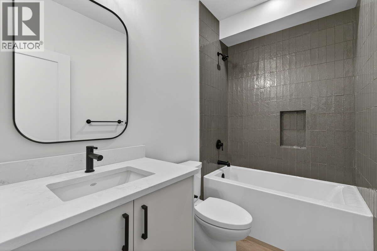 *** For more information, please click Brochure button. *** Welcome to 2125 Montenegro Drive—an exceptionally designed walk-out home in Kirschner Mountain, one of Kelowna’s emerging hillside communities surrounded by nature and scenic trails. Built by Stability Management and move-in ready, this brand-new residence blends warm, modern design with thoughtful functionality. The main level is bright and open, anchored by a beautifully curated kitchen with natural wood cabinetry, quartz countertops, oversized island, gas range, and a full-height stone backsplash. Matte black accents and custom detailing add contrast, while large windows bring in natural light. The living area is centred around a gas fireplace with herringbone tile interior and wood mantle. With 4 bedrooms and 4 bathrooms across 2,928 sq ft, the layout offers excellent flexibility. The primary suite features a spa-inspired ensuite with freestanding tub and glass shower. The lower level includes an additional bedroom, bathroom, and functional living space; plus a 1-bedroom legal suite with private entrance, luxurious finishes, separate laundry, heating, and A/C. Complete with a bright double garage, forced air heating, and central air, this home offers modern comfort just minutes from schools, parks, golf, UBCO, and the airport. GST applicable. (id:58842)