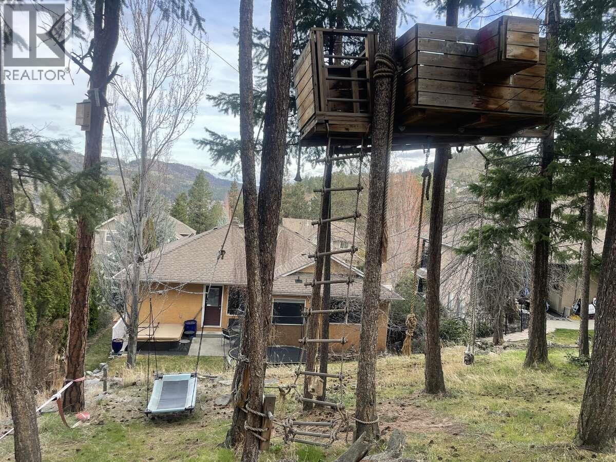 *** For more information, please click Brochure button. *** Nestled in the sought-after Dilworth Mountain community—one of Kelowna’s most desirable and coveted neighborhoods. Set on a large, private lot and backing onto protected greenspace, this home offers a tranquil forest setting with unmatched privacy and direct access to nature right from your backyard. Designed with both comfort and entertaining in mind, the bright main floor features an open-concept layout filled with natural light. The spacious kitchen is the heart of the home, complete with a large island, pullout cabinetry and ample counter space. The inviting living room is anchored by a cozy gas fireplace, creating the perfect space to gather with family and friends. The primary suite is a peaceful retreat, offering a walk-in closet, a beautifully appointed 4-piece ensuite with both tub and shower, and serene backyard views—all in heavenly quiet surroundings. With 5 bedrooms, 3 bathrooms, and a dedicated office, this home offers a comfortable family layout with room for everyone. The walkout basement is currently set up for a home-based business, adding flexibility and opportunity. Step outside to an expansive, tiered backyard designed for both play and relaxation. Kids will love the private yard featuring a zipline, treehouse, large swing, rope swing, gymnastic rings, gymnastics bar, trampoline, and slackline—while parents can unwind in the hot tub or enjoy the peaceful patio setting. (id:58842)