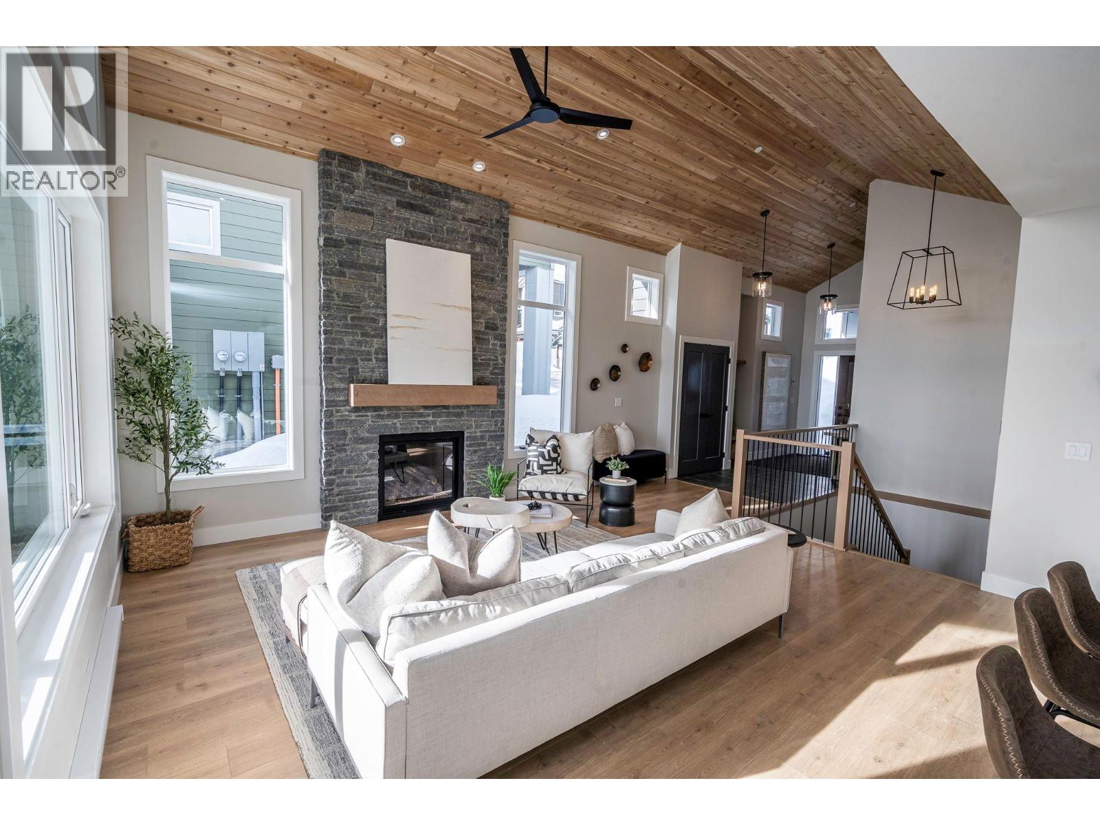 LAST REMAINING UNIT - DON'T MISS YOUR CHANCE!! This stunning, custom-designed home sits on a quiet cul-de-sac and showcase breathtaking, unobstructed views of the Monashee Mountains. Inside, you’ll love the open, thoughtful layout and high-end finishes throughout. The main level features a sleek chef’s kitchen, a spacious living room with vaulted cedar ceilings and stone fireplace, a dining area, and access to the covered deck with with gas BBQ hook ups.. The next level below offers three bedrooms, including a primary suite with 4-piece ensuite and walk-in closet, plus a full bathroom and laundry. The walkout basement expands the living space with a second primary suite, a den/flex room, large rec room with wet bar and fireplace, an additional full bathroom, and a private patio featuring an INCLUDED hot tub - a perfect place to unwind after a day on the slopes. With low strata fees, no rental restrictions, allowance for 2 pets, a double garage, and all appliances included, this is the ultimate mountain retreat or income property. This home is now fully complete and ready for immediate occupancy, so you can enjoy the remainder of the ski season at beautiful Big White! (id:58842)