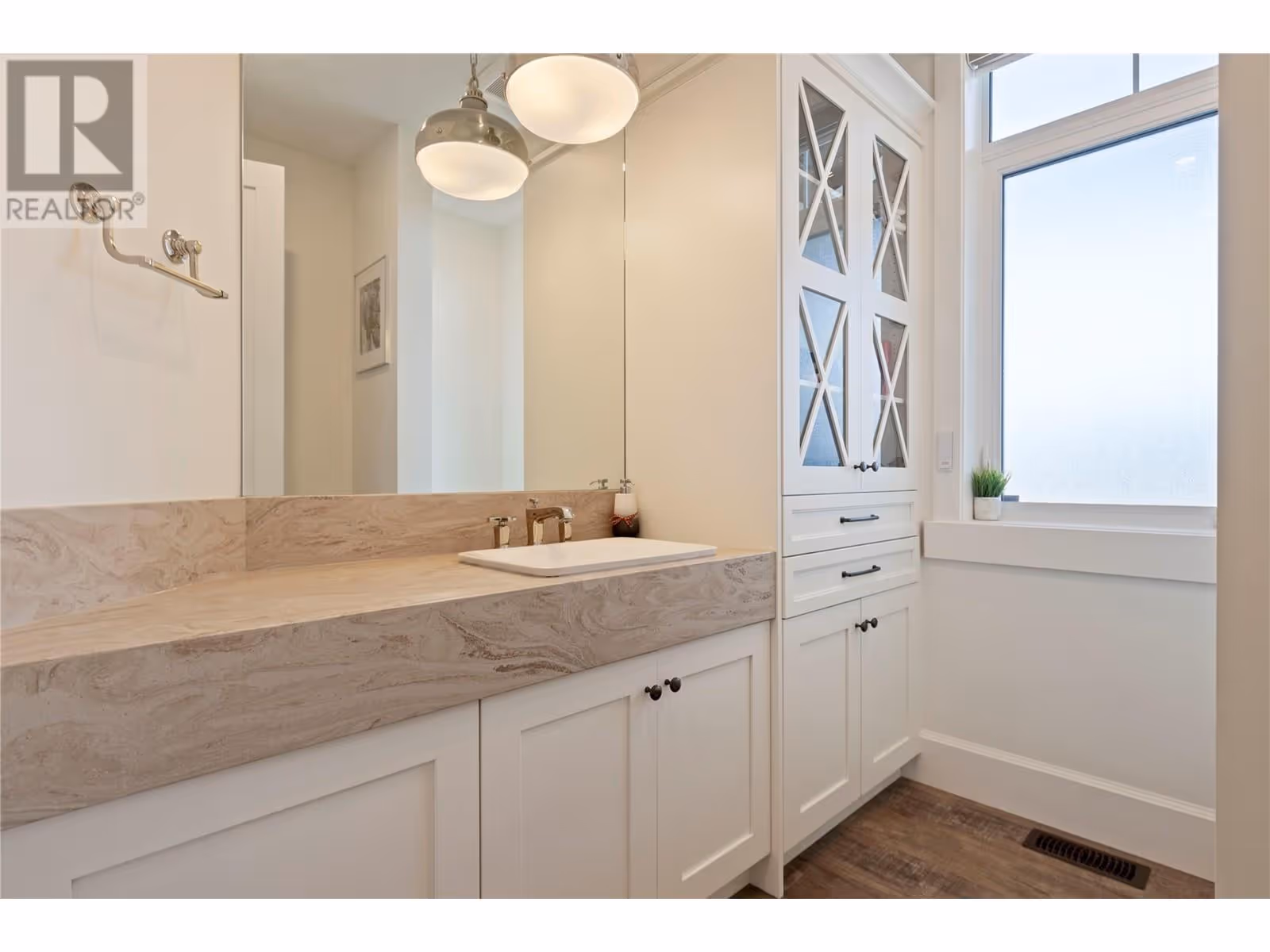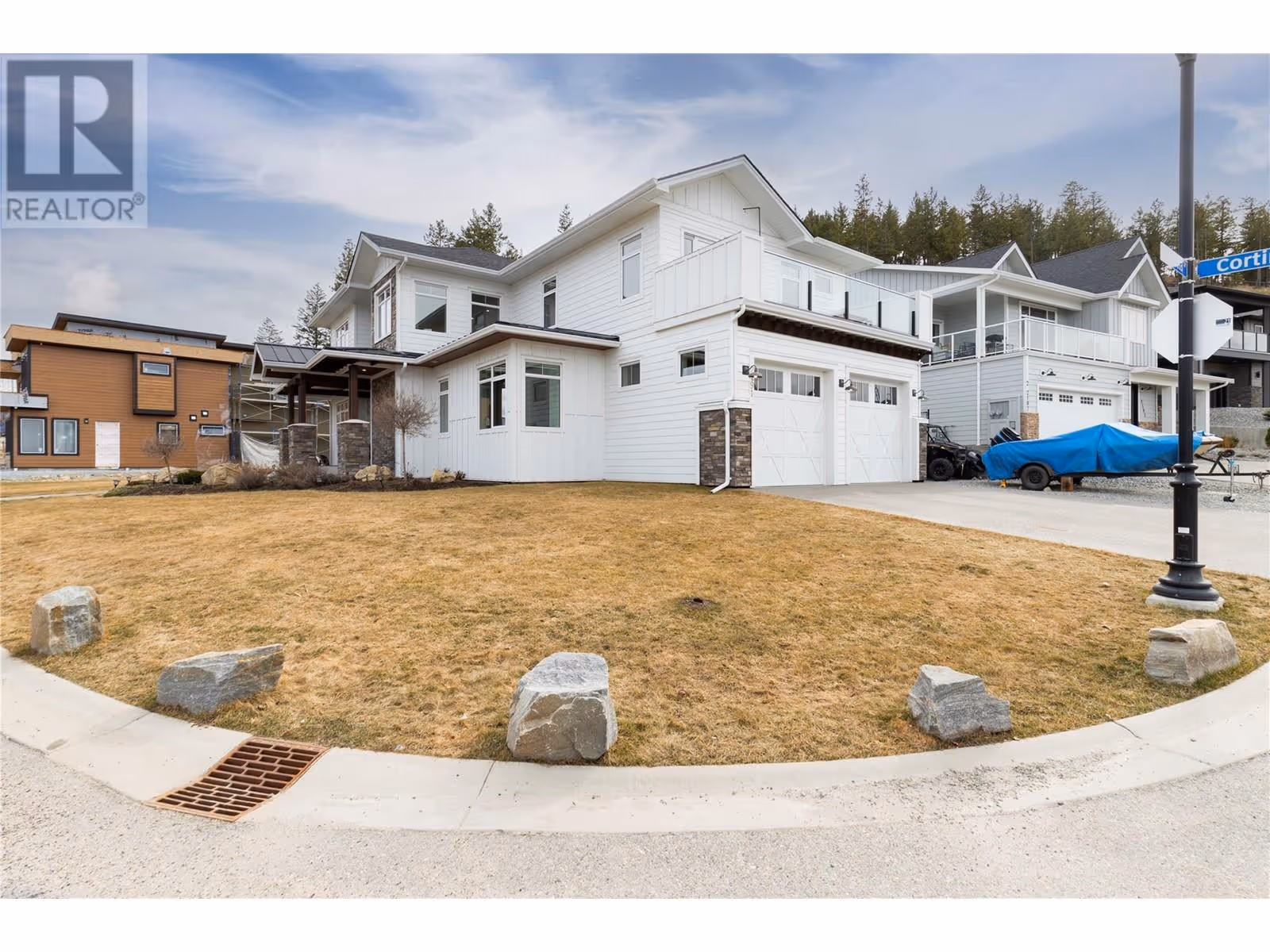 This modern farmhouse-inspired luxury home is a stunning showcase of craftsmanship & attention to detail. Custom millwork & premium finishes blend seamlessly with its welcoming design, creating an elegant and inviting living space. The grand foyer opens to a spacious layout designed for effortless entertaining. At the heart of the home, this beautiful kitchen features high-end appliances, a striking quartz island, & a fully-equipped prep kitchen. The dining & living areas flow beautifully, highlighted by custom cabinetry, shiplap ceilings, & a cozy fireplace, setting a soft yet sophisticated ambiance.The outdoor space offers a private retreat with a luxurious hot tub & the potential for a pool. On the main floor, you’ll find a versatile office or den, a bathroom, & a mudroom with a convenient dog wash. A stunning two-story staircase, with multiple bright windows showcasing breathtaking mountain views, leads to the upper level. The primary suite offers a serene lake-view balcony, a spa-like ensuite, & a spacious wardrobe room with easy access to the well-equipped laundry room. Two additional bedrooms share a functional Jack-&-Jill bathroom, completing the thoughtful upper level layout. This net-zero home generates as much energy as it consumes. A former PNE Prize home, it’s situated in a friendly neighbourhood on a large corner lot close to schools, trails, & just minutes from the Kelowna International Airport. Truly, a home that promises to inspire & impress! (id:58842)