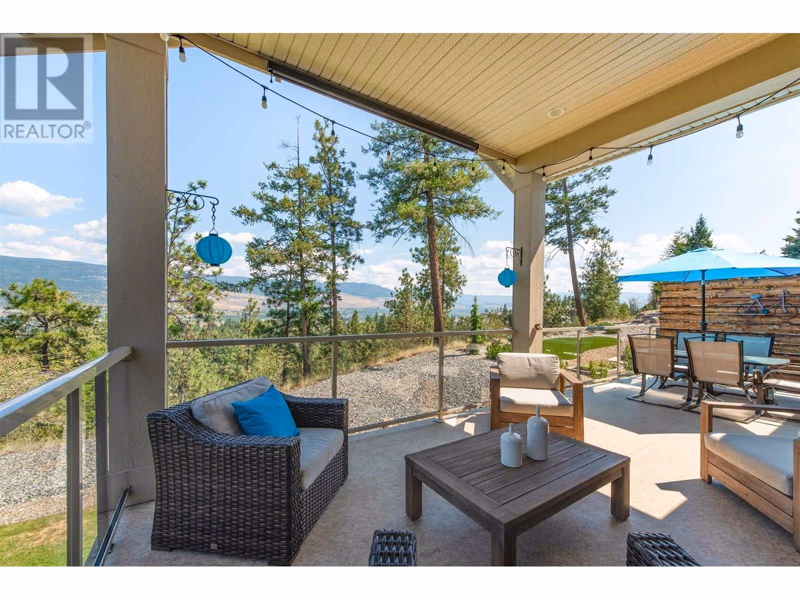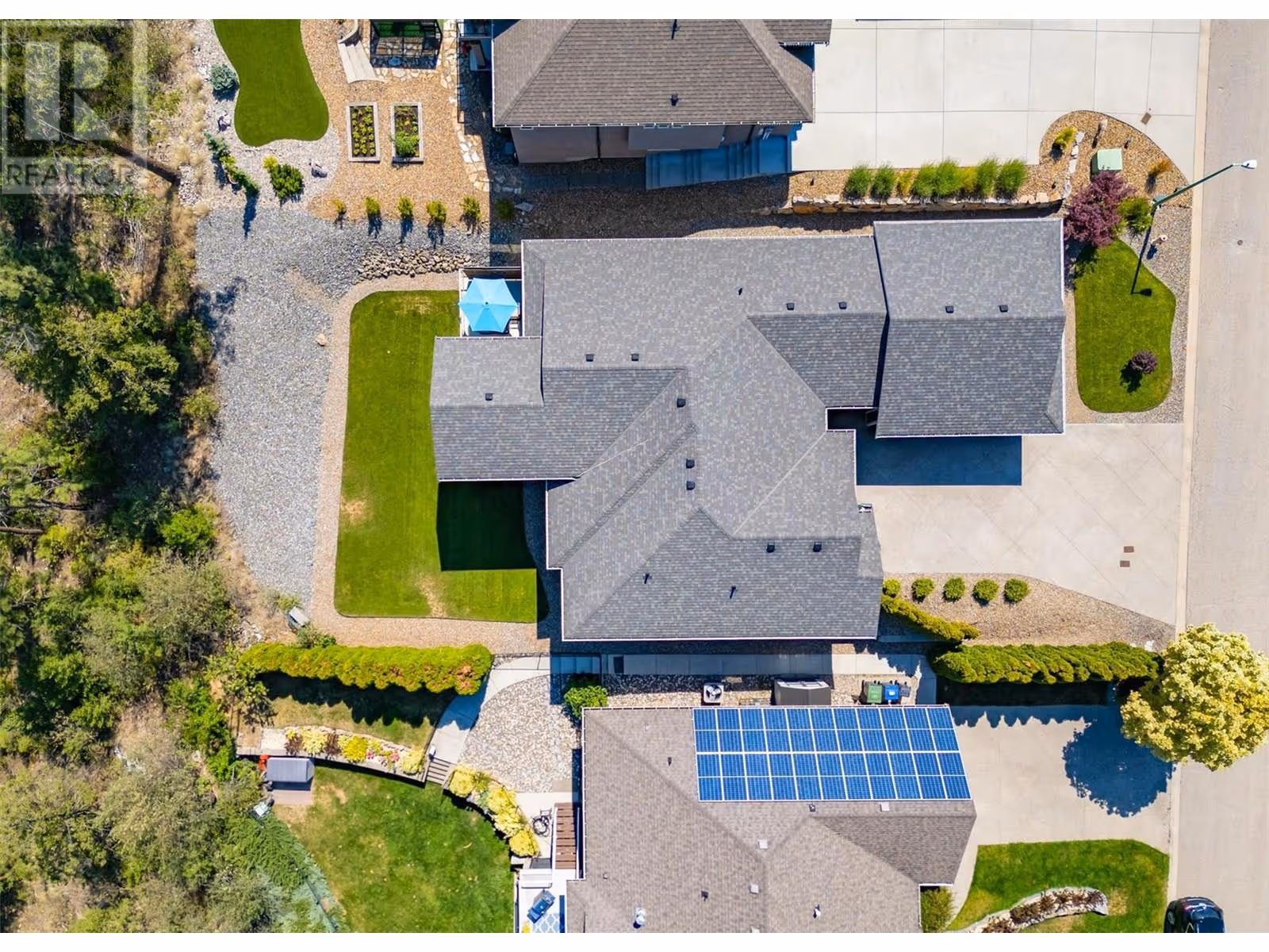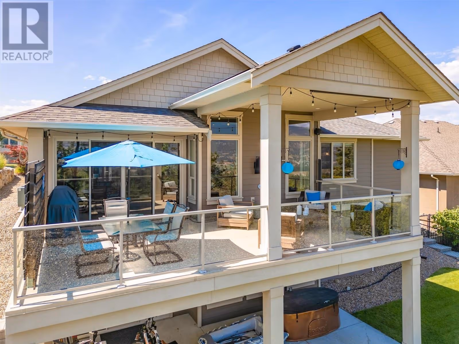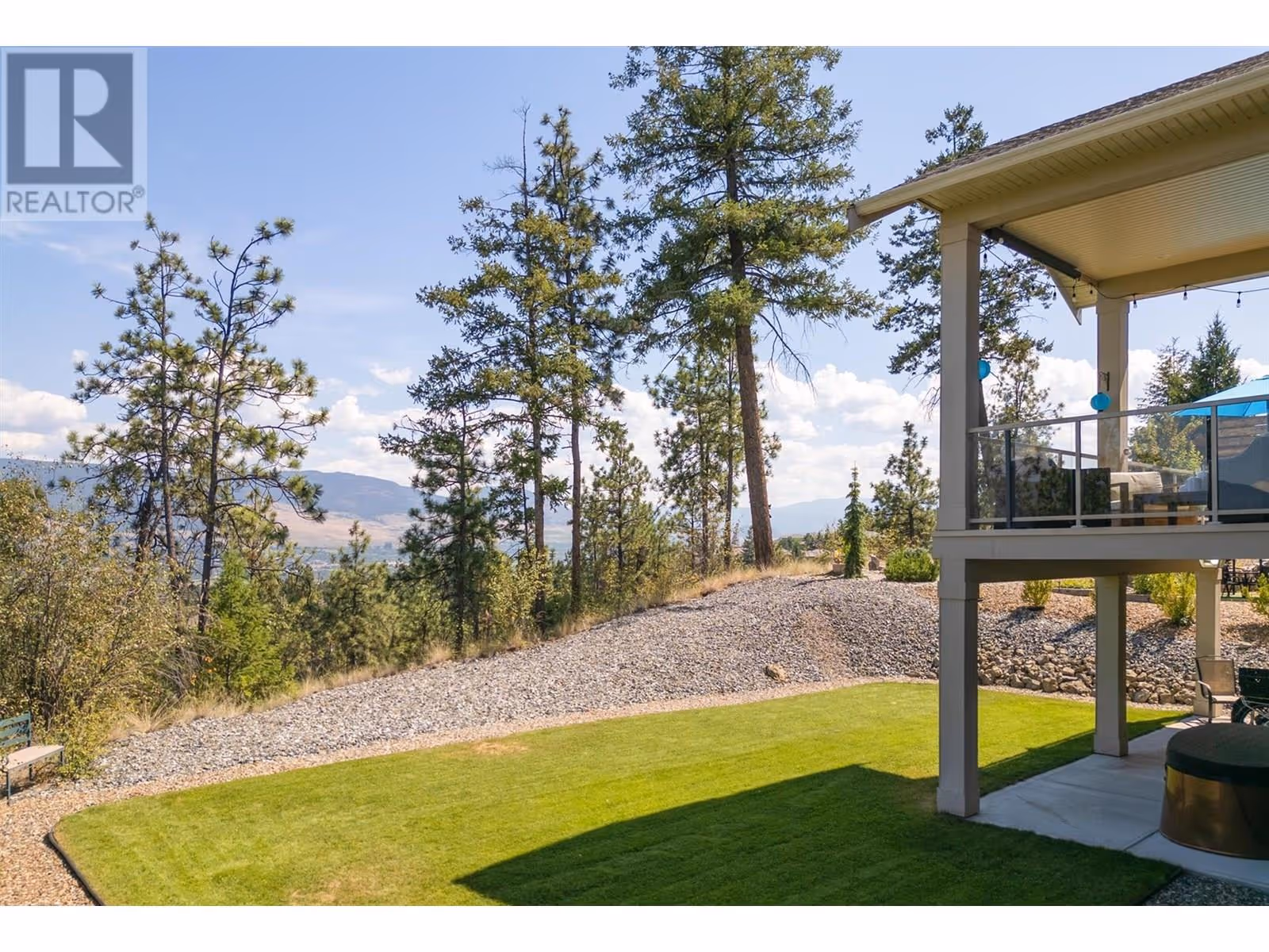 Welcome to The Ridge at Quail, one of Kelowna’s most sought-after golf course communities. This contemporary walkout rancher is perched above the 12th fairway and offers privacy, luxury and fabulous views. Expansive windows and double sliding doors allow a seamless connection to the outdoors. The half covered, half open upper deck, features Bose outdoor speakers, a tv and a gas hookup making it perfect for effortless entertaining. The main level boasts high ceilings, engineered hickory hardwood floors and thoughtful lighting throughout, with in-ceiling speakers in the living room, primary bdrm, ensuite, and lower-level bonus room. The kitchen is equipped with a gas/electric combo range. All 3 bathrooms have heated, programmable tile floors. The primary ensuite features a beautiful tile and glass walk-in shower. The lower-level walkout has abundant natural light, highlighted by picture windows and a sliding patio door that opens onto a covered deck. The lower level is ideal as a private retreat for guests with 2 additional bdrms, a full bathroom and a spacious bonus/family room. The oversized double garage accommodates 4 vehicles with room for up to 6 cars on the aggregate driveway. A full irrigation system and remote HVAC control round out the smart, efficient features of this home. Only minutes from the Kelowna Int'l Airport, UBCO and easy access to Lake Country or downtown! This is an ideal retreat for those seeking luxury living with a low-maintenance lifestyle! (id:58842)