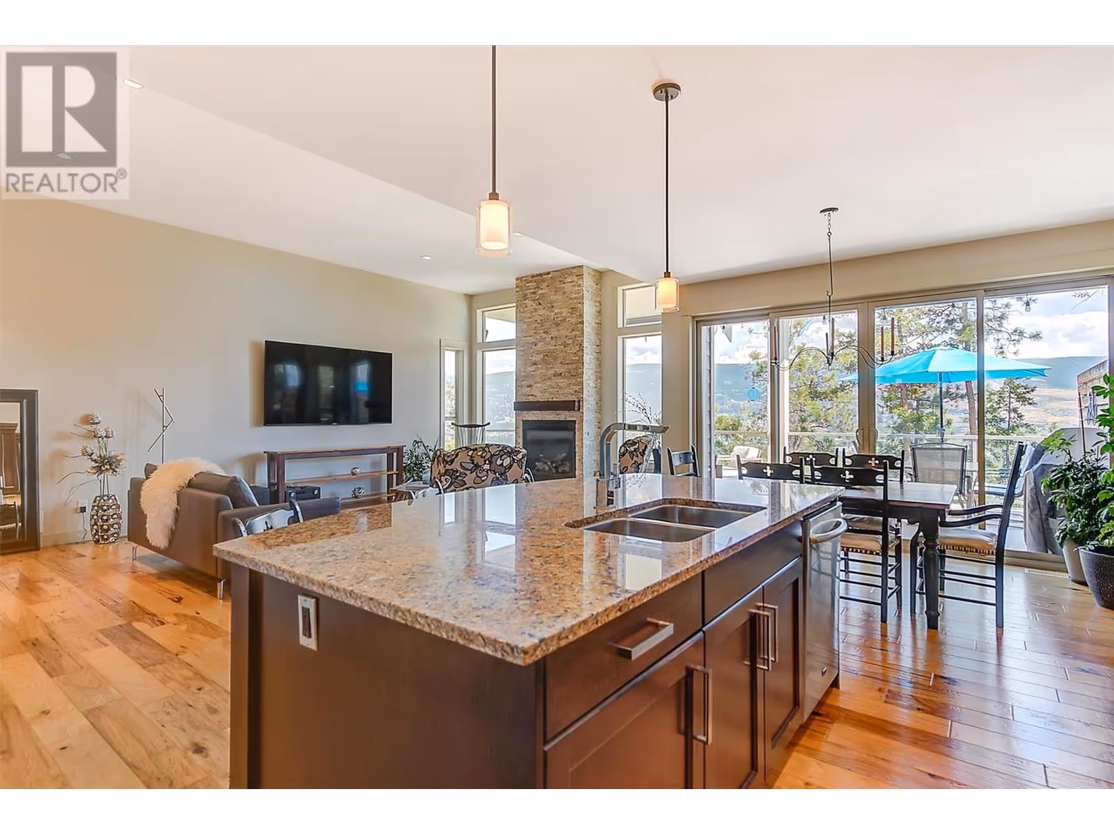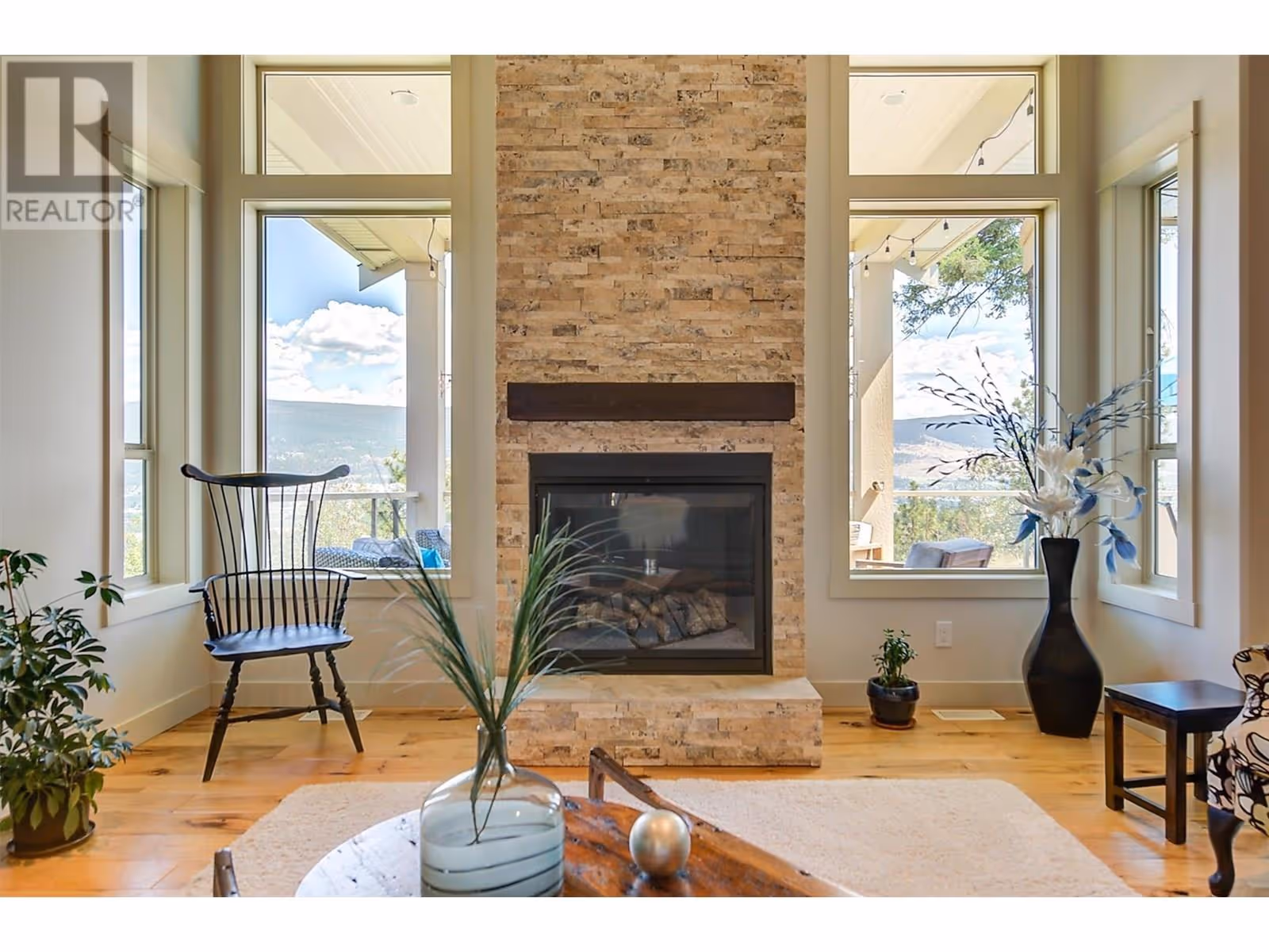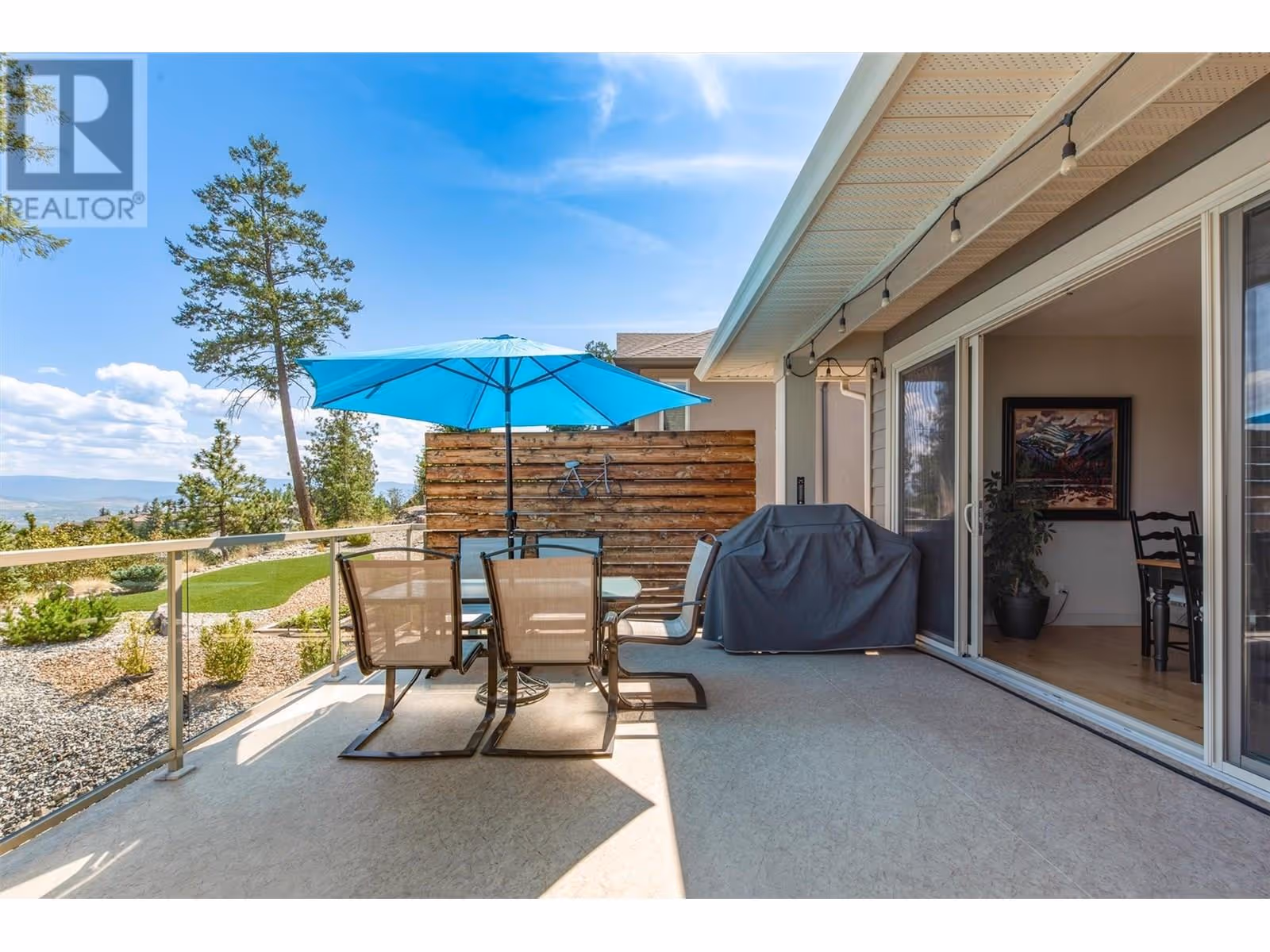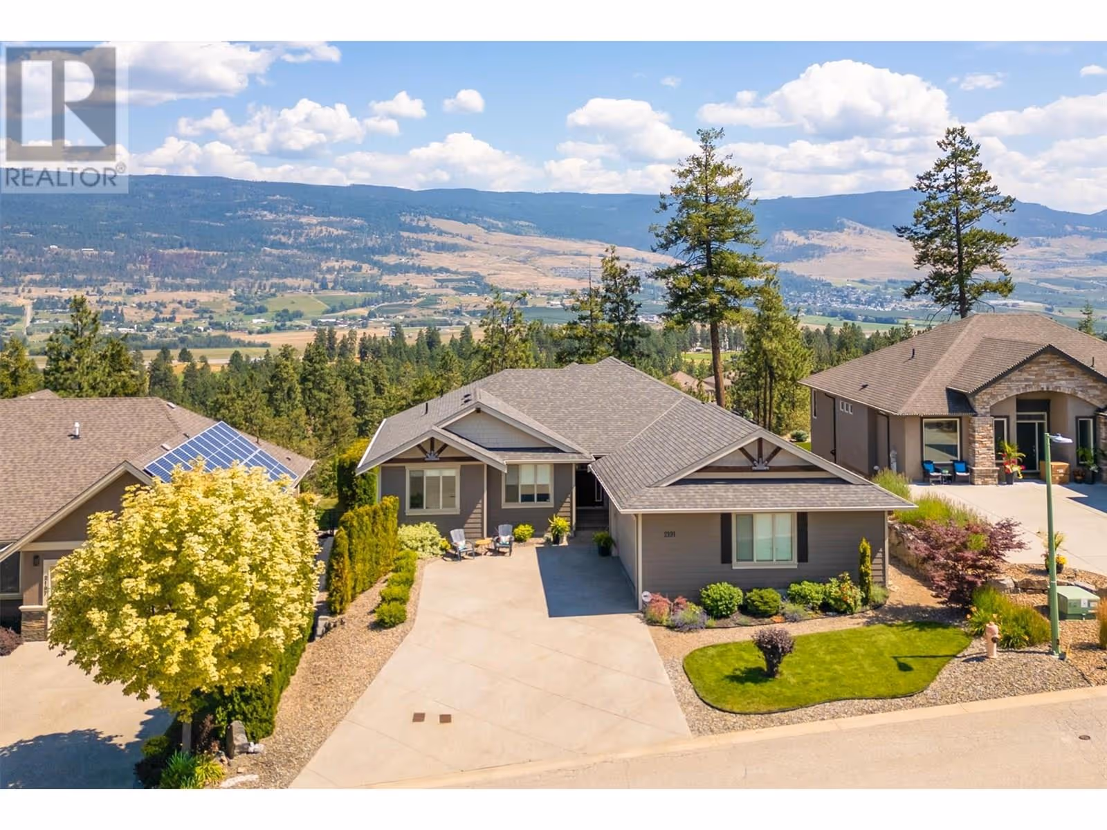 Welcome to The Ridge at Quail, one of Kelowna’s most sought-after golf course communities. This contemporary walkout rancher is perched above the 12th fairway and offers privacy, luxury and fabulous views. Expansive windows and double sliding doors allow a seamless connection to the outdoors. The half covered, half open upper deck, features Bose outdoor speakers, a tv and a gas hookup making it perfect for effortless entertaining. The main level boasts high ceilings, engineered hickory hardwood floors and thoughtful lighting throughout, with in-ceiling speakers in the living room, primary bdrm, ensuite, and lower-level bonus room. The kitchen is equipped with a gas/electric combo range. All 3 bathrooms have heated, programmable tile floors. The primary ensuite features a beautiful tile and glass walk-in shower. The lower-level walkout has abundant natural light, highlighted by picture windows and a sliding patio door that opens onto a covered deck. The lower level is ideal as a private retreat for guests with 2 additional bdrms, a full bathroom and a spacious bonus/family room. The oversized double garage accommodates 4 vehicles with room for up to 6 cars on the aggregate driveway. A full irrigation system and remote HVAC control round out the smart, efficient features of this home. Only minutes from the Kelowna Int'l Airport, UBCO and easy access to Lake Country or downtown! This is an ideal retreat for those seeking luxury living with a low-maintenance lifestyle! (id:58842)