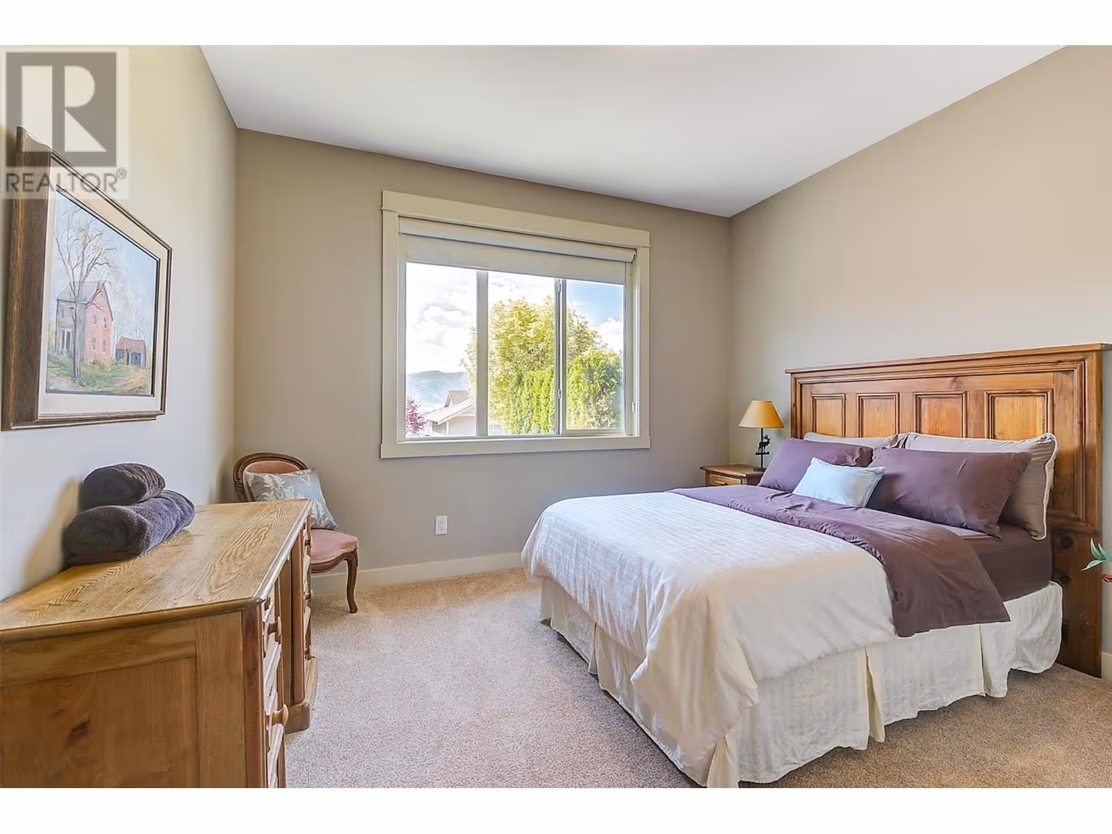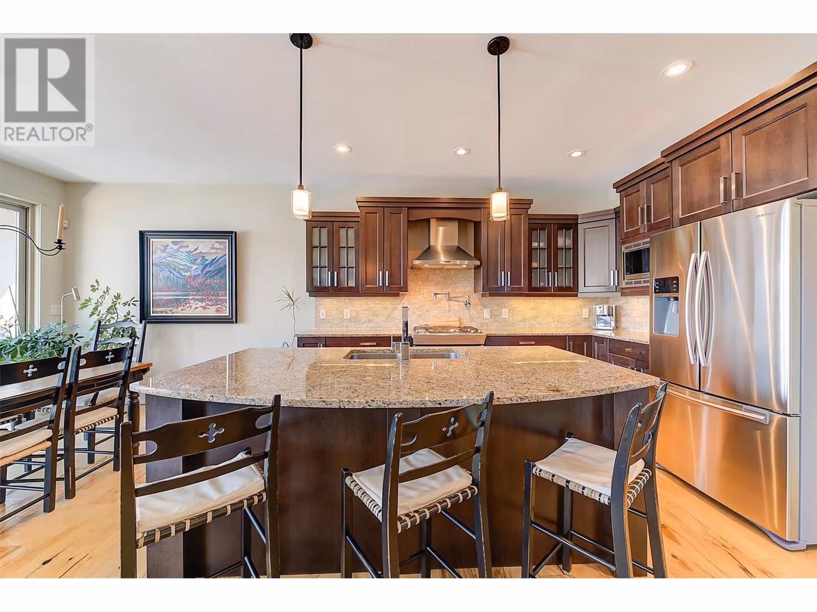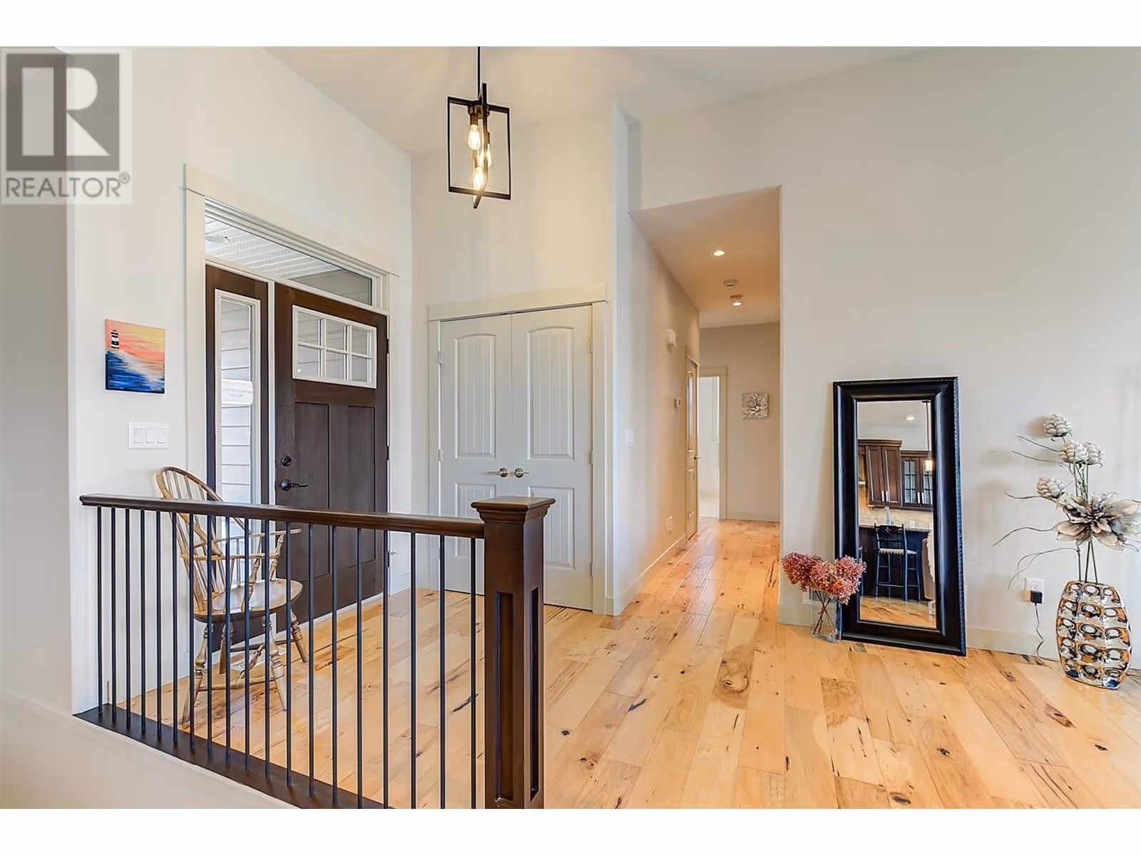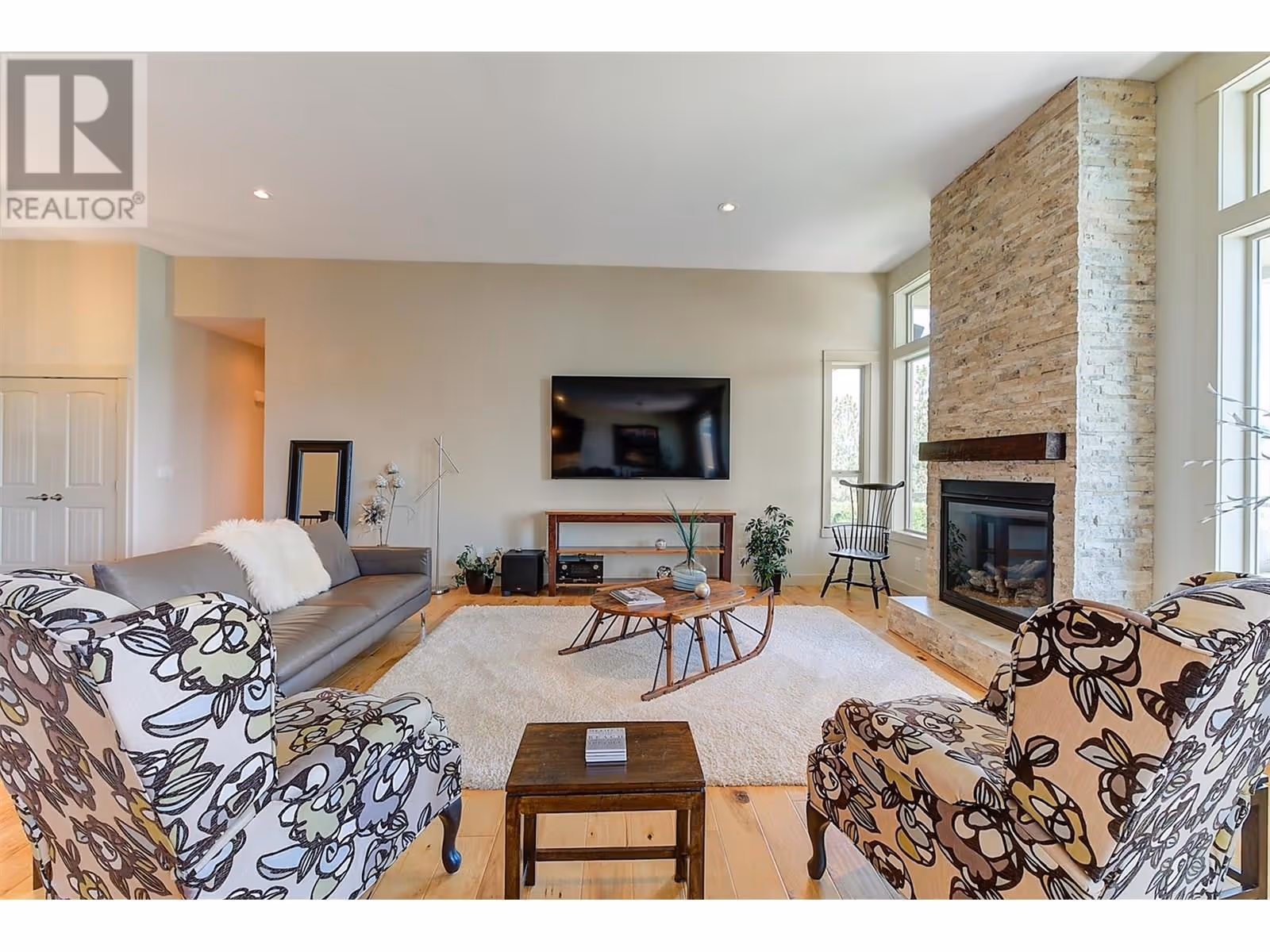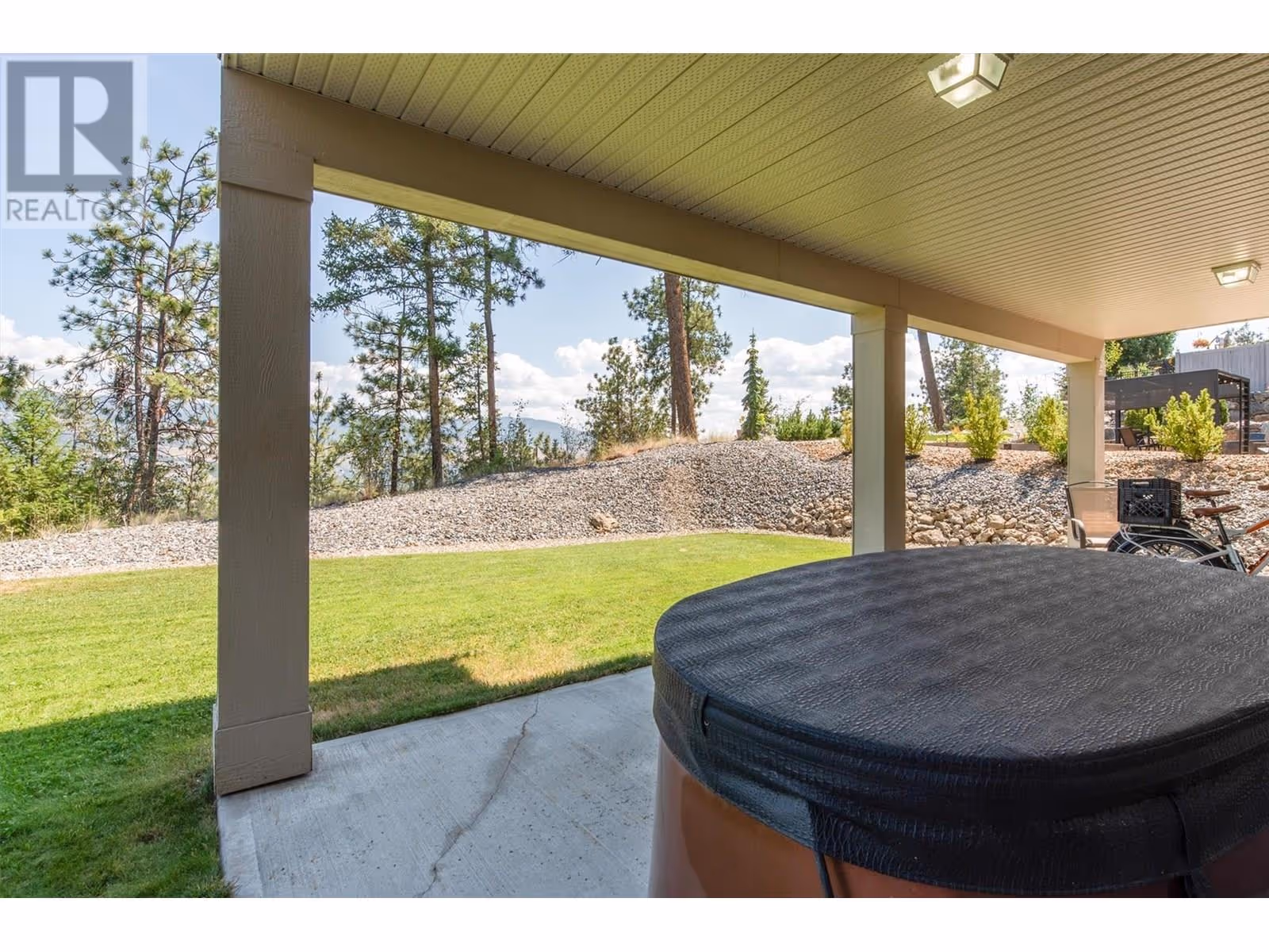 Welcome to The Ridge at Quail, one of Kelowna’s most sought-after golf course communities. This contemporary walkout rancher is perched above the 12th fairway and offers privacy, luxury and fabulous views. Expansive windows and double sliding doors allow a seamless connection to the outdoors. The half covered, half open upper deck, features Bose outdoor speakers, a tv and a gas hookup making it perfect for effortless entertaining. The main level boasts high ceilings, engineered hickory hardwood floors and thoughtful lighting throughout, with in-ceiling speakers in the living room, primary bdrm, ensuite, and lower-level bonus room. The kitchen is equipped with a gas/electric combo range. All 3 bathrooms have heated, programmable tile floors. The primary ensuite features a beautiful tile and glass walk-in shower. The lower-level walkout has abundant natural light, highlighted by picture windows and a sliding patio door that opens onto a covered deck. The lower level is ideal as a private retreat for guests with 2 additional bdrms, a full bathroom and a spacious bonus/family room. The oversized double garage accommodates 4 vehicles with room for up to 6 cars on the aggregate driveway. A full irrigation system and remote HVAC control round out the smart, efficient features of this home. Only minutes from the Kelowna Int'l Airport, UBCO and easy access to Lake Country or downtown! This is an ideal retreat for those seeking luxury living with a low-maintenance lifestyle! (id:58842)