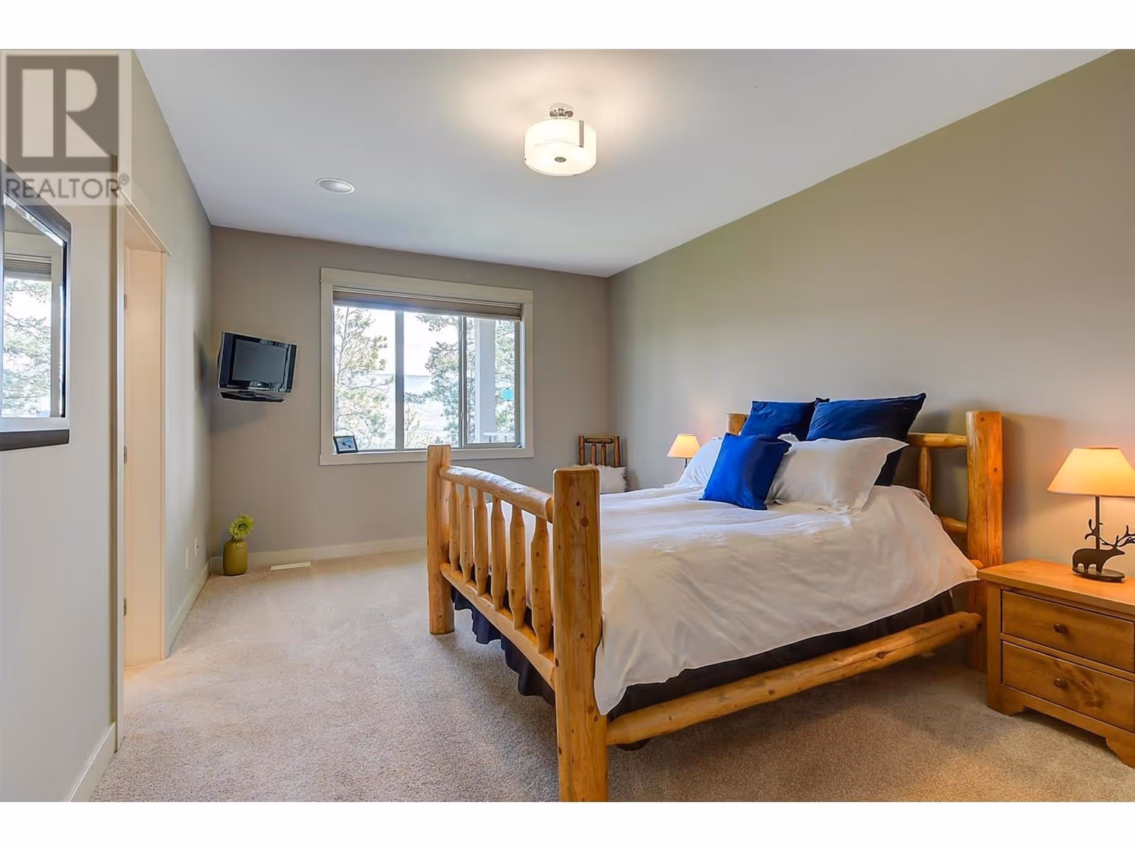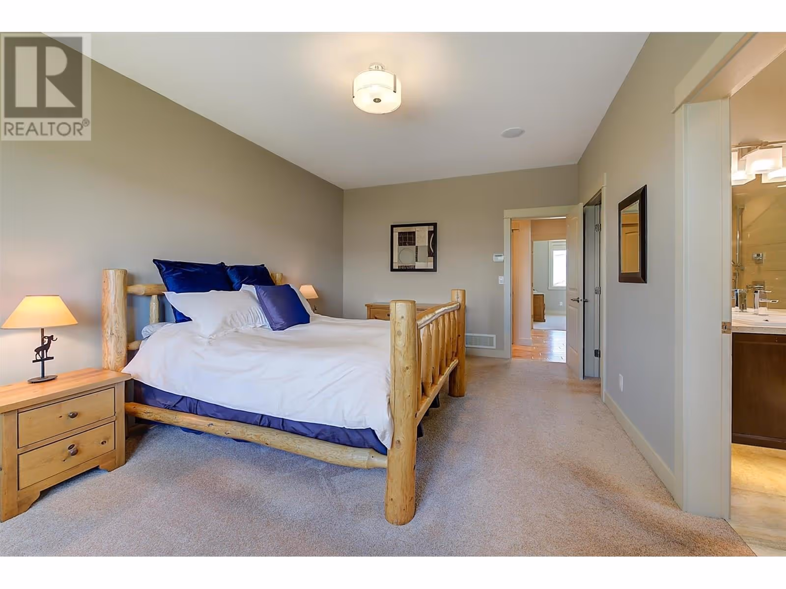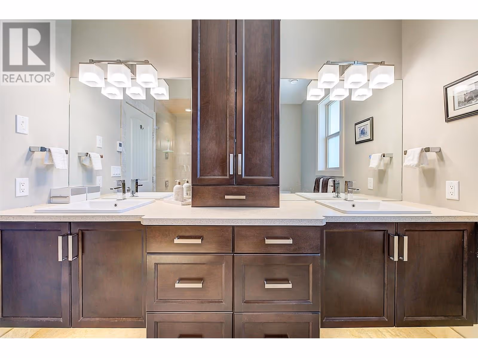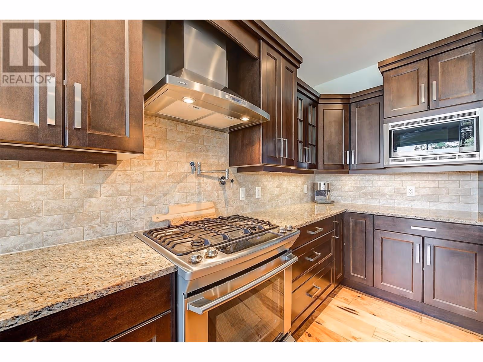 Welcome to The Ridge at Quail, one of Kelowna’s most sought-after golf course communities. This contemporary walkout rancher is perched above the 12th fairway and offers privacy, luxury and fabulous views. Expansive windows and double sliding doors allow a seamless connection to the outdoors. The half covered, half open upper deck, features Bose outdoor speakers, a tv and a gas hookup making it perfect for effortless entertaining. The main level boasts high ceilings, engineered hickory hardwood floors and thoughtful lighting throughout, with in-ceiling speakers in the living room, primary bdrm, ensuite, and lower-level bonus room. The kitchen is equipped with a gas/electric combo range. All 3 bathrooms have heated, programmable tile floors. The primary ensuite features a beautiful tile and glass walk-in shower. The lower-level walkout has abundant natural light, highlighted by picture windows and a sliding patio door that opens onto a covered deck. The lower level is ideal as a private retreat for guests with 2 additional bdrms, a full bathroom and a spacious bonus/family room. The oversized double garage accommodates 4 vehicles with room for up to 6 cars on the aggregate driveway. A full irrigation system and remote HVAC control round out the smart, efficient features of this home. Only minutes from the Kelowna Int'l Airport, UBCO and easy access to Lake Country or downtown! This is an ideal retreat for those seeking luxury living with a low-maintenance lifestyle! (id:58842)
