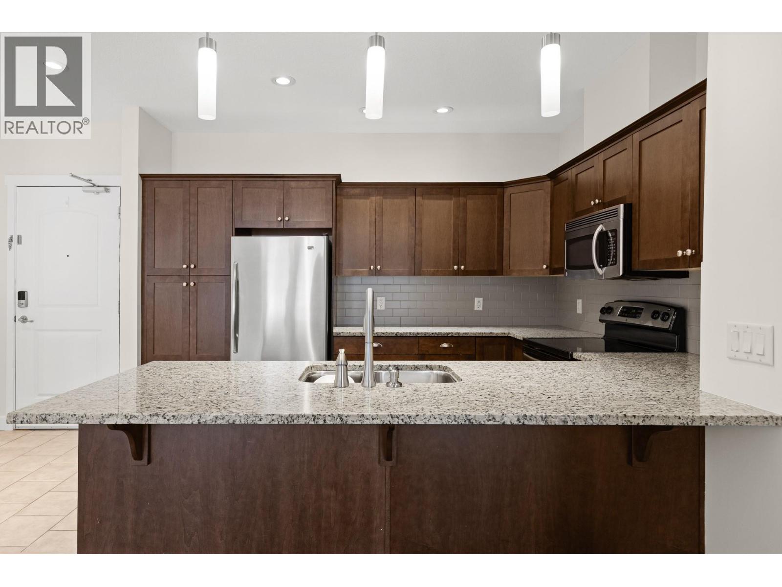 Beautifully positioned 2 bed, 2 bath home overlooking greenspace, offers tranquility and natural light. Well designed floor plan provides comfortable separation between bedrooms, ideal for families, guests or a home office setup. Kitchen flows into the living and dining areas, creating functional space for everyday living and entertaining. Step out to the large deck and enjoy the peaceful view. Features a spacious primary bedroom with private ensuite. Second spacious bedroom on separate sides of the unit. One covered parking in secure underground garage and a large storage locker located on the same floor as the unit and enjoy the outdoor pool. Pet friendly building allows cats or dogs. Close to parks, walking paths and everyday amenities, this home offers a relaxed lifestyle and practical comforts. (id:58842)
