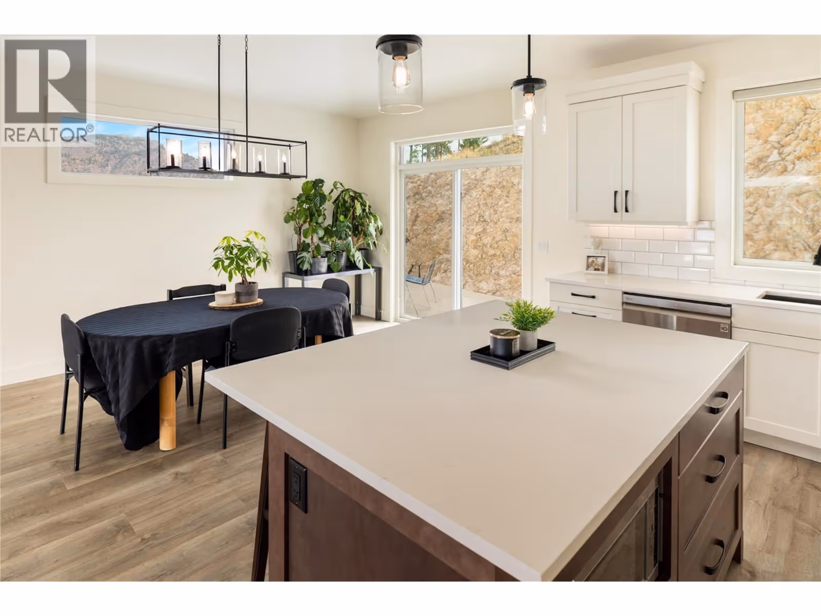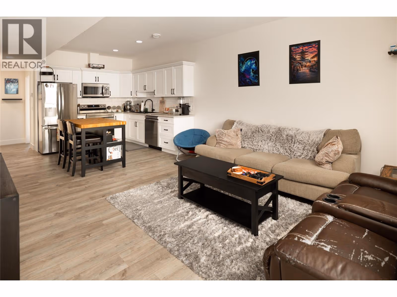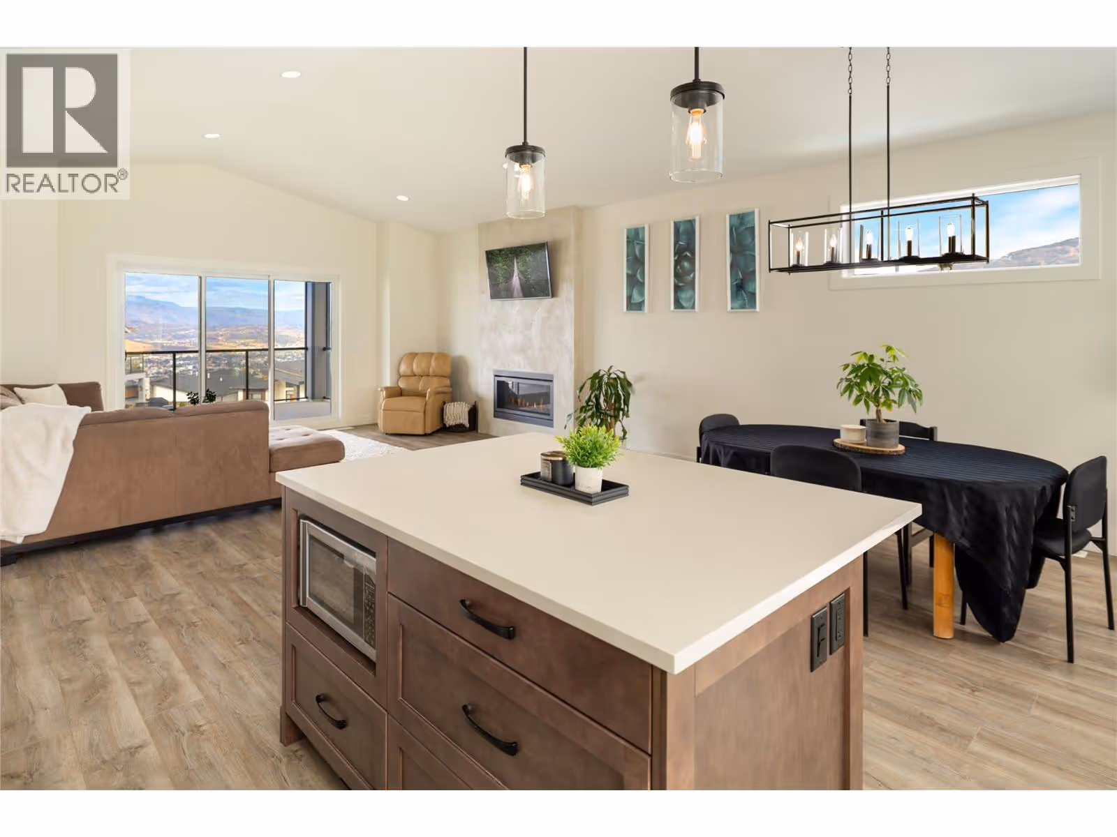 Set within sought-after Kirschner Mountain, this exceptional home combines family-friendly design with the bonus of a fully self-contained legal suite—offering valuable income potential or a private space for extended family. The main home is bright and welcoming, with an open-concept layout that’s perfect for gatherings. Vaulted ceilings and oversized windows frame sweeping valley and mountain views, while a striking stone fireplace anchors the living room. The kitchen features white cabinetry, quartz countertops, a walk-in pantry and a large island that naturally draws people together. Step outside to the expansive front patio to relax or entertain against a breathtaking backdrop. The primary suite is a peaceful retreat with a spa-inspired ensuite, heated floors and a spacious walk-in closet. Downstairs, the legal 2-bedroom suite offers its own entrance, stylish finishes and plenty of natural light—an ideal mortgage helper or long-term rental option. The private backyard feels like a retreat of its own, with green space, a natural rock face and room for kids to play. Just minutes to schools, trails, parks, Big White and the airport, this home is perfectly positioned for both convenience and lifestyle. (id:58842)