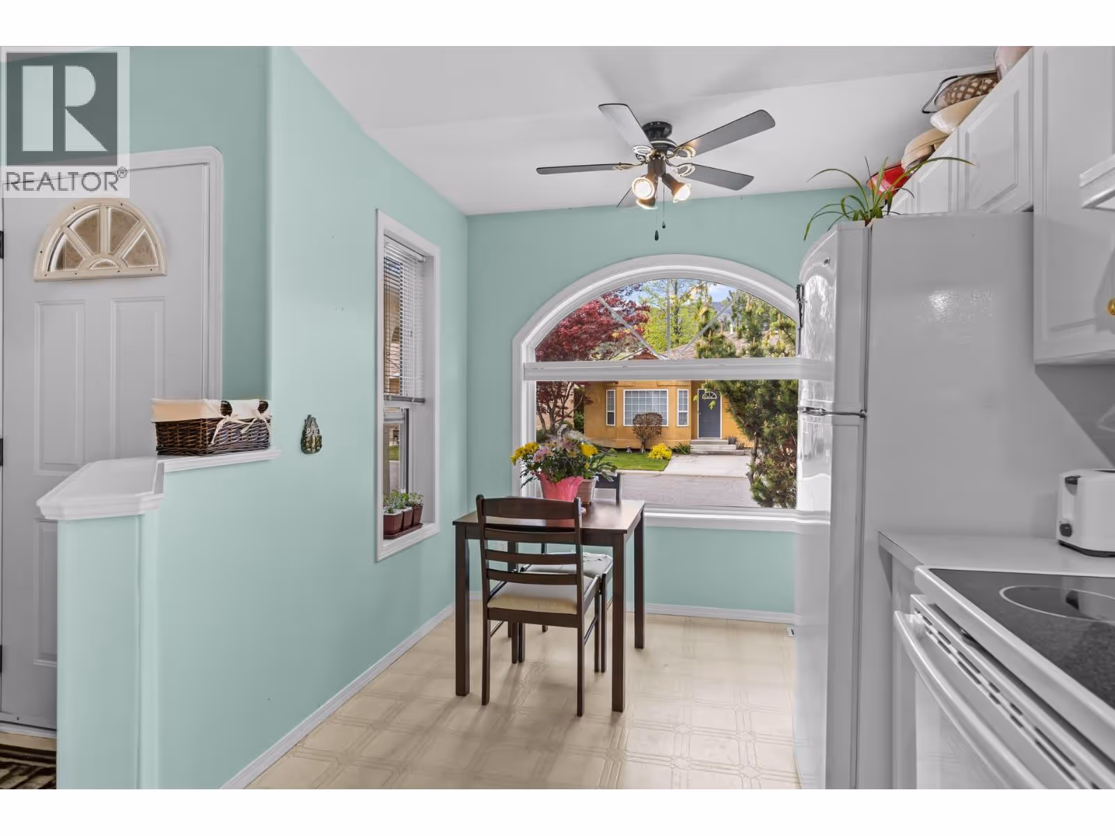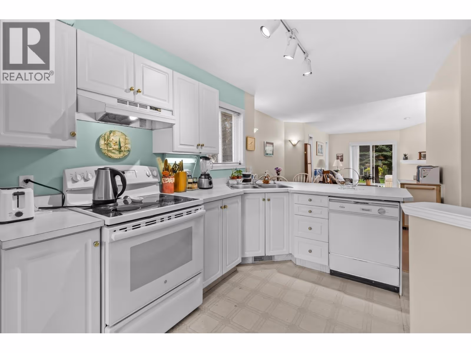 Tucked away in one of the most walkable locations, this charming 2-bedroom home offers peace, privacy, and plenty of greenspace. Backing onto lush, manicured grounds, the backyard is a rare find—perfect for morning coffee or summer BBQs. This end-unit townhome features a bright, open-concept layout with vaulted ceilings, a cozy gas fireplace, and an eat-in kitchen with great flow for everyday living. There's also plenty of storage thanks to the attached storage room and crawl space. Located in a quiet, well-cared-for community, this pet- and family-friendly neighbourhood includes parking for two (one covered), plus on-site RV parking. With low strata fees, no lease payments, and a central location close to shops, restaurants, beaches, golf, wineries, and more—you’re truly in the heart of it all. This is the perfect blend of comfort, convenience, and lifestyle. Don’t miss your chance to call it home. (id:58842)