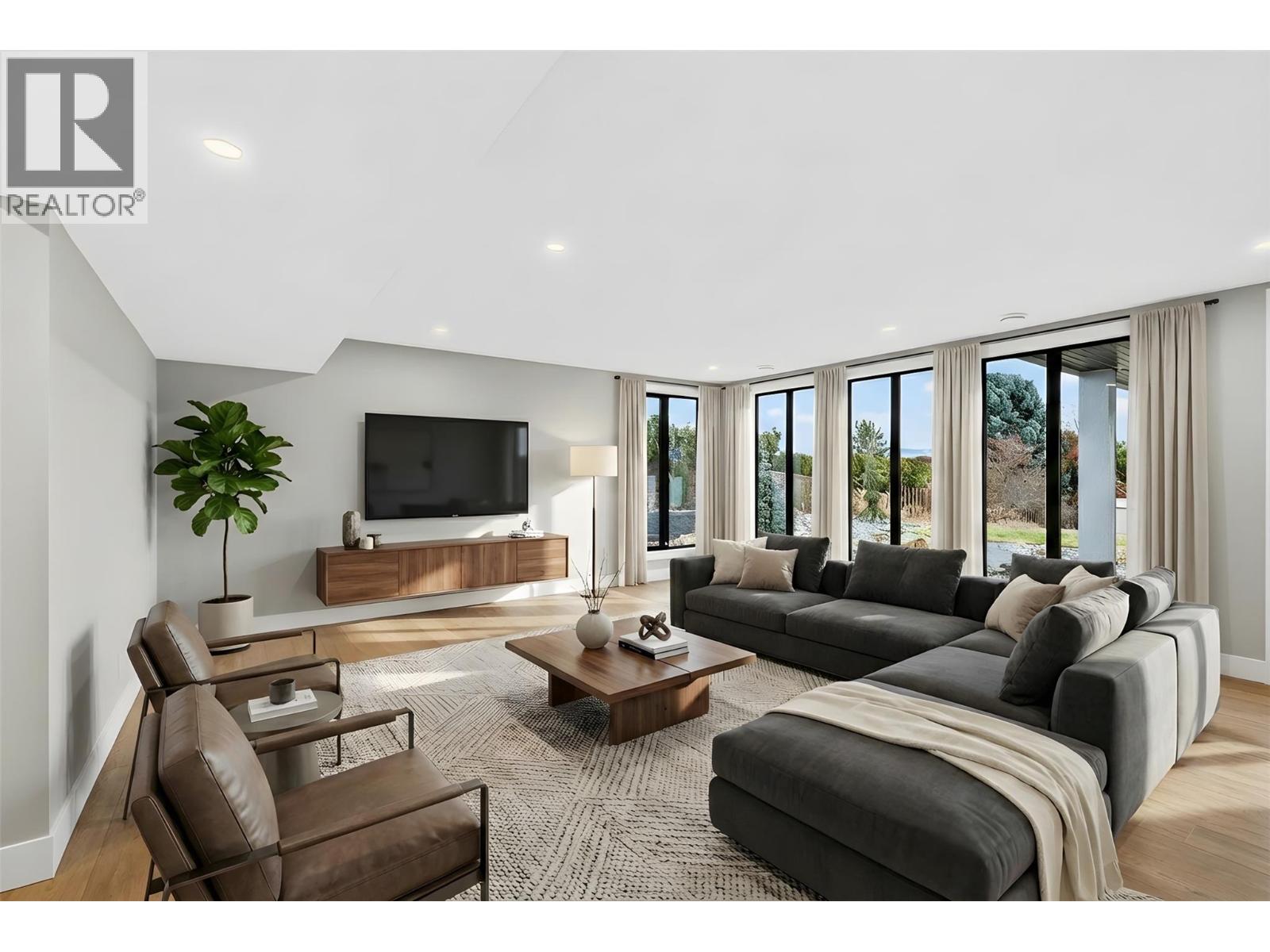 Perched to capture sweeping Okanagan Lake views, this exceptional luxury residence blends grand scale entertaining with thoughtfully designed everyday living complete with a private one bedroom suite. Arrive to a two car garage with storage/tool alcove and a dedicated utility area with high-efficiency furnace and systems. The main level impresses with vaulted ceilings, a gas fireplace, and an airy open-concept flow to the chef-inspired kitchen. Host with ease thanks to a beverage room and walk-in pantry, while a large dining area and expansive picture windows frame the lake like artwork. Versatility shines with a private nanny suite off the front entry complete with bed/sitting room and private bathroom, plus a separate two-piece powder room for guests. Upstairs offers a spacious bonus room, laundry, and two generous bedrooms with walk-in closets connected by a Jack-and-Jill bath. The primary suite is a true retreat with an oversized walk-in closet and spa-inspired five-piece ensuite. Downstairs, enjoy a large family/games area with wet bar, plus an additional bedroom and bathroom ideal for teens or guests. With 0.3 acres fully landscaped, it leaves nearly 0.2 acres ready for your dream pool, sports court, hobby vineyard, outdoor entertaining area and more. The self-contained 1-bedroom suite includes its own laundry and private outdoor sitting area. Ample driveway parking for owners and guests, plus separate side parking for the suite. (id:58842)