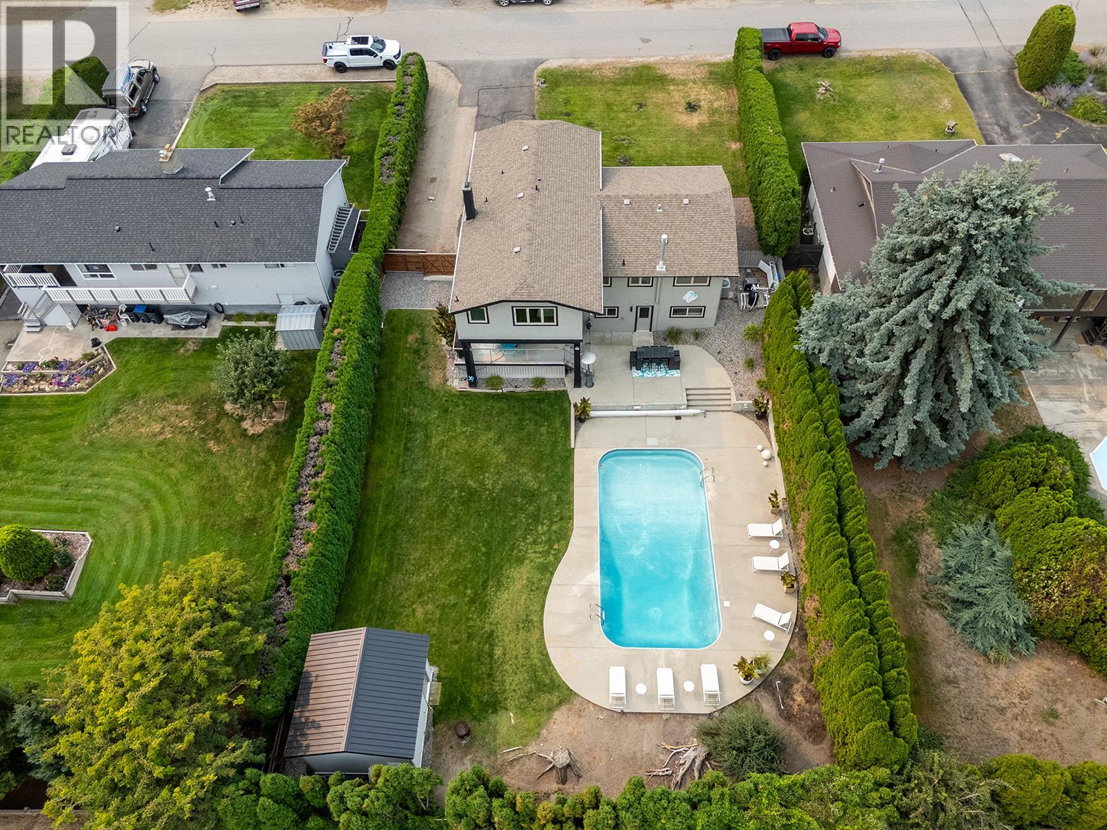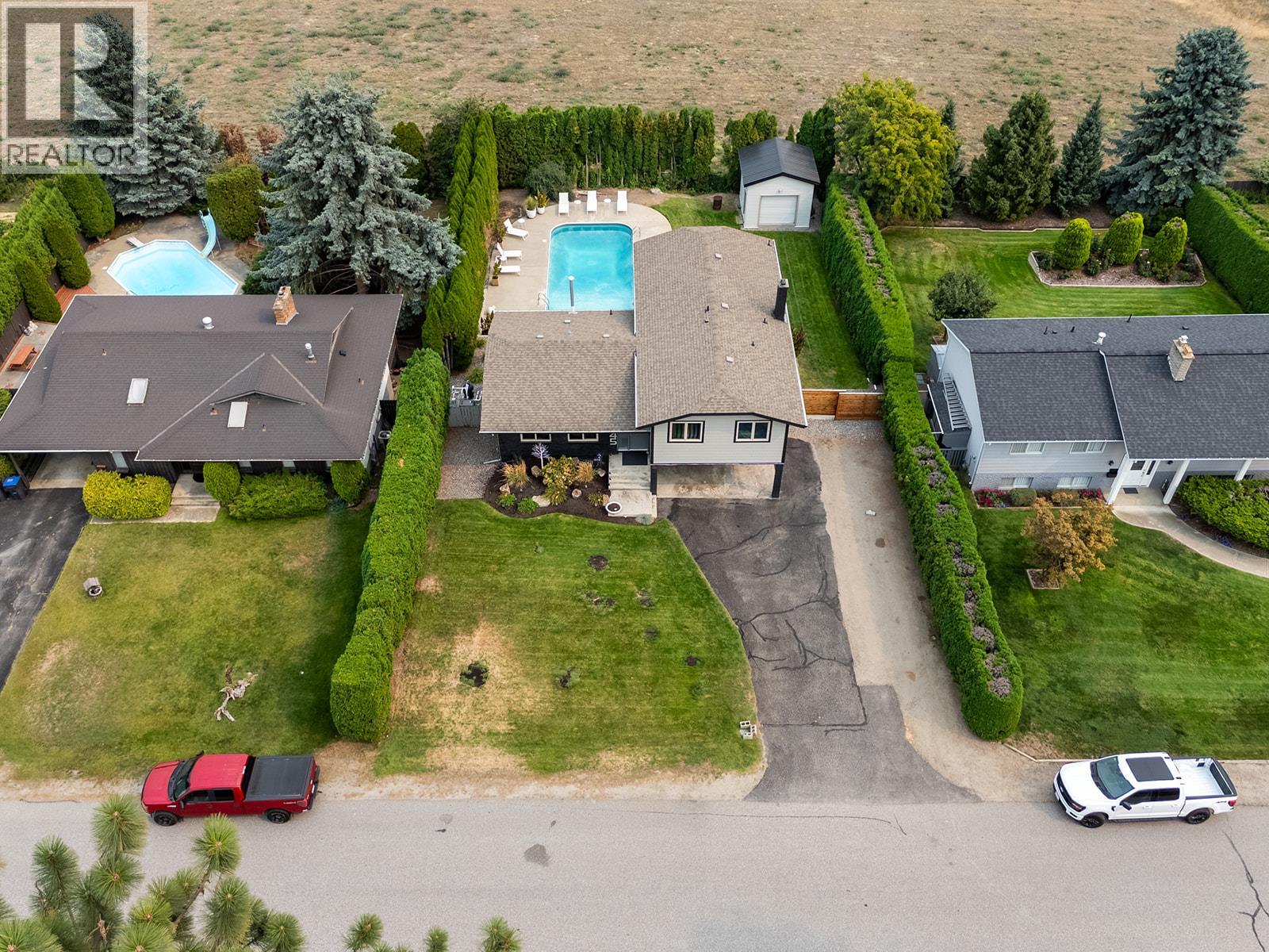 Welcome to 2245 Somerset Road, a beautifully updated 5-bedroom plus den, 4-bathroom split-level private residence in the highly sought-after West Kelowna Estates neighbourhood. Offering over 2,500 sq.ft. of thoughtfully designed living space on a well maintained 0.28-acre lot, this home balances modern finishes with everyday functionality, and an outdoor pool for our Okanagan summers! The heart of the home is a chef’s kitchen, complete with an oversized professional-grade refrigerator, expansive quartz island, custom cabinetry, and a dedicated beverage station with wine cooler, ideal for both entertaining and family living. The open concept living areas flow seamlessly to a recreation room that opens onto a deck with a hot tub overlooking the pool and private backyard oasis. The primary suite features a freshly updated ensuite, while ample sized bedrooms provide space for family and guests. Two versatile rooms on the lower level add flexibility for a home office, gym, or guest room. The walk-out lower level connects directly to the patio and pool area, creating an effortless indoor-outdoor lifestyle. With a recent renovation, resort inspired amenities (like heated bathroom flooring), and a prime exceptionally private location close to schools, shopping, and downtown Kelowna, this home offers the ultimate Okanagan living experience. (id:58842)