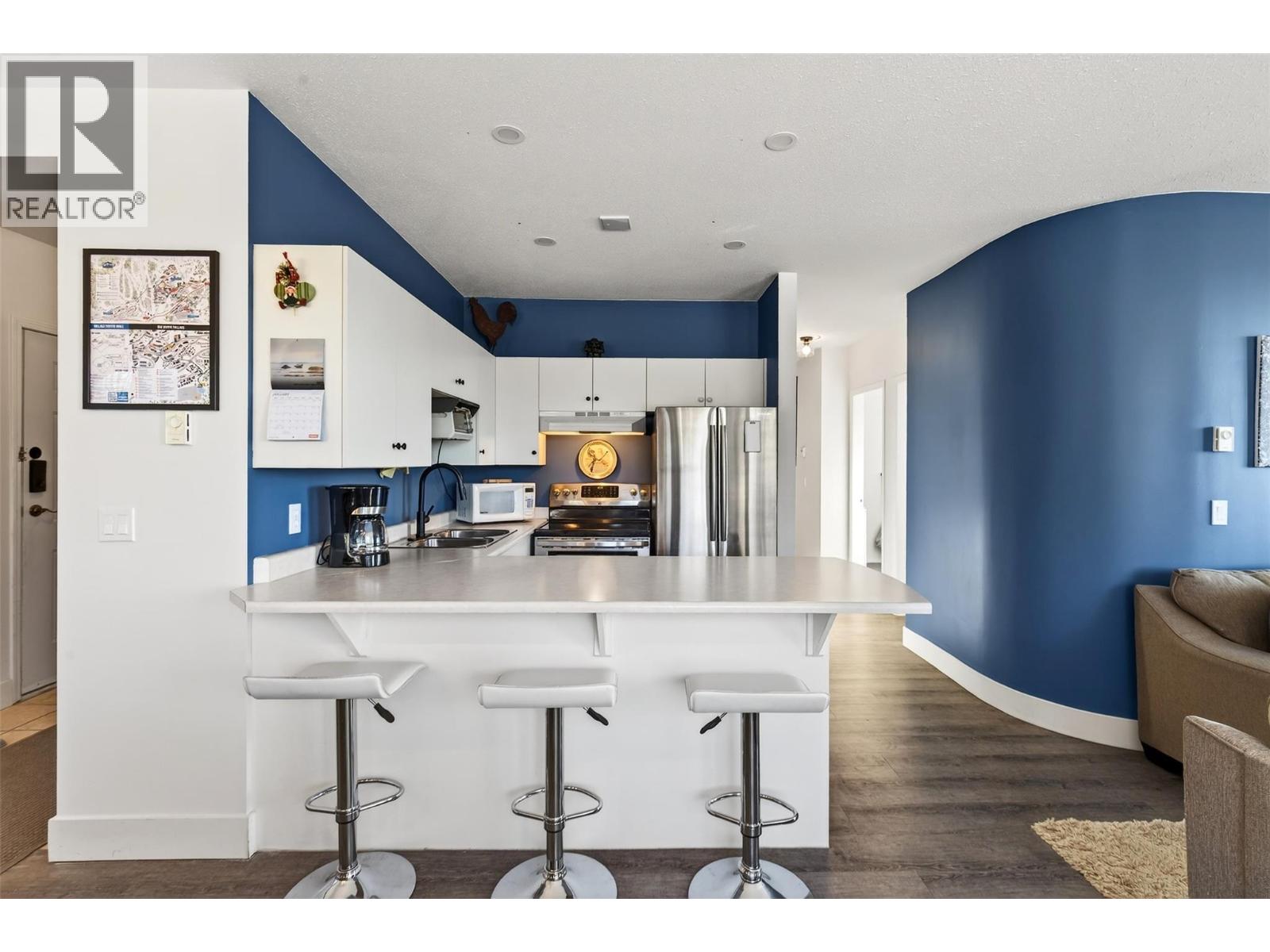 Incredible ski-in, ski-out three-bedroom, two-bathroom corner residence at Chateau on the Ridge at Big White Ski Resort, perfectly positioned directly on the ski run above the Plaza Chair with true door-to-slope access and its own private entrance with no stairs, making it ideal for families, kids, and dogs. The bright open-concept living space is filled with natural light from oversized windows and anchored by a cozy corner fireplace, creating the perfect après-ski atmosphere while showcasing peaceful alpine views. The spacious kitchen features a newer stainless steel appliance package, ample cabinetry, and a counter bar for casual seating, flowing seamlessly into a generous dining area designed for entertaining and gathering. Additional highlights include fresh paint throughout, in-suite laundry, heated underground parking, no noise pollution, and the convenience of coming fully furnished so you can move in and start enjoying immediately. Chateau on the Ridge has recently completed major upgrades including new siding, with the special levy fully paid, and offers excellent amenities such as shared outdoor hot tubs, a full-time building manager, and a quiet yet central location just steps from the Village. Exempt from the Foreign Buyer Ban, foreign buyer tax, speculation tax, empty homes tax, and short-term rental restrictions, this property offers exceptional value and flexibility. With newly expanded access to Big White via direct flights from Los Angeles, Toronto, and Montreal, and located just one hour from YLW, this is a rare opportunity to live where you play. (id:58842)