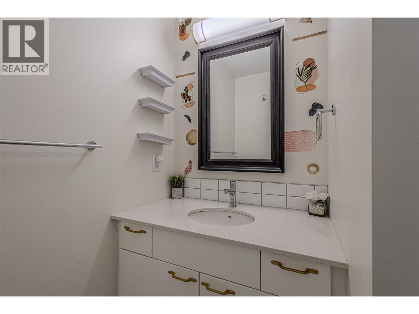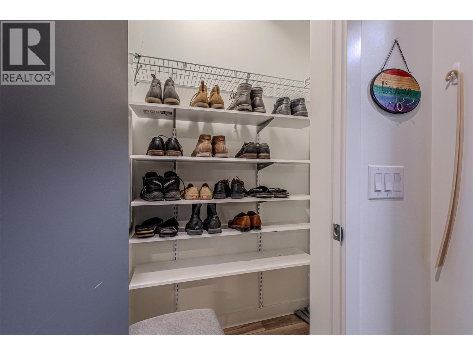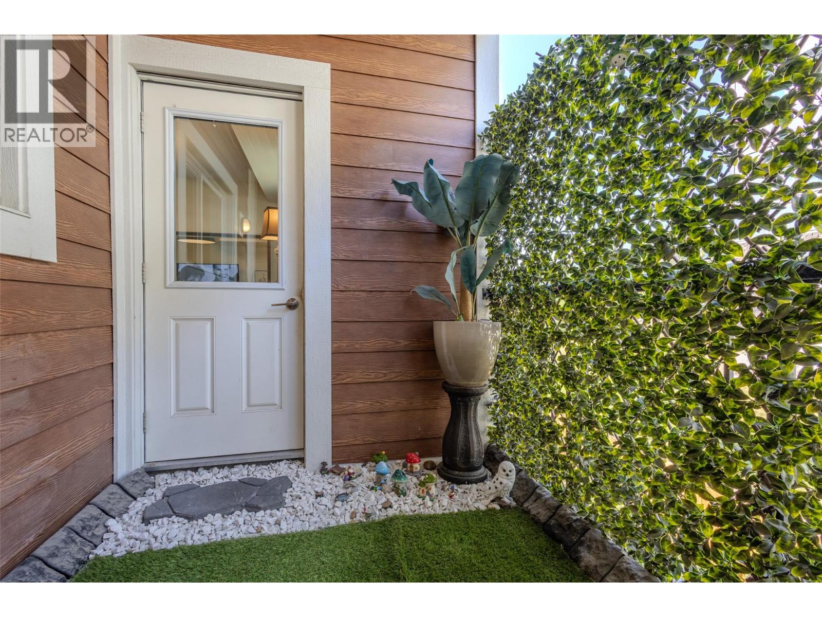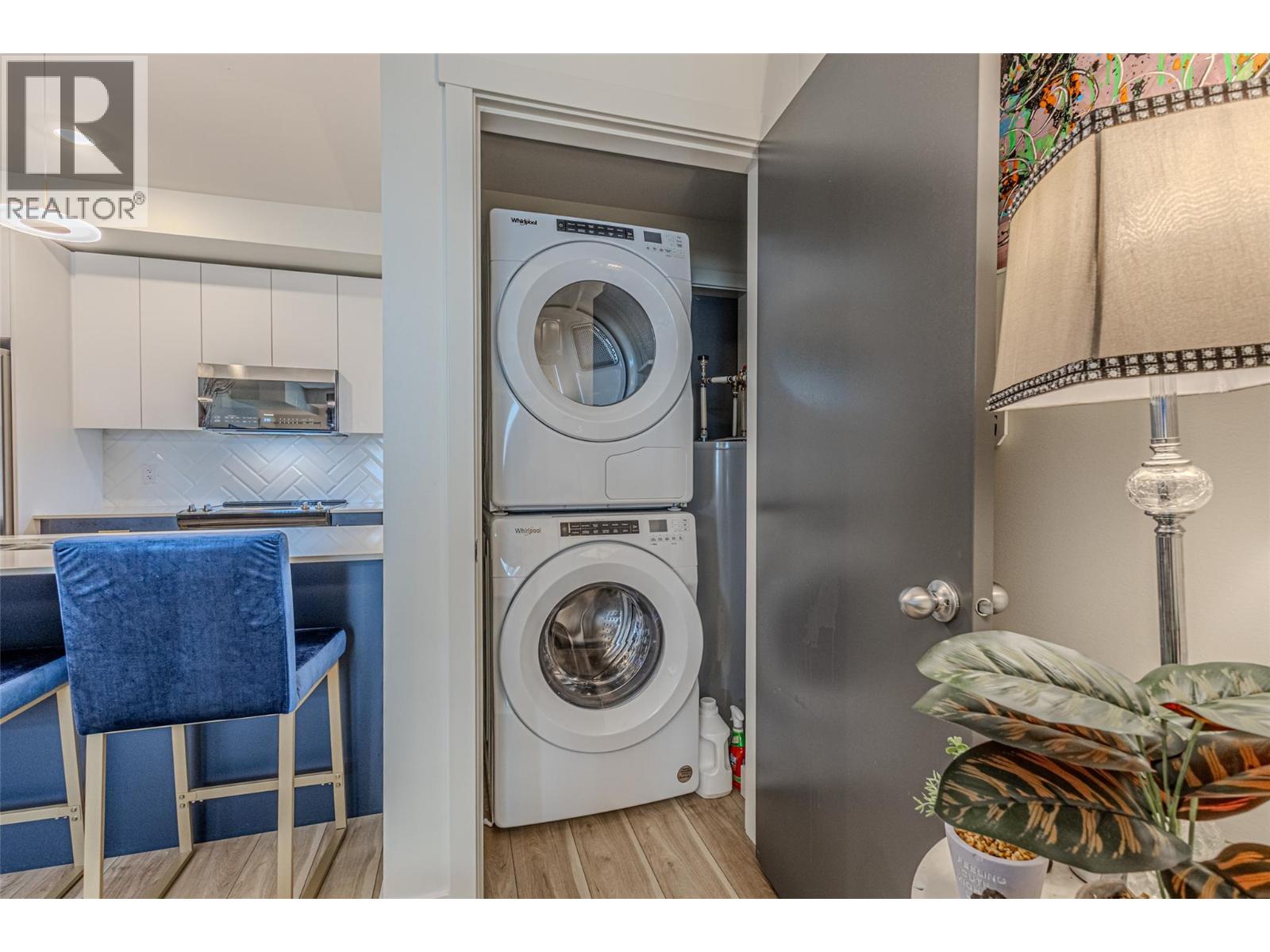 A welcoming, fully renovated, 2-bedroom, 2-bath+den in a fantastic location within the modern NEO residence! Walking distance to new park space and a paved creek feature walkway that travels through Majoros park up to shopping and amenities. Also easily walkable to the Gellatly Bay - providing an aquatic park, dog park, dock, marina, beaches and a 2km lakeside walking trail. 302 is a corner unit with views of Majoros park greenery, more privacy and an additional window with no parking lot view! Upgraded soundproof flooring and ceilings with 18cm gypcrete for comfort. Functional split bedroom, high ceilings making the space feel bright and large. Kitchen contains custom 2 tone cabinets with chevron tiling backsplash and oversized island - great for hosting! Entire unit has new vinyl flooring, lighting upgrades, shower upgrades and a walk-in-closet. Unit comes with an underground parking stall and brand new appliances. NEO residence was constructed in 2018 and certified green with solar panels reducing strata fees and the unit has a green brand-new HRV system providing heat and air conditioning reducing hydro bills. The building provides a communal large rooftop patio with panoramic views and a gas BBQ for socializing. Several community garden boxes are available. NEO is located just off the wine trail with 17 wineries and 9 dining options. Rentals allowed and pet-friendly allowing 2 dogs or 2 cats or 1 of each. Book your viewing today! (id:58842)