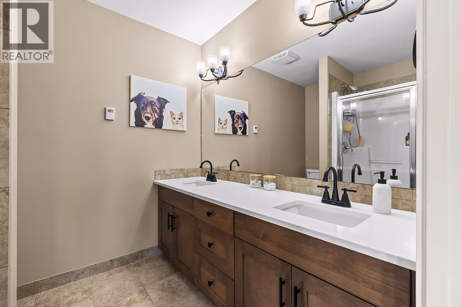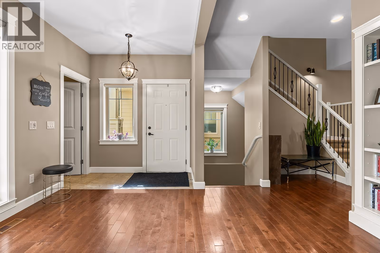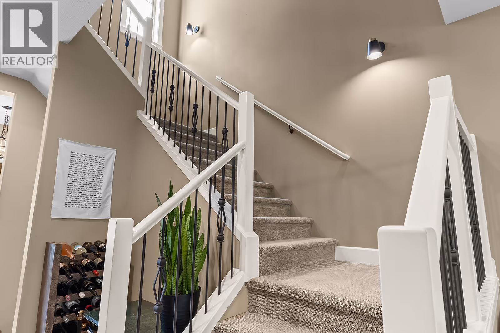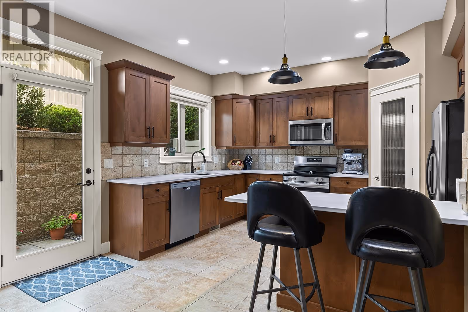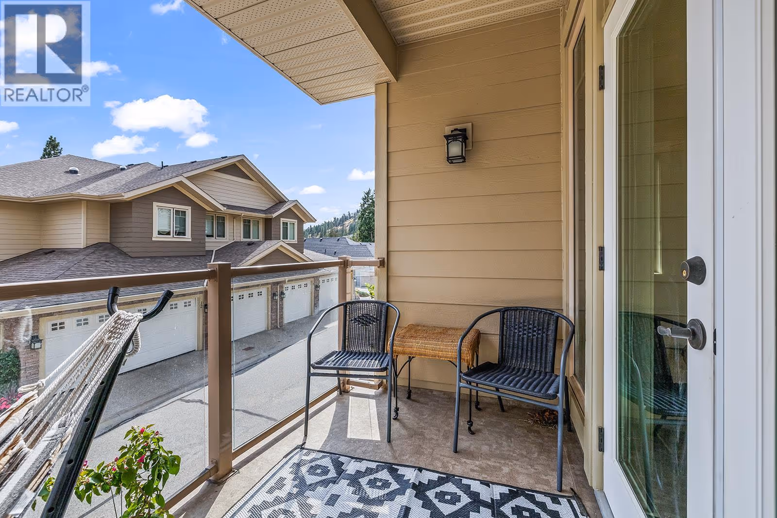 This is currently the only 4 bed 4 bath and largest 4 bed townhouse on the market in Shannon Lake! Tucked at the end of a quiet cul-de-sac in an intimate 20-home complex, where neighbours wave hello, pets are welcome, and a true sense of community fills the air. Enjoy a family hike on the hiking trails just behind the property, or a round of golf at Shannon Lake Golf Course which borders the complex. Sit with a glass of wine on the deck on a peaceful evening and watch the stars. All this, only 15 minutes to Downtown Kelowna, 9 minutes to grocery stores and 6 minutes to multiple schools. Inside, has been thoughtfully refreshed. Quartz counters in the kitchen and bathrooms, new sinks, fixtures, and stylish lighting throughout. Hardwood floors add warmth to the main level, where the living and dining spaces flow onto a covered balcony — the perfect spot to enjoy morning coffee. A private patio off the kitchen offers a space for herbs, flowers, and a BBQ! The layout is designed with families in mind: upstairs, has three bedrooms, including a large primary with walk-in closet, en-suite, and private balcony to soak up sunset views. On the lower level, the 4th bedroom with ensuite makes an ideal guest space, teen hideaway, or office, with direct access to the double car garage. The complex also offers a LARGE grassy dog run/ picnic area overlooking the golf course. Perfect for enjoying pleasant evenings with your furry friend. RV parking space available as well! Come and see!! (id:58842)