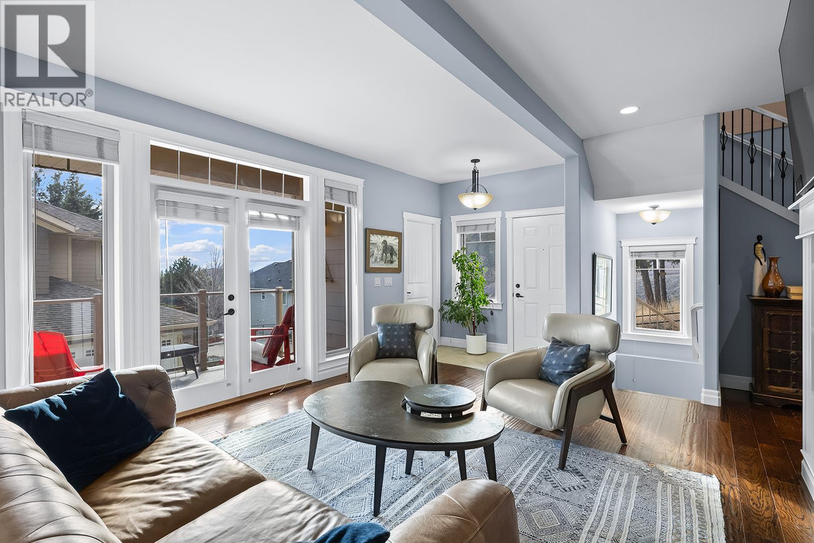 This end unit townhouse boasts over 2200sq feet of living space, 4 bedrooms, a double car garage and a view! Hard to find now a days. Located on a quiet cul-de-sac in an intimate 20-home complex, where neighbours wave hello, pets are welcome, and a sense of community fills the air. RV parking too! Enjoy a hike on the Carrot mountain trails just behind the property, or a round of golf at Shannon Lake Golf Course which borders the complex. Sit with a glass of wine and watch the sunset over the mountains, from your private deck off the primary bedroom. Only 15 minutes to Downtown Kelowna, 9 minutes to grocery stores and 6 minutes to multiple schools. The kitchen and bathrooms have granite counters, and hardwood floors add warmth to the main level, where the living and dining spaces flow onto a covered balcony, perfect for morning coffee in the sun. This unit has TWO patio areas. One near the entrance which is perfect for summer evenings around a fire, and one off the kitchen which offers a space for herbs, flowers, and a BBQ! The layout is designed with families in mind: upstairs, has three bedrooms, including a large primary with walk-in closet, en-suite, and private balcony with a view. On the lower level, the 4th bedroom with ensuite makes an ideal guest space, teen hideaway, or office, with direct access to the double car garage. The complex also offers a LARGE grassy dog run/ picnic area overlooking the golf course. This unit is close to a second grassy area just behind. (id:58842)